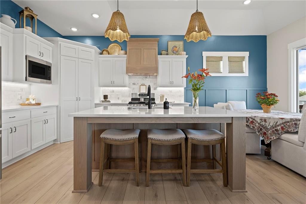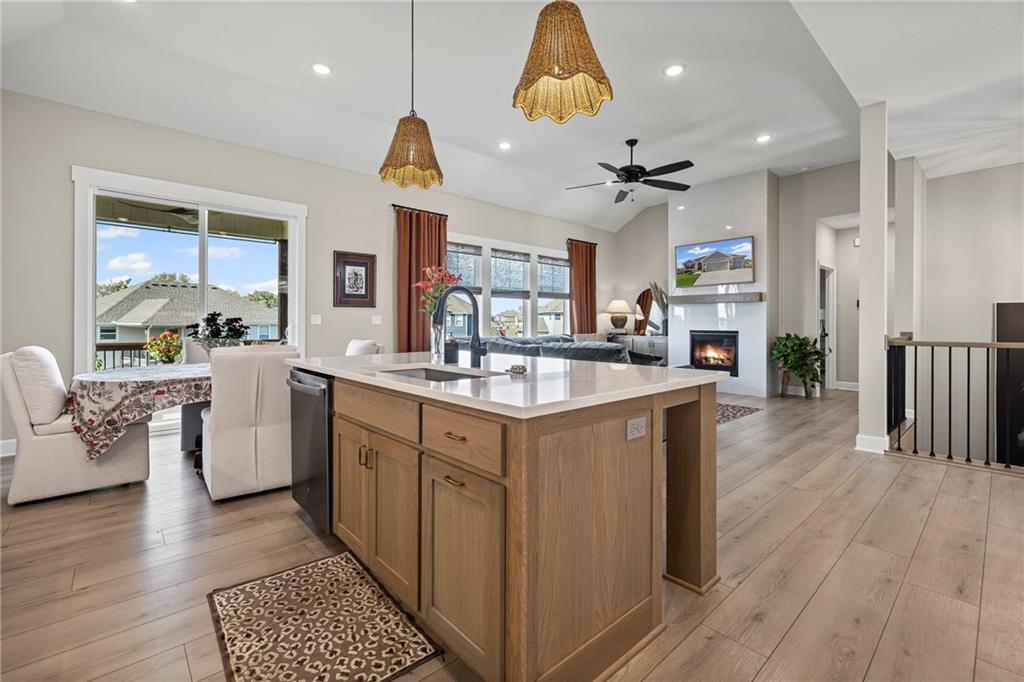 Better than new! Lovely four-bedroom reverse one and a half story by Pfannes Homes with tons of upgrades on a quiet cul-de-sac. Quartz counters, stainless steel appliances, upgraded lighting and hardware throughout, wood floors on main level. Large rec room area on the daylight lower level +2 bedrooms and a third-full bathroom and loads of storage space! Award-winning Basehor-Linwood school district!