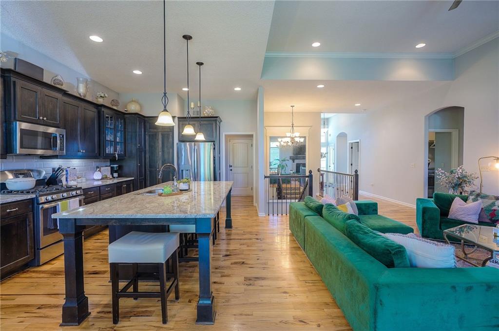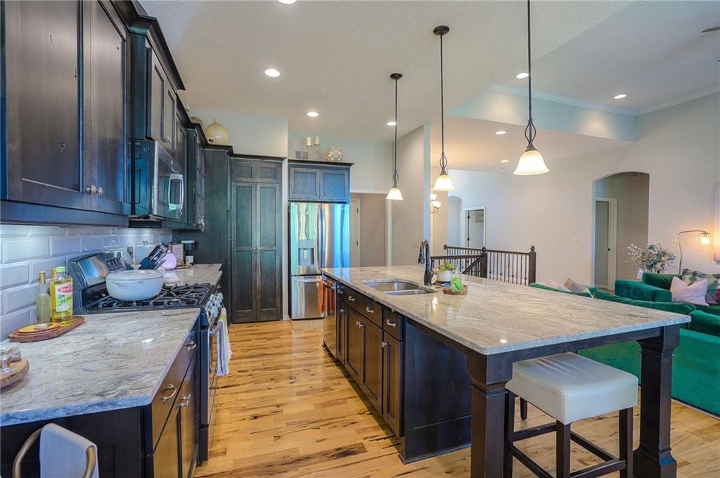 Welcome to Stonebridge Meadows! This stunning Reverse 1.5 story home sits on a beautiful back corner cul-de-sac lot, offering extra privacy, curb appeal, and plenty of outdoor space. With 4 spacious bedrooms, 3 full bathrooms, and over 2,800 square feet of beautifully finished living space, this home is designed for both comfort and style. The main level features a luxurious primary suite with a spa-like ensuite bath, large walk-in closet, and convenient laundry room with direct access from the closet. An additional bedroom and full bath provide flexibility for guests or a home office. Enjoy soaring ceilings and a cozy gas fireplace in the open-concept family room, seamlessly connected to the chef’s kitchen, which boasts an oversized island, sleek quartz countertops, a walk-in pantry, and a mudroom for everyday convenience. The finished lower level offers two more bedrooms, a full bath, a spacious family room—perfect for entertaining—and plenty of storage space. Step outside to a large, fenced backyard with a covered deck and patio—ideal for relaxing or hosting gatherings. The 3-car garage and corner cul-de-sac location make this home truly special. Located in Stonebridge Meadows, close to parks, trails, and neighborhood amenities. Don’t miss your chance to make this your new home!