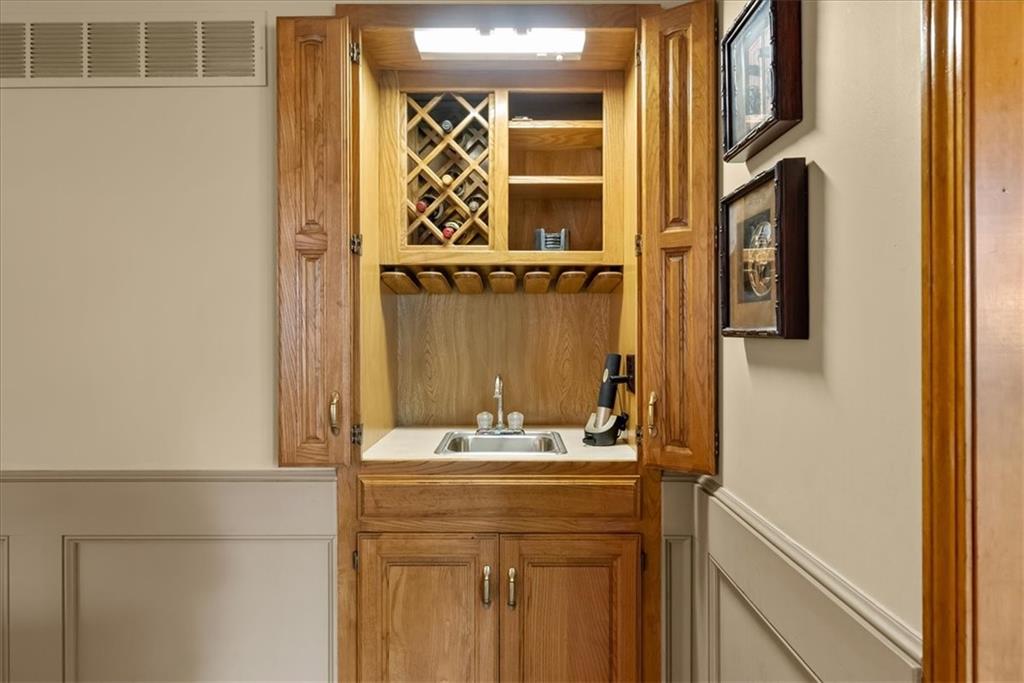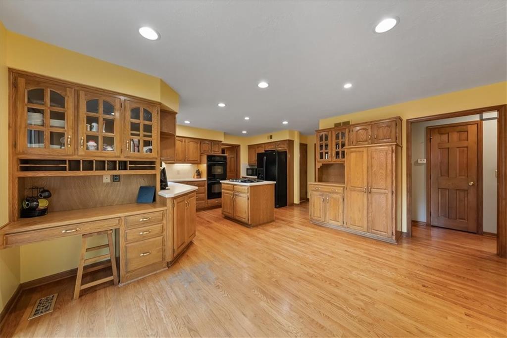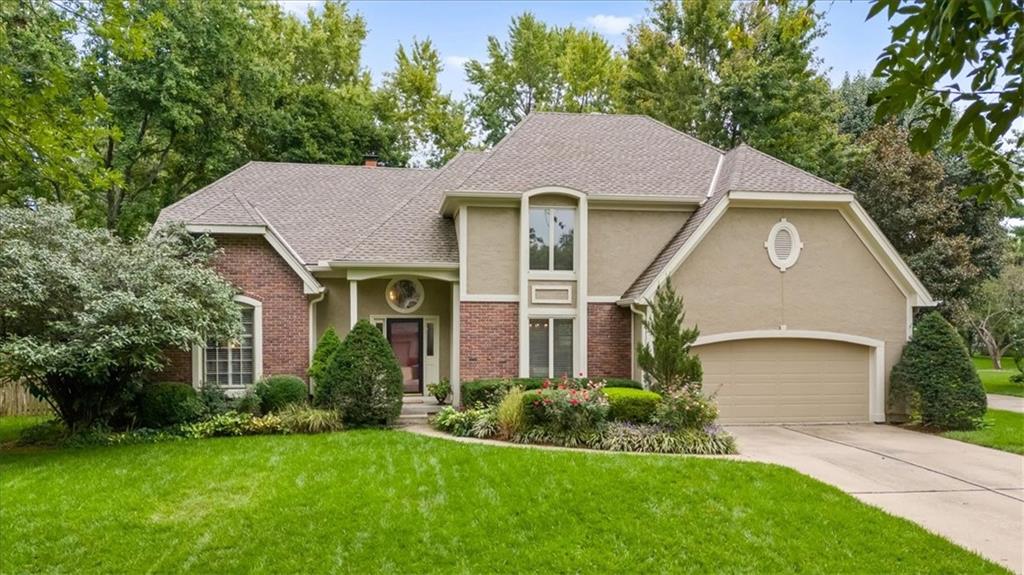 Incredible opportunity to make Hunter’s Ridge your home! Walk to Leawood Elementary and Leawood Middle, close to Tomahawk and Indian Creek hike/bike trails, Town Center and a wide range of other shopping. This French colonial with a traditional floor plan is a ready canvas to define your own style. Highlights include formal dining room, formal living room, 2-story foyer, study with wood ceiling and built-in bookshelves, large family room with wet bar and wood burning fireplace (gas starter), chef’s kitchen with double oven, gas range and butler’s pantry, master bedroom with gas fireplace (with gas log set), sitting area with built-in bookshelves and two walk-in closets, two bedrooms share Jack and Jill bathroom, 4th bedroom has private full bath, basement has finished and unfinished areas with ample built-in storage. The lot has a private, fenced back yard and mature landscaping surrounding the house. Great layout, bones and curb appeal, but it needs TLC. New exterior paint (2024), insulated garage door (2024), roof and upsized gutters and downspouts (2020), and updated HVAC (2022).