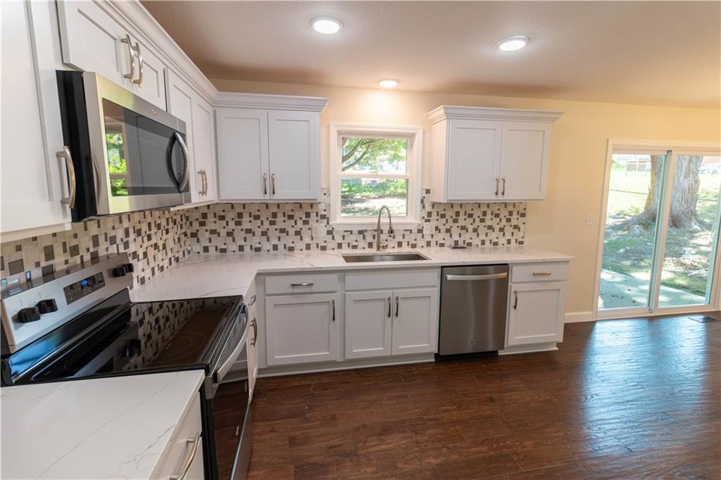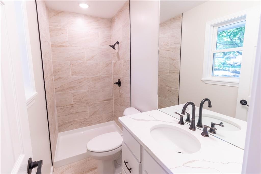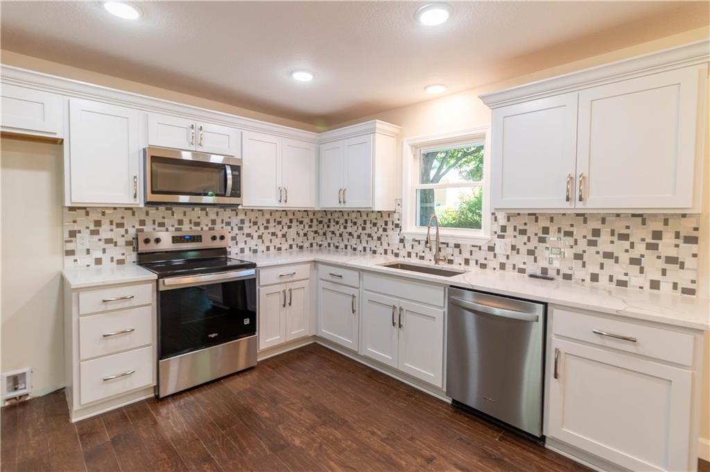 3 bedrooms, 2 and a 1/2 bath, new kitchen with quartz countertops, solid wood floors, new roof, and new windows.