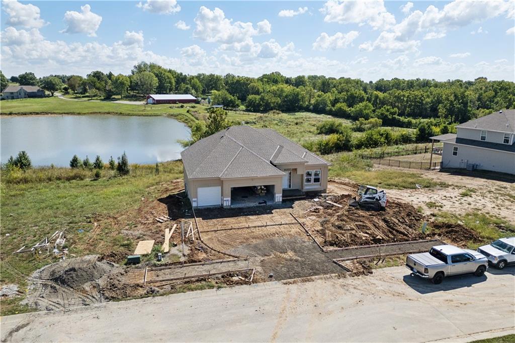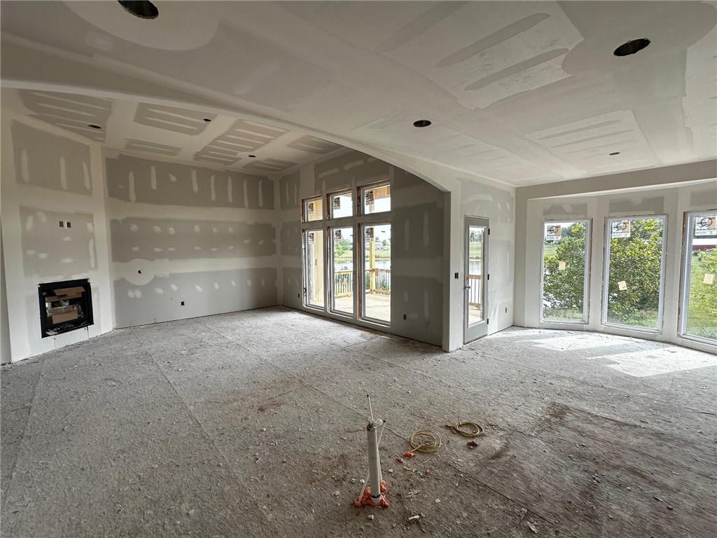 The "NOAH" by Robertson Construction! Positioned on a PREMIUM LAKE-BACKED LOT offering an outstanding view! This Stunning Reverse 1.5-Story offers 2822 sq. ft. with a beautifully designed living space and exceptional detail throughout! Floor-to-Ceiling windows overlook the backyard creating a seamless connection between indoor and outdoor living! The open concept design features a Corner Stone Fireplace, Real Hardwood Floors, Private Master Suite with a Luxurious Bath, Walk-in Shower, Huge Soaker Tub and access to the Laundry Room which is complete with a utility sink. Bedroom 2 is also on this level, ideal as a guest room or home office and 2nd Full Bath. The gourmet Kitchen is well designed with Custom Built Cabinets, Solid Surface Countertops, and Walk-in Pantry. The oversized Deck has easy access from both the Breakfast Room and Master Suite. A Finished Lower Level WALKOUT offers more Floor to Ceiling Windows, WET BAR with Beverage Fridge, 2 more Bedrooms, 2 Baths, Family Room and a GENEROUS AMOUNT OF STORAGE in 2 STORAGE ROOMS. Patio at the Walkout offers another great view leading to the backyard.