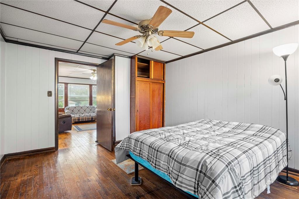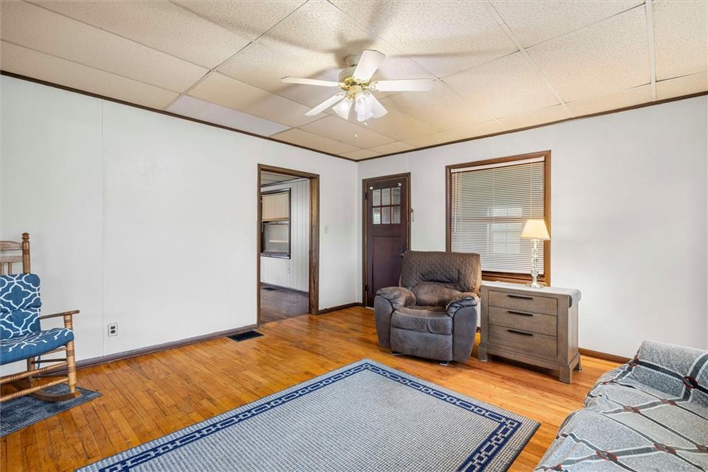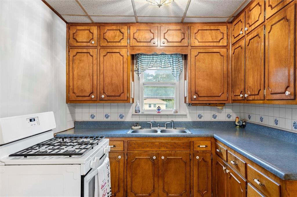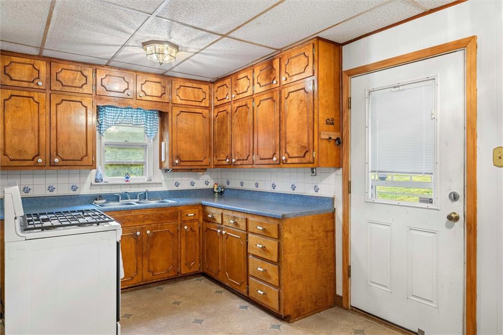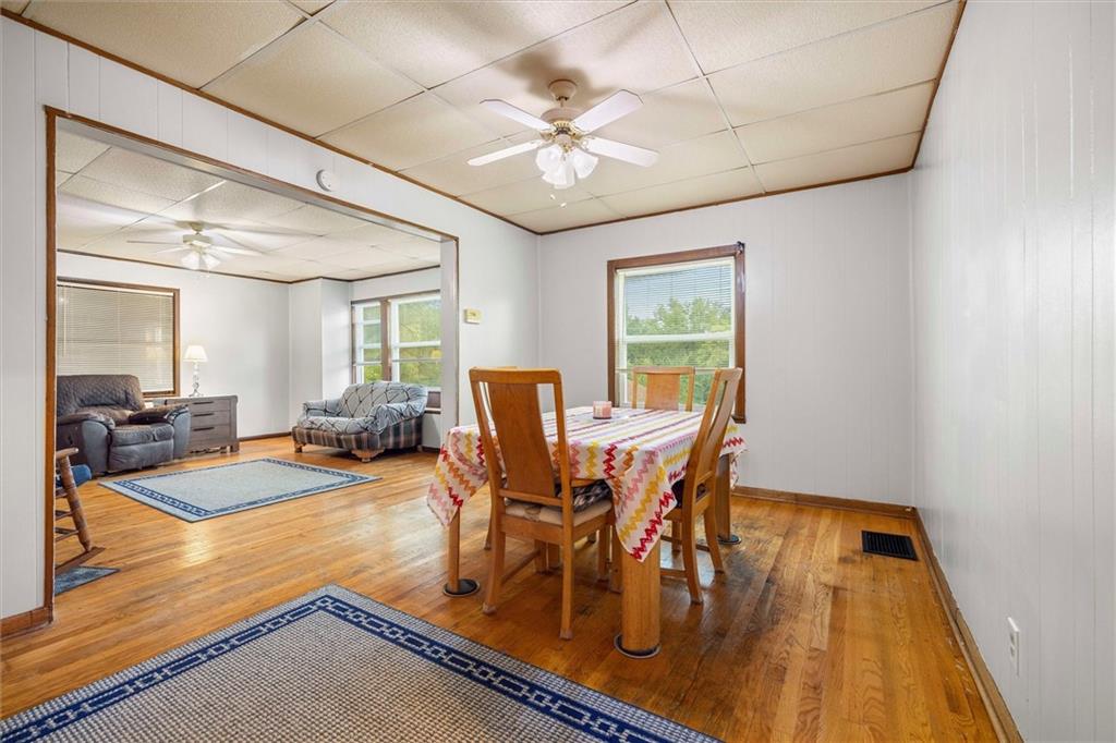 MOTIVATED SELLER!!! Nestled on nearly 2 acres this Grinter Heights home offers tranquility on roads less traveled yet close to everything KC. Main floor living provides a kitchen with well cared for stained cabinetry along with a freestanding gas range and a great view to the property. A large dining area and living room has beautiful wood floors and a lot of daylight through newer windows. Two nice size bedrooms along with a large bathroom with a newly resurfaced shower has lots of storage with built in cabinets. Enjoy the sunroom conveniently located right off the living room that also allows entry and exit from this space. The unfinished walkout basement includes an abundance amount of storage along with a nice shop. The exterior offers a two car carport, two sheds along with a nice size covered patio off the back of the home and right off the kitchen making grilling and entertaining a breeze. The land is nearly 2 acres and has partial fencing and backs up to greenspace. Roof is four years old along with newer HVAC and concrete drive. This property has been home to Halloween parties, hay rides and let's not forget the sleigh rides in the winter. This home located close to amenities yet a country feel on a quiet dead end road is a must see.