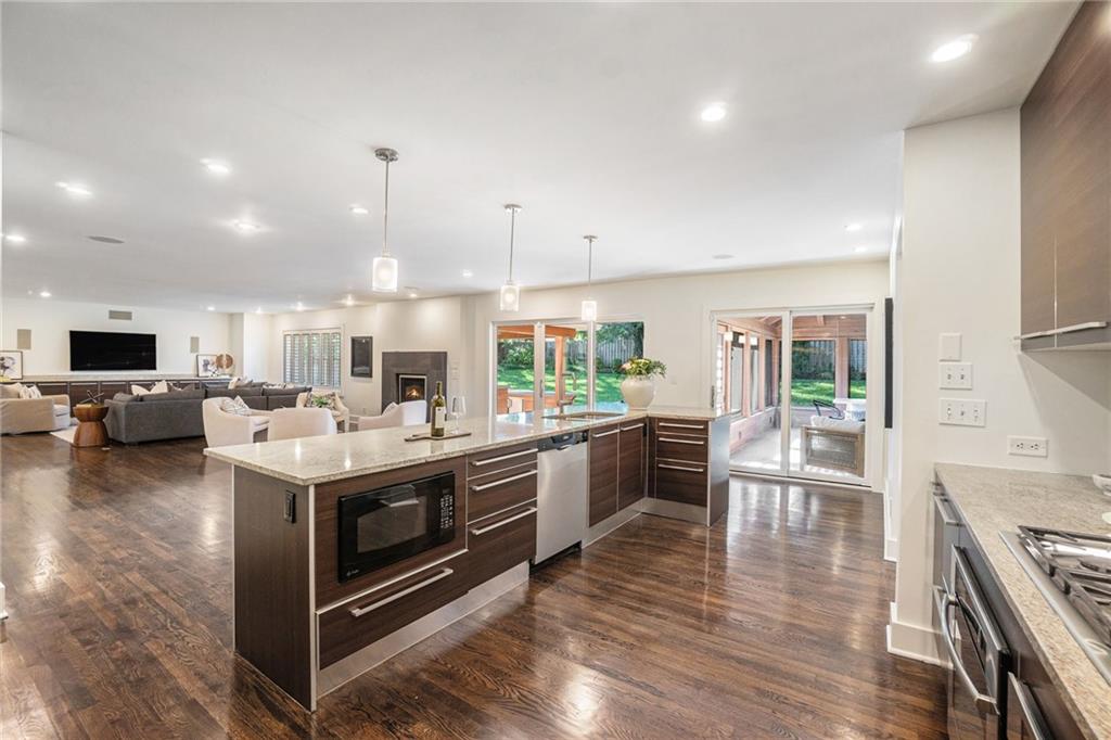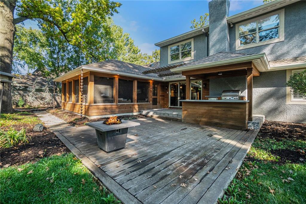 Discover this beautiful, spacious 5-bedroom, 4.5 bath home in the coveted Sagamore Hills neighborhood of Mission Hills, a true must-see. Nestled on a half-acre lot, it offers exceptional living and entertaining spaces inside and out. The main level features a freshly painted interior, hardwood floors and an expansive, open floor plan ideal for gatherings and daily living. The kitchen and great room feature sleek, custom Italian Pedini cabinets, providing incredible storage and a contemporary style. Sliding doors seamlessly connect to the deck and screend-in porch plus features like the fireplace, custom design elements and designated office space leave nothing else to want. The primary suite is conveniently located on the main level, offering a true private retreat and plenty of space for a sitting area or reading nook. The en-suite bath boasts a walk-in closet, an oversized soaking tub, an expansive double sink vanity, and a walk-in shower. Upstairs, you’ll find three additional generously sized bedrooms and two full baths—one of the bedrooms features its own private en-suite. You'll love the walk-in closets. Laundry facilities are thoughtfully located on the main level and lower level for added convenience. The lower level is designed for relaxation and entertainment, boasting an expansive rec room with fireplace, theater room, full wet bar, and wine room. A fifth bedroom and fourth bathroom are located on the opposite side of the lower level, providing a private guest suite or home office option. Step outside to a backyard oasis: a professionally designed screened-in porch and a fully equipped outdoor kitchen create the perfect setting for spring, summer, and fall evenings with family and friends. The sleak style and exceptional space make this Mission Hills stunner both functional and beautiful!