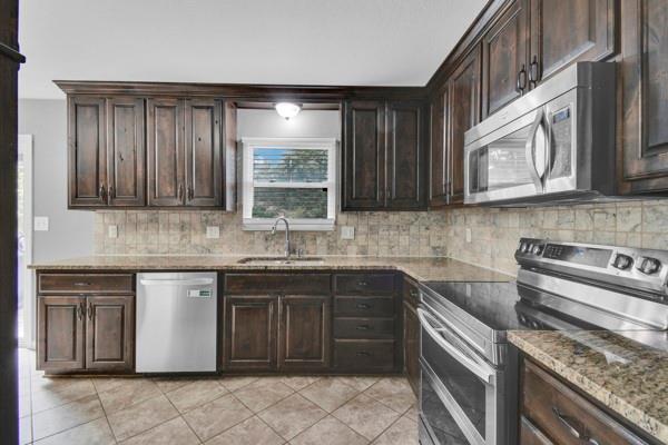 Corner-lot charmer in Valley High. The kitchen has granite countertops, stainless steel appliances, and stained cabinets. Vaulted living room. Finished lower level with brick fireplace, half bath, and flex room that can serve as a non-conforming 4th bedroom or office. Big deck and fenced backyard for pets and play. Convenient Belton location near parks, shopping, and I-49. Well-maintained and ready for its next owner. Buyer to verify all info.