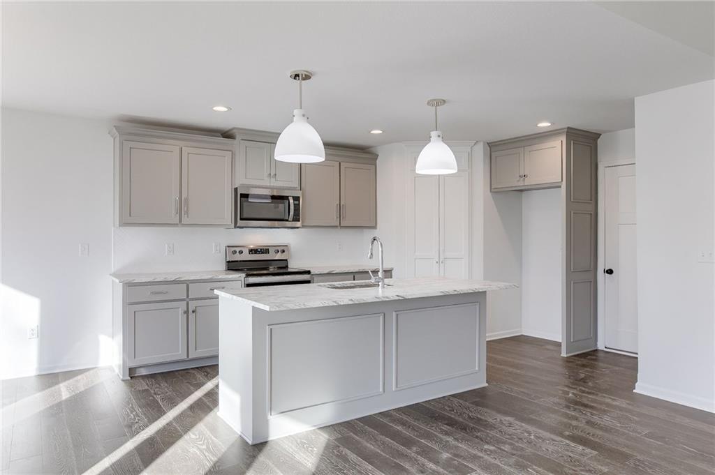 Beautiful nearly new Ranch, Private Backyard, Hardwoods, Tile, and trim upgrades, Kitchen Island, Walkin Closet, Pantry, Big unfinished basement, Daylight basement with wonderful deck, All the goodness of a small community but close enough to shopping, dining, and big city things to do!