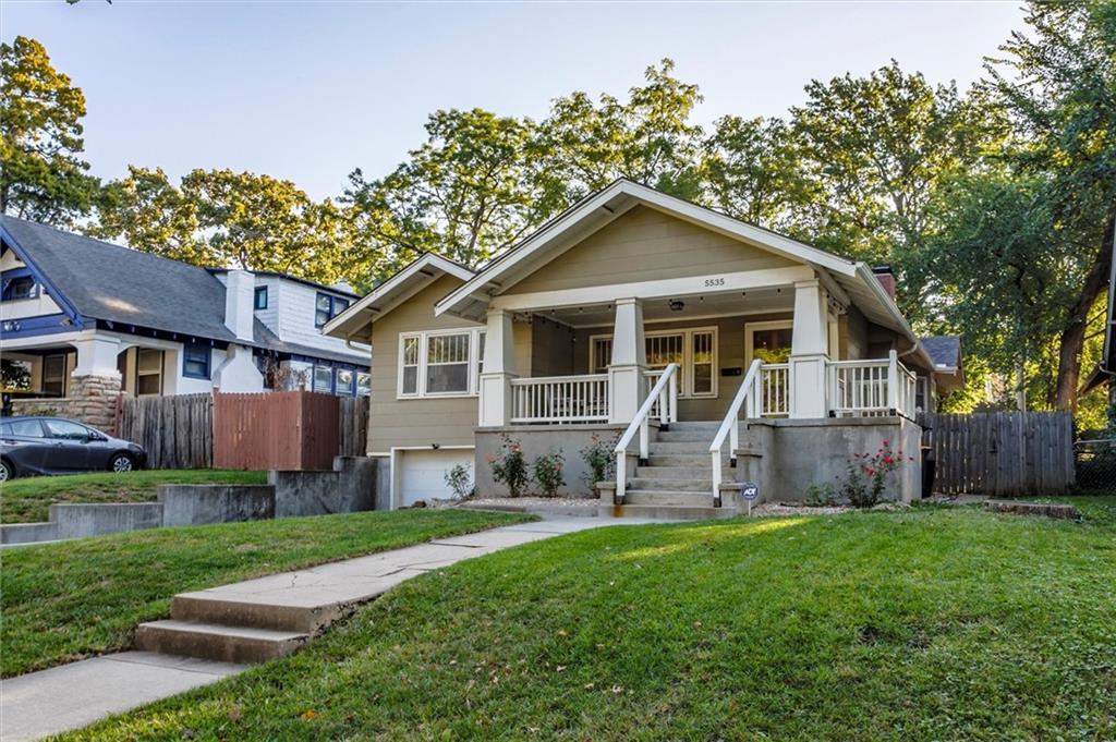 Charming Brookside raised ranch with extensive updates. Step up to the covered front porch with a nice seating area to enjoy a morning cup of coffee or evening drink while engaging with friendly neighbors. Open the door to gleaming hardwood floors in a living room and dining area combination. Off to the back of the house is an eat in kitchen area with tile floors, granite counter tops and stainless steel appliances. Towards the back door is the laundry room. Primary bedroom has two walk in closets, dual sink and shower in en-suite setup. The back yard has privacy fence around yard and is deeper than neighbors in the neighborhood. There is a side porch off kitchen and dining area which is covered for a more private outdoor seating. This home is located within walking distance to new Street Car extension to UMKC. Out your door and around the block you can stroll to numerous popular eating establishments like Tiki Taco, Gaels Public House, High Hopes Ice Cream, Black Hole Bakery, and the shops of Crestwood. Located a few blocks to UMKC and Rockhurst University, Country Club Plaza, Stowers Institute, The Nelson Atkins Museum, KC Art Institute and so much more is at your finger tips. Numerous bus lines just outside your door to assist with getting around town for those who choose public transportation.