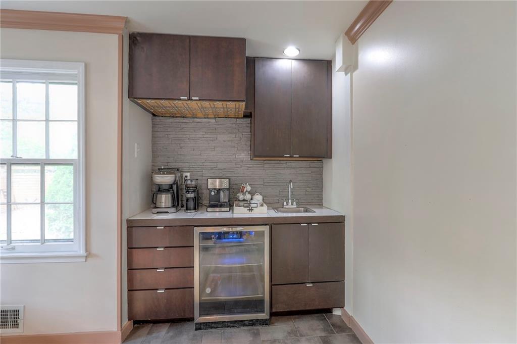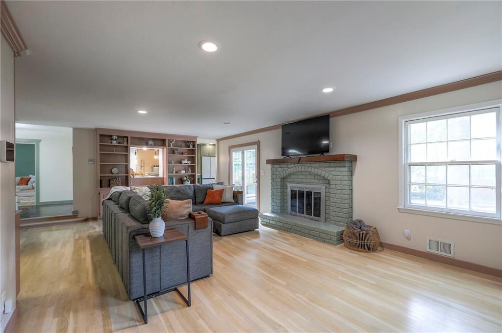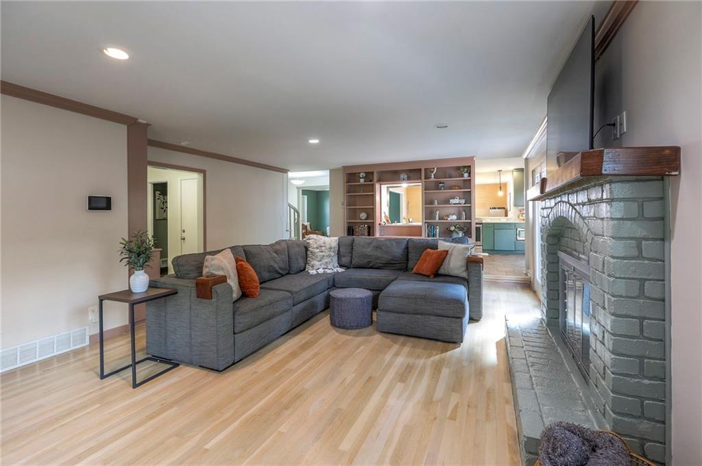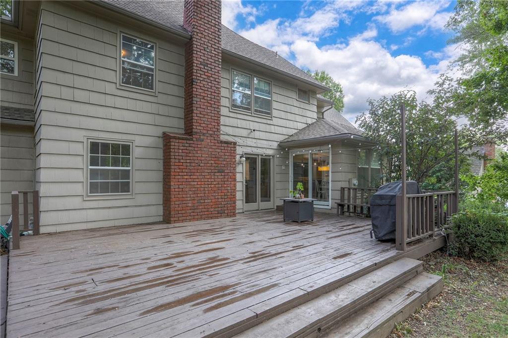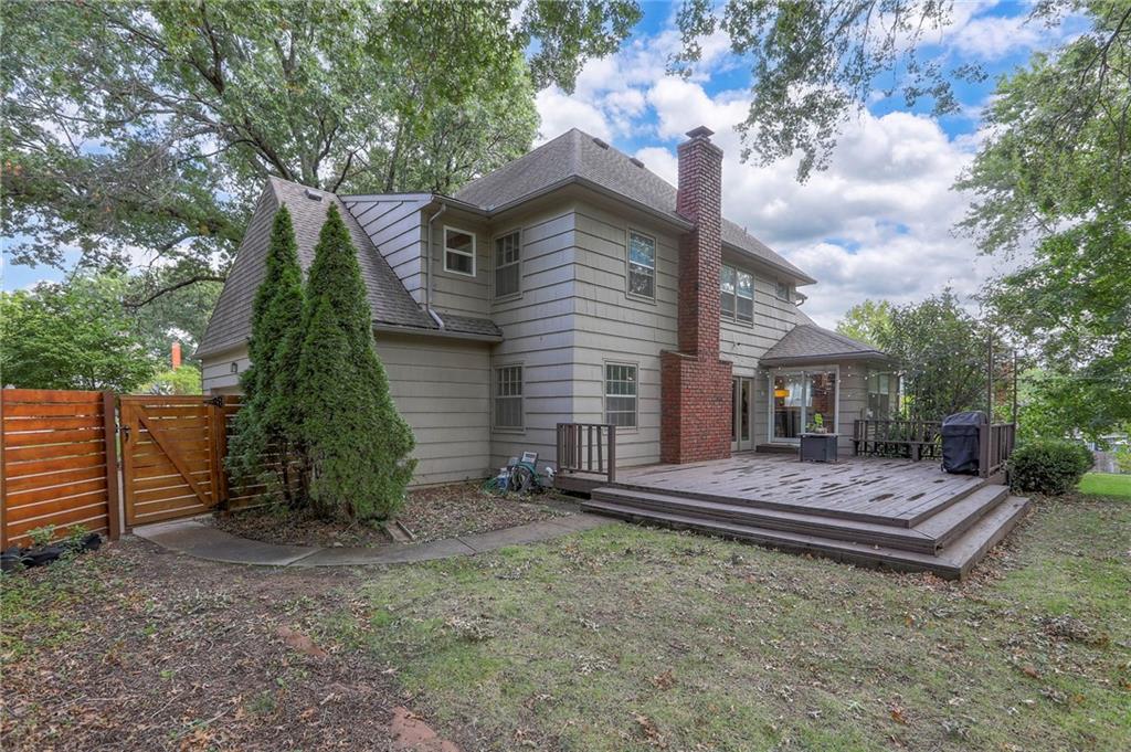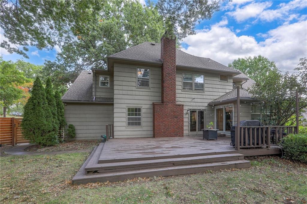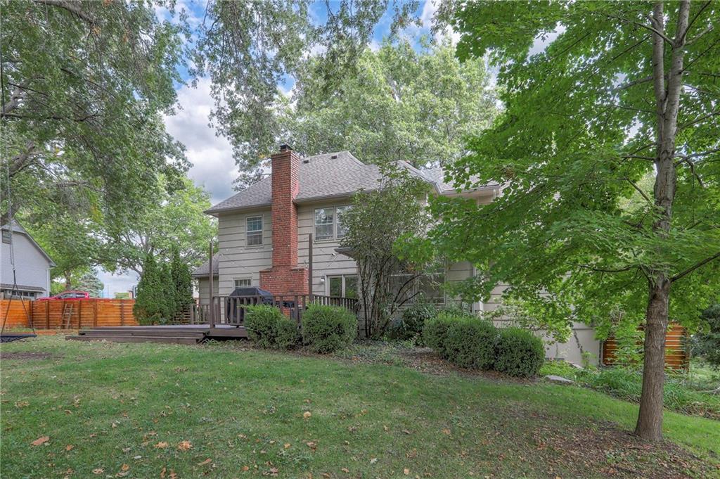 This beautifully updated home blends timeless charm with modern comforts. With five bedrooms upstairs, a sixth non-conforming suite in the lower level, and four full bathrooms, it offers generous space for everyday living and special occasions. The kitchen features custom cabinetry, quartz countertops, stainless steel appliances, a prep sink, and a pot filler. Soft hardwood floors and abundant natural light give the main level a bright, inviting feel. A flexible room with laundry hookups is currently used as an art studio. The primary suite offers a luxurious bath, ample closet space, and private access to the fifth bedroom, perfect for a nursery, sitting room, or home office. The finished walk-up lower level includes a spacious rec room, wet bar, wine fridge, and a cozy wine room. Set on a large, tree-lined lot and close to Blue Hills Country Club and favorite South KC spots, this home is full of character and ready to welcome you.