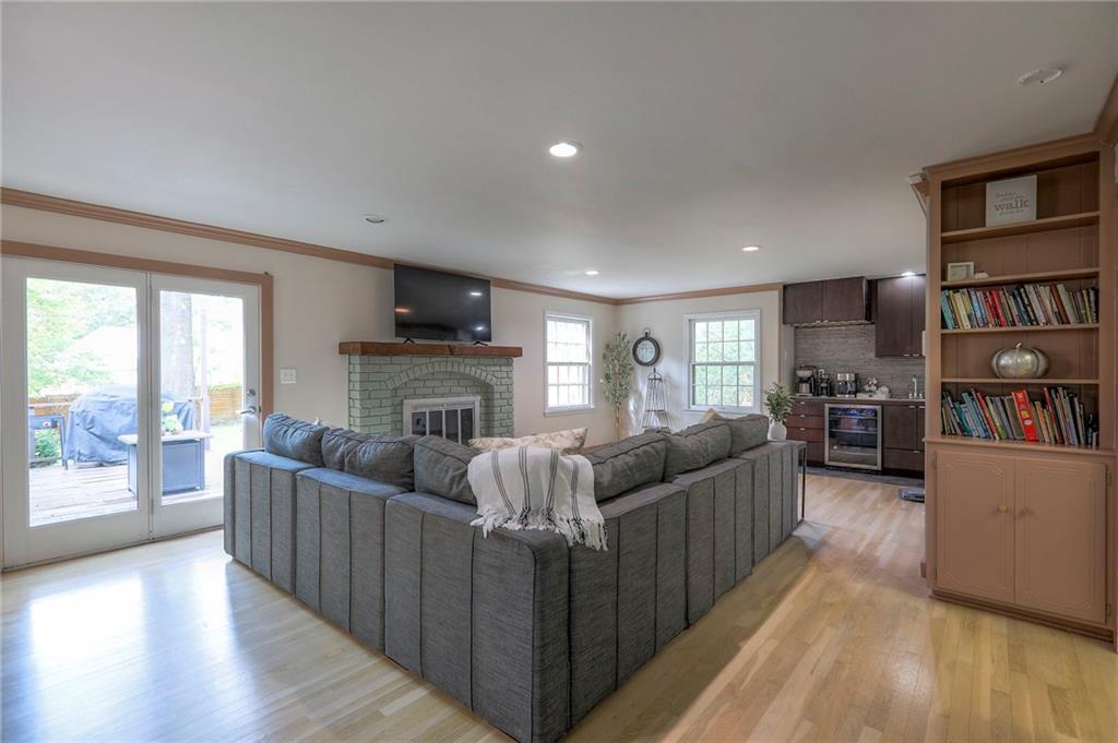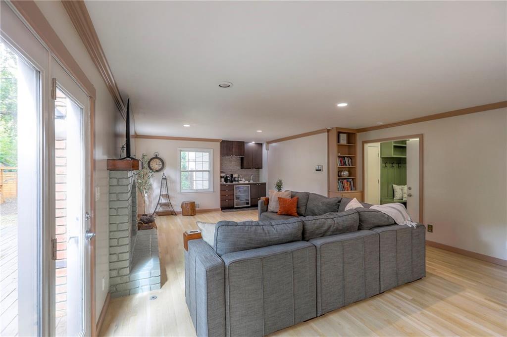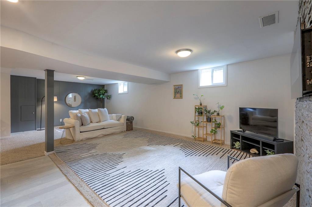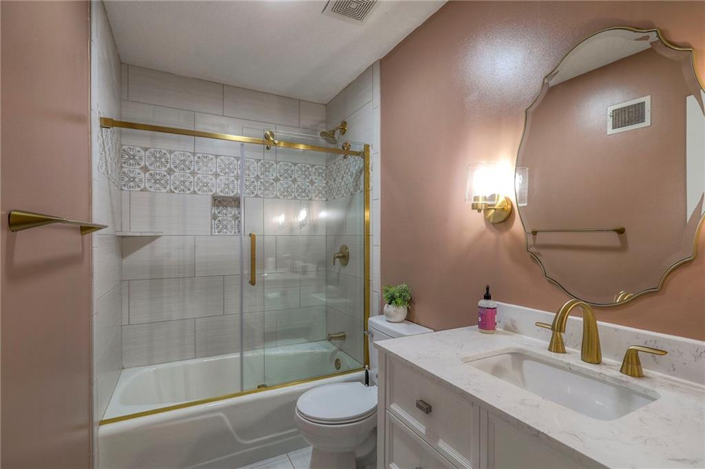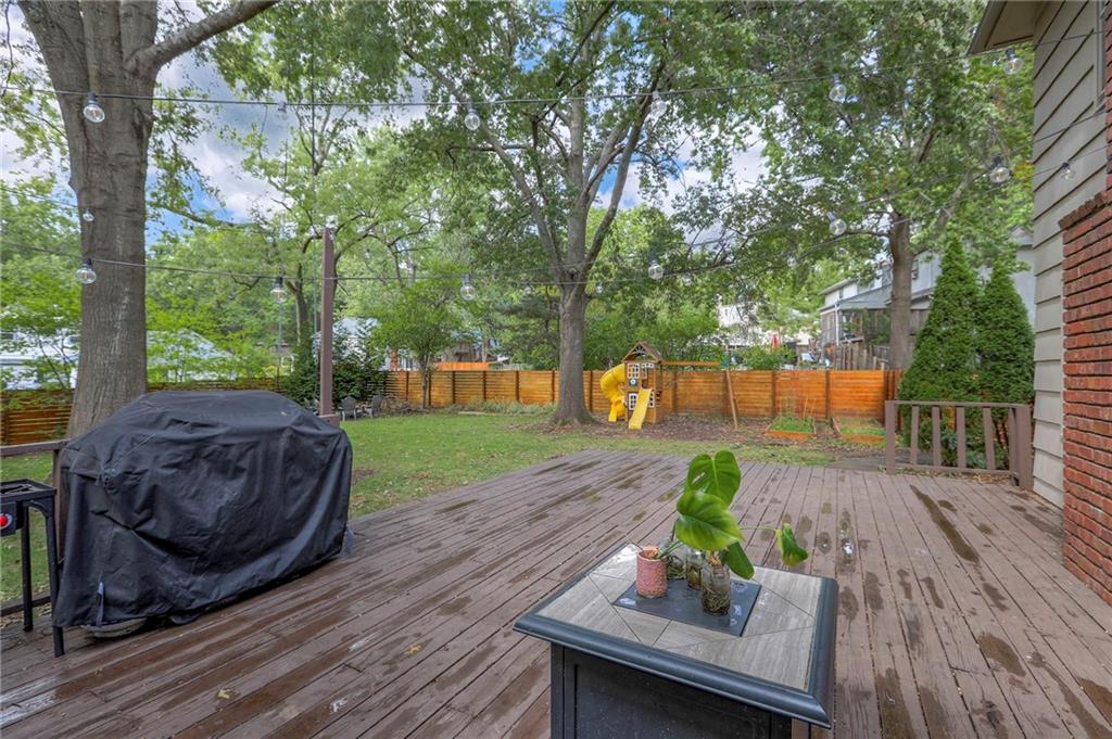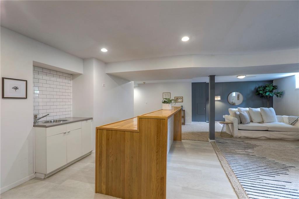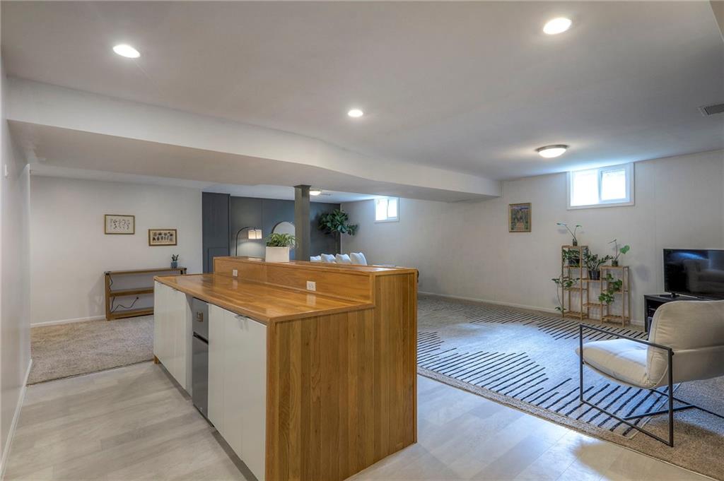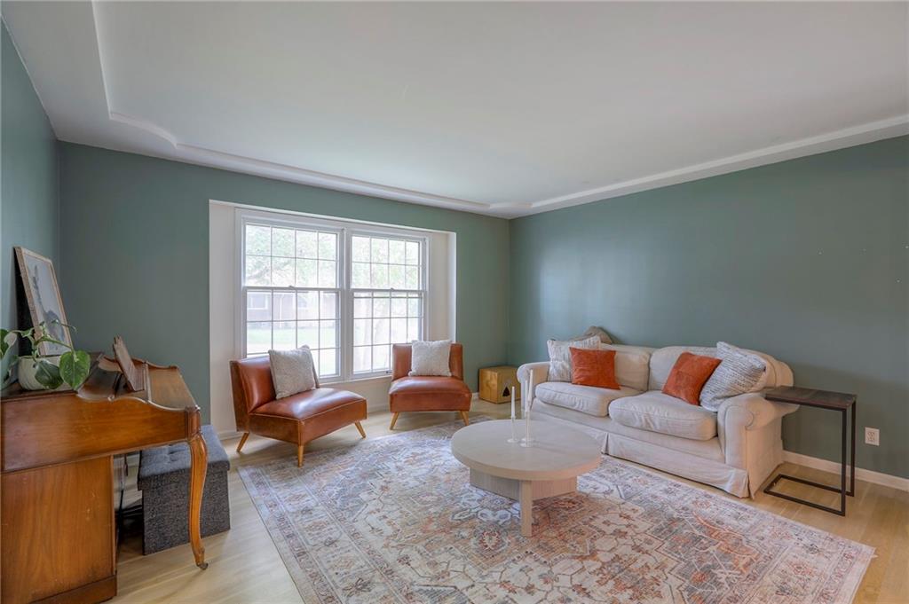 This beautifully updated home blends timeless charm with modern comforts. With five bedrooms upstairs, a sixth non-conforming suite in the lower level, and four full bathrooms, it offers generous space for everyday living and special occasions. The kitchen features custom cabinetry, quartz countertops, stainless steel appliances, a prep sink, and a pot filler. Soft hardwood floors and abundant natural light give the main level a bright, inviting feel. A flexible room with laundry hookups is currently used as an art studio. The primary suite offers a luxurious bath, ample closet space, and private access to the fifth bedroom, perfect for a nursery, sitting room, or home office. The finished walk-up lower level includes a spacious rec room, wet bar, wine fridge, and a cozy wine room. Set on a large, tree-lined lot and close to Blue Hills Country Club and favorite South KC spots, this home is full of character and ready to welcome you.