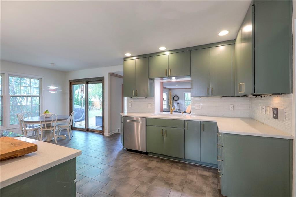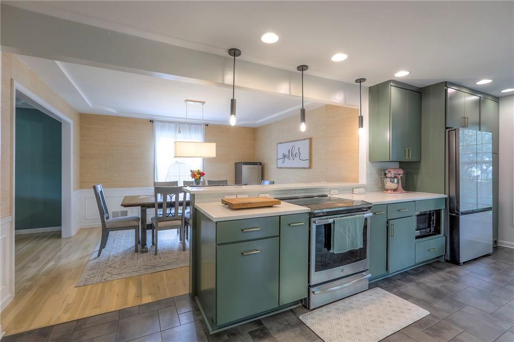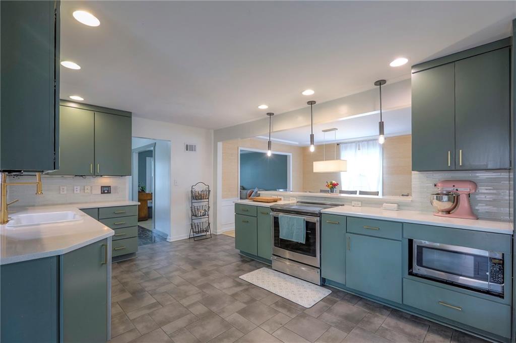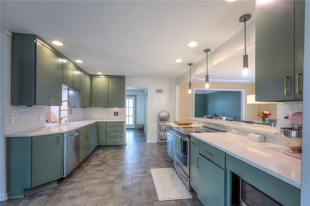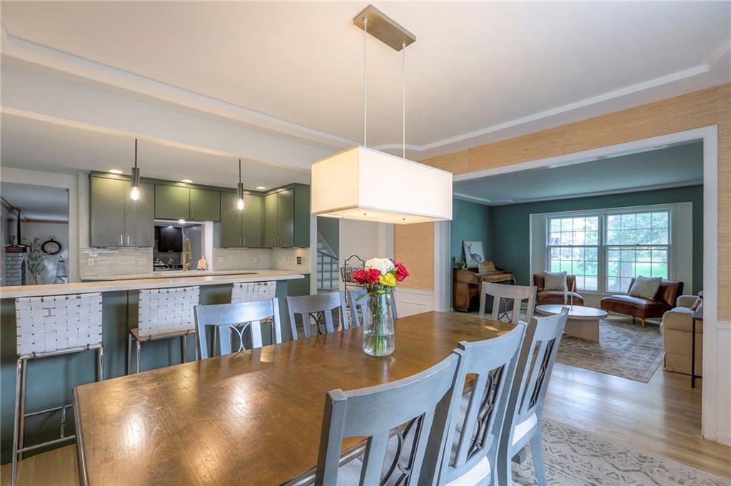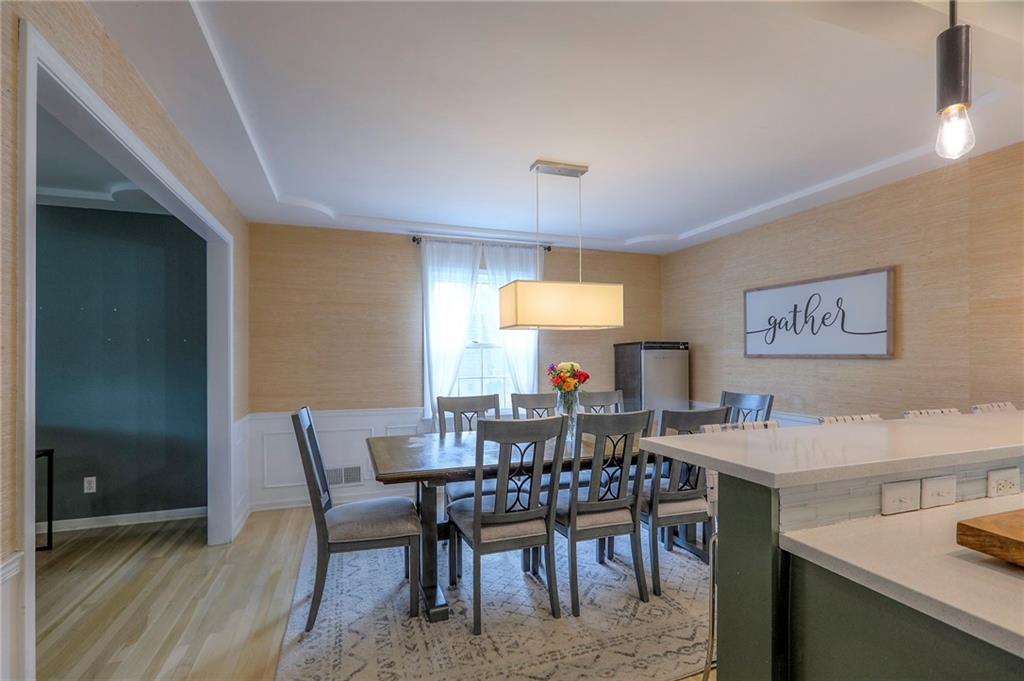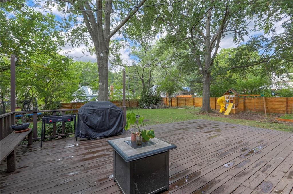 This beautifully updated home blends timeless charm with modern comforts. With five bedrooms upstairs, a sixth non-conforming suite in the lower level, and four full bathrooms, it offers generous space for everyday living and special occasions. The kitchen features custom cabinetry, quartz countertops, stainless steel appliances, a prep sink, and a pot filler. Soft hardwood floors and abundant natural light give the main level a bright, inviting feel. A flexible room with laundry hookups is currently used as an art studio. The primary suite offers a luxurious bath, ample closet space, and private access to the fifth bedroom, perfect for a nursery, sitting room, or home office. The finished walk-up lower level includes a spacious rec room, wet bar, wine fridge, and a cozy wine room. Set on a large, tree-lined lot and close to Blue Hills Country Club and favorite South KC spots, this home is full of character and ready to welcome you.