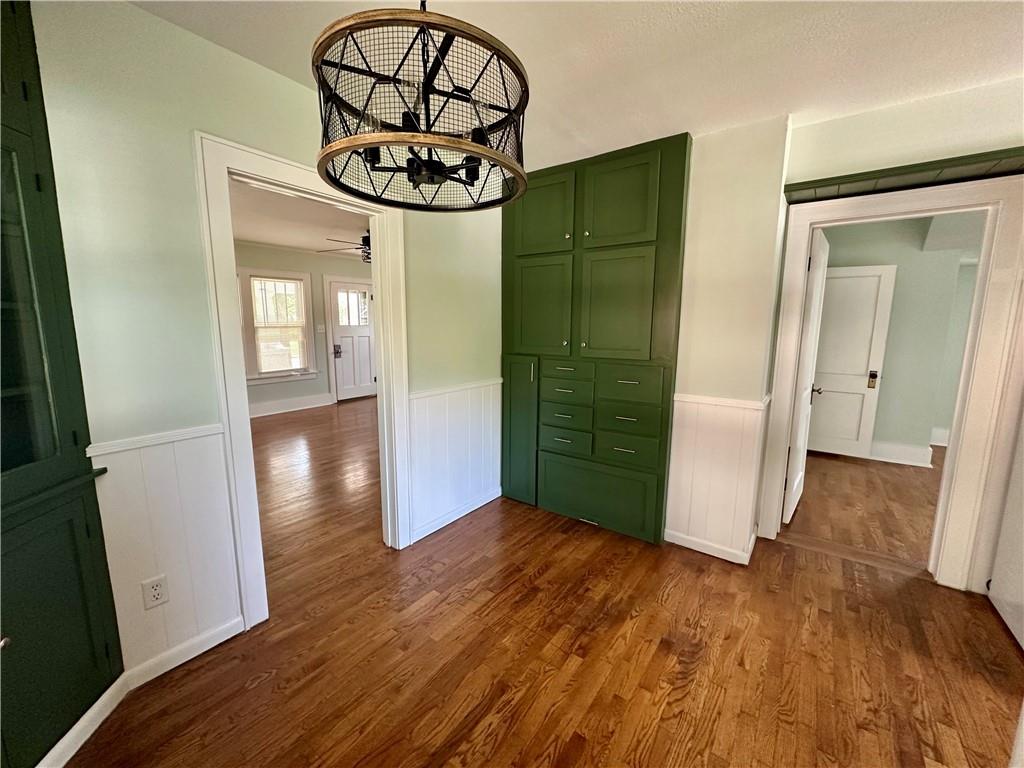 Charming and beautifully remodeled 1½-story home filled with character and modern updates! The main floor features a spacious living and dining area with gorgeous hardwood floors, a breakfast nook, and a stunning kitchen with custom-built cabinets, a copper farmhouse sink, and quartz countertops. Vintage built-in cabinets add a touch of timeless charm. A main floor bedroom and a convenient half bath complete this level. Upstairs offers 2–3 bedrooms and a full bath with a large walk-in shower. The walk-out lower level provides a generous family room, utility room, a spacious full bath, and a large finished storage closet. Enjoy relaxing on the inviting front porch, a fenced-in yard, and a 2-car garage. Ideally located close to the park!