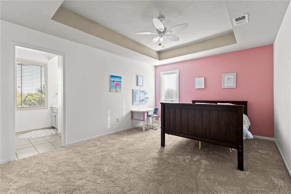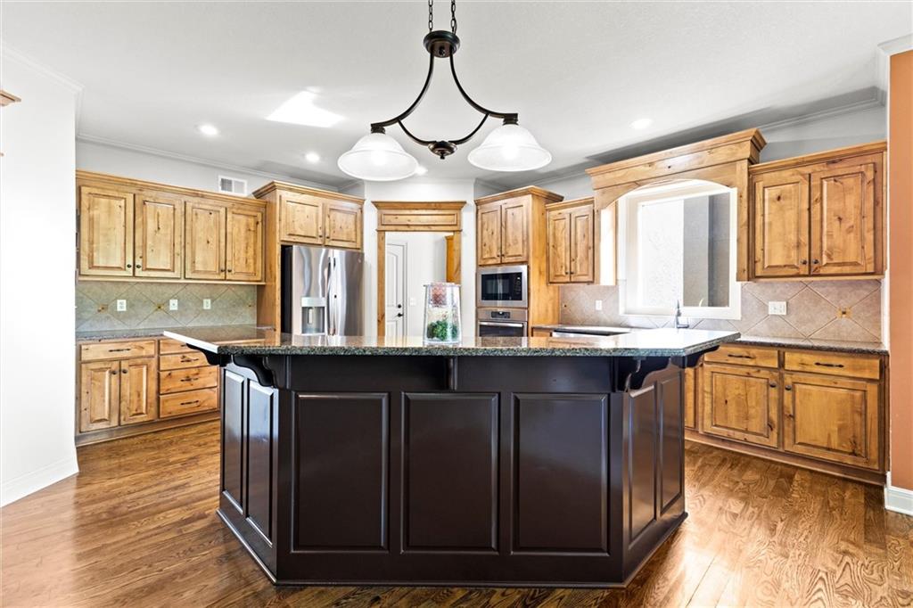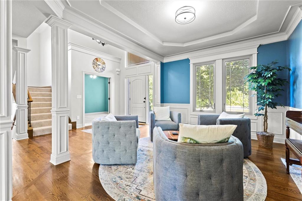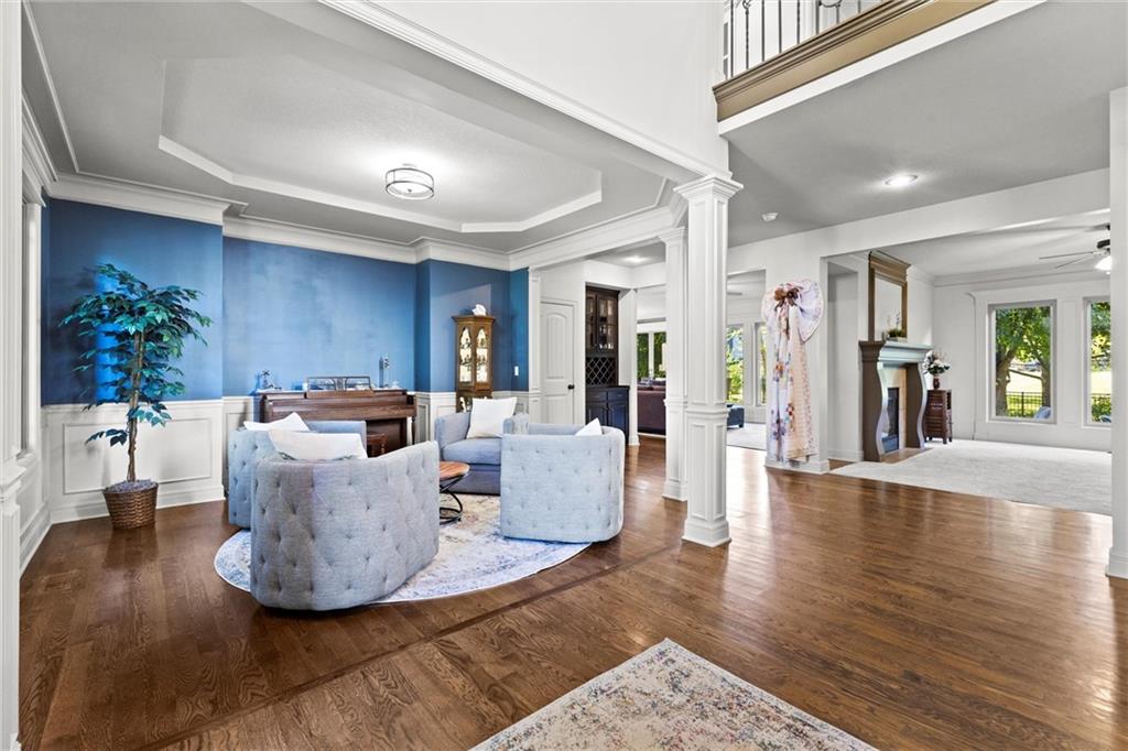 Welcome to this beautifully maintained two-story home in Coffee Creek Crossing- Overland Park. Step inside to find hardwood floors, quiet sitting area, private office, and a grand room with a see-through fireplace. The open floor plan flows into the spacious living room and an eat-in kitchen, featuring high-end stainless steel appliances, granite countertops, and a walk-in pantry. Updated windows allow abundant natural light to pour in, or step outside for private outdoor living space-relaxing backyard perfect for entertaining—with beautiful landscaping, a new patio, a built-in fire pit, and a private hot tub. Upstairs offers new carpet throughout all bedrooms, including a spacious primary suite, with convenient laundry access from the primary closet and hallway. There are three additional spacious bedrooms with generous walk in closets. A Hollywood-style bathroom connects two of the bedrooms, ensuring privacy, and the third has its own private bath. The finished lower level is multifunctional that is ideal for hosting- offering a living space, kitchenette, half bath, home gym, play area, and plenty of storage. Close to amenities, with easy access to Coffee Creek trail. Conveniently located near shopping, entertainment, near major highways, and award-winning Blue Valley Schools.