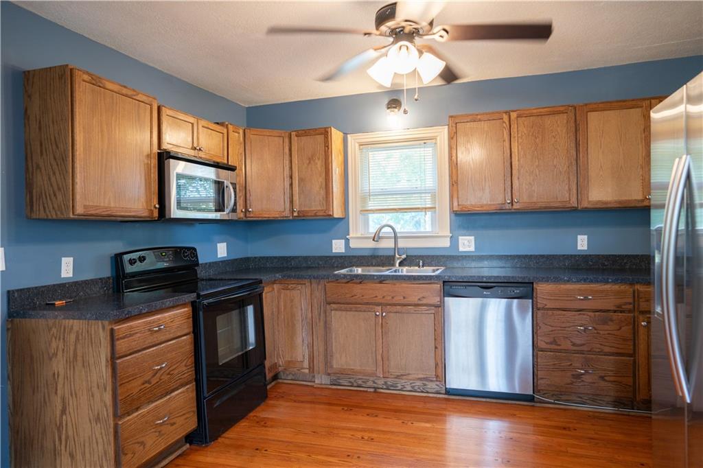 Welcome to 5116 NE 46th Street in the charming Sprinkle Heights neighborhood of Kansas City. This 3-bedroom, 1-bath bungalow offers over 1,300 square feet of cozy living space with a spacious kitchen, extra family room, and a freshly remodeled bathroom. One bedroom is on the main floor, with two more upstairs perfect for guests, kids, or your ever growing houseplant collection. Original wood floors add character, and the large yard with mature trees is great for BBQs, backyard games, or pretending you know how to garden. All this, plus an attached garage, in a quiet, friendly neighborhood.