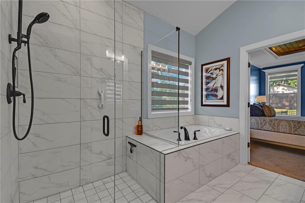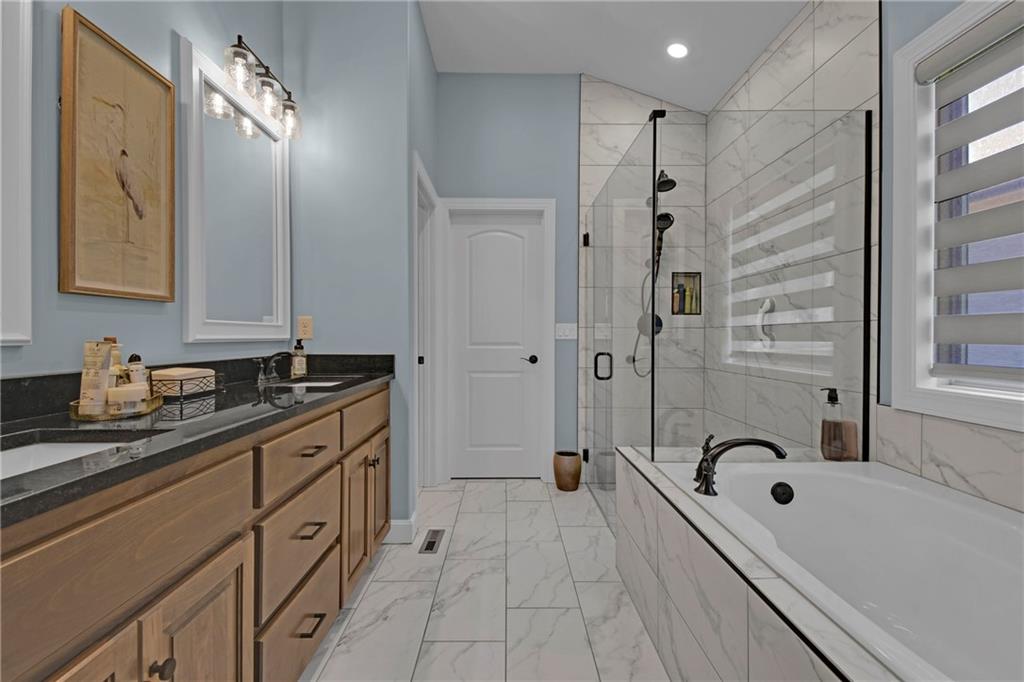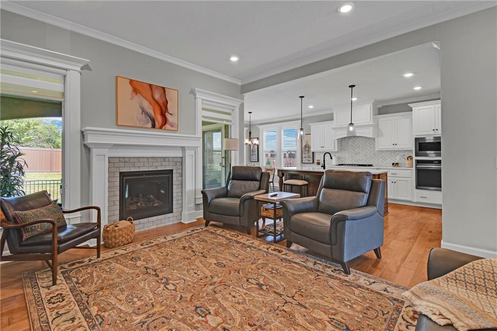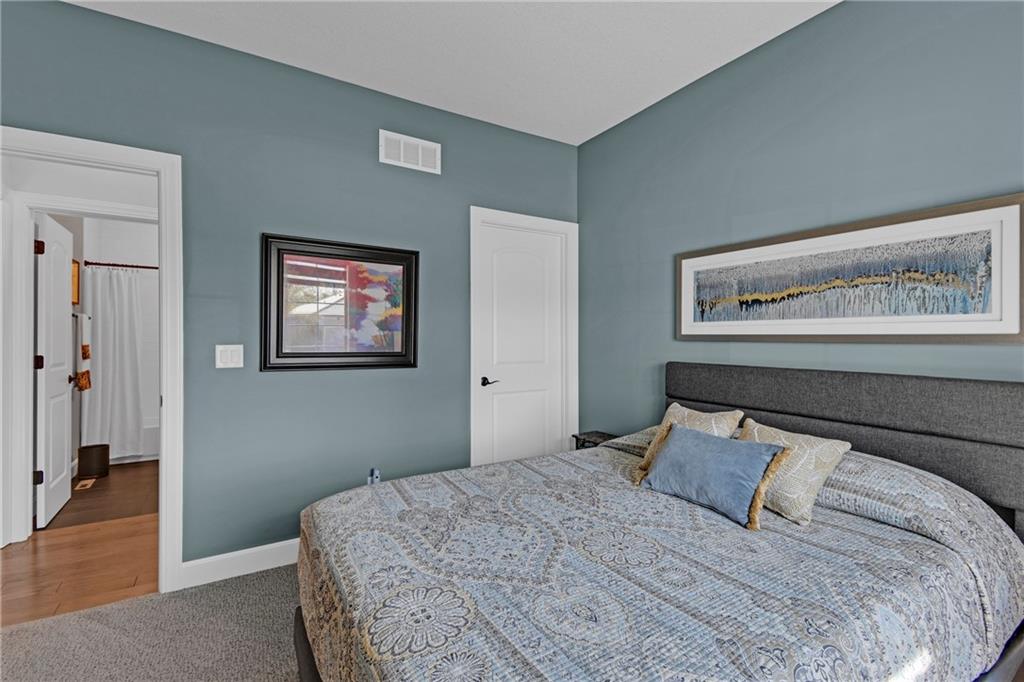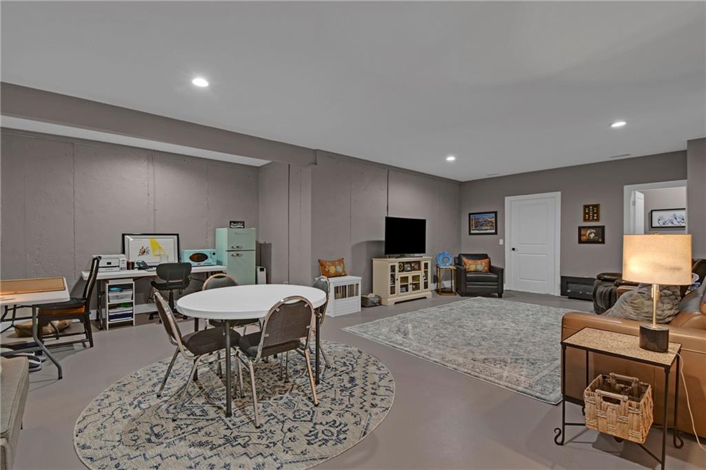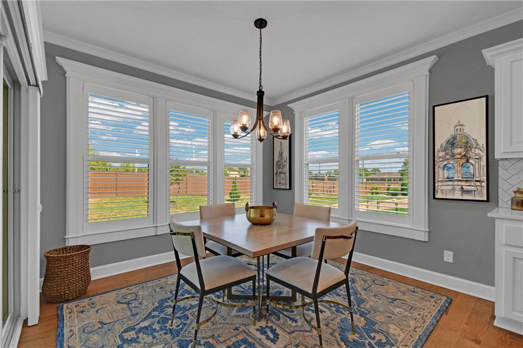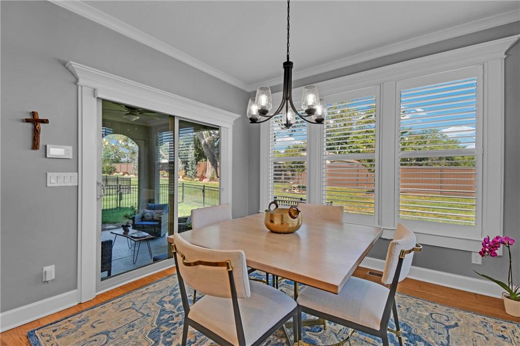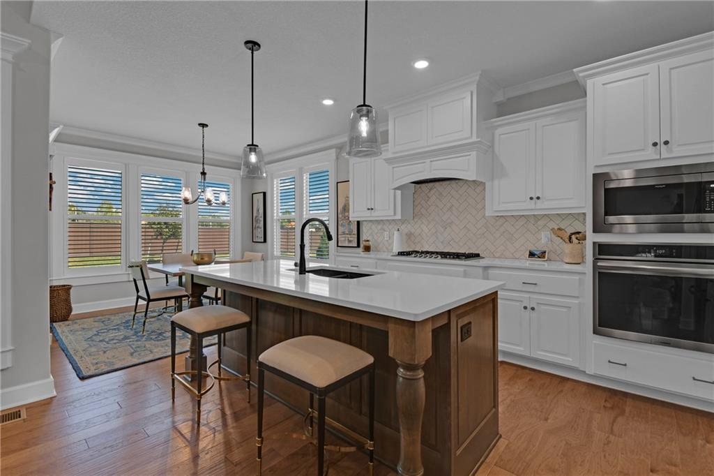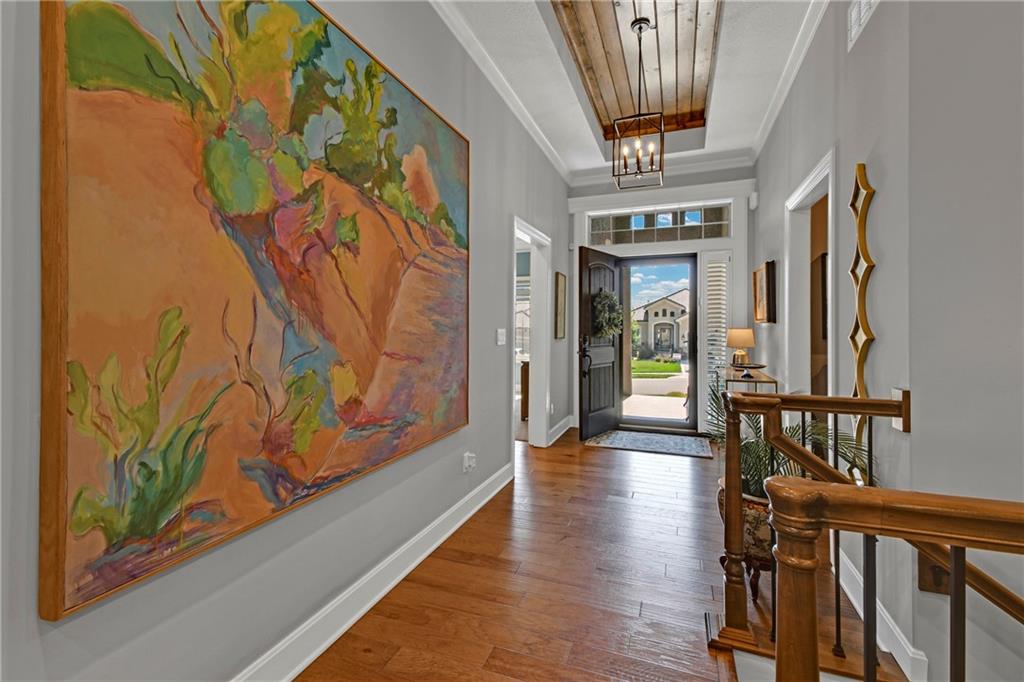 Fantastic opportunity & value in Woodside Ridge Villas! This exquisite Palermo plan blends style and function with a stucco exterior and durable tile roof for lasting curb appeal. The grand entry features intricate ceiling details and a modern light fixture, mirrored in the main-level primary bedroom with ambient tray lighting. Rich, stained cabinetry in the kitchen island and primary bath creates a cohesive flow, complementing the ceiling details. The kitchen dazzles with a marble-inspired herringbone backsplash, upgraded appliances including a built-in microwave/oven, gas cooktop, ustom wood vent hood & expansive pantry. The spa-like primary bath boasts a zero-entry shower, frameless glass door, soaking tub, and granite countertops that echo the tilework’s veining. Plantation shutters and stylish shades throughout enhance elegance and natural light control. Enjoy the covered front porch and rear patio, both featuring durable epoxy-coated floors, perfect for morning coffee, evening relaxation, or year-round gatherings. A sprinkler system keeps the lawn lush, and the over-sized garage also boasts a sleek epoxy-coated floor. The partially finished basement includes a 2nd living area, half bath, egress window for a potential third bedroom, and ample storage. A $143/mo fee covers lawn care and snow removal; the $1,100 annual HOA fee includes a competition-sized pool, clubhouse, pickleball court, walking trails, and trash service. Conveniently located near shopping & dining, and charming downtown Lee’s Summit. Buyer & Buyer's Agent to verify all information including square footage, zoning, taxes & room sizes during the Inspection Period.