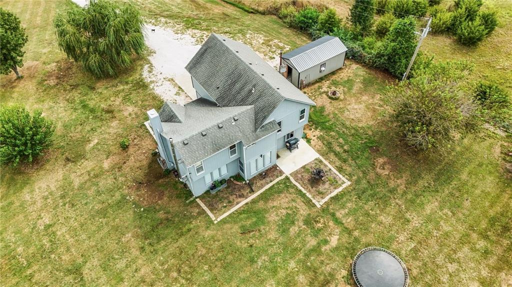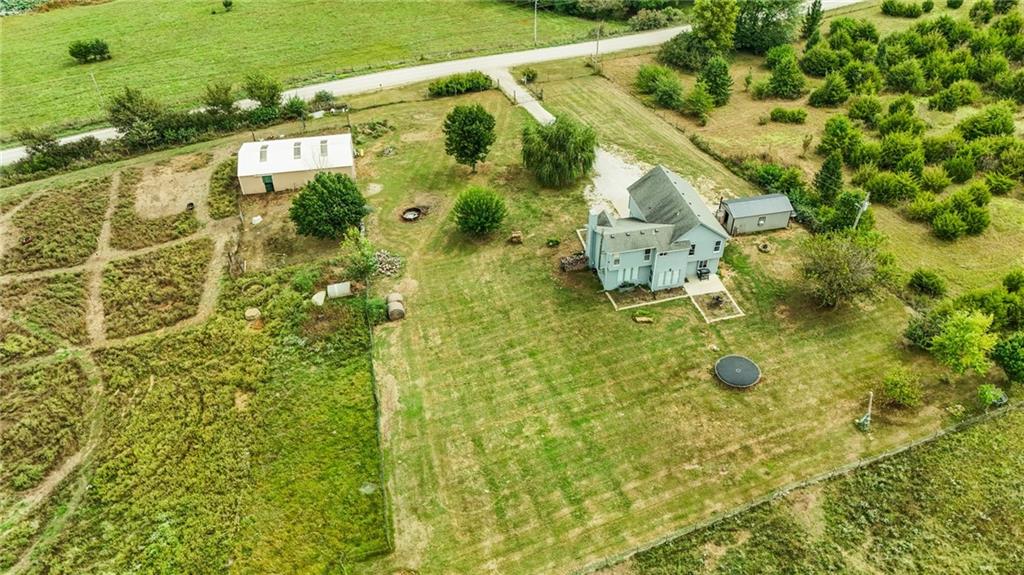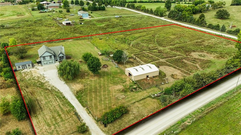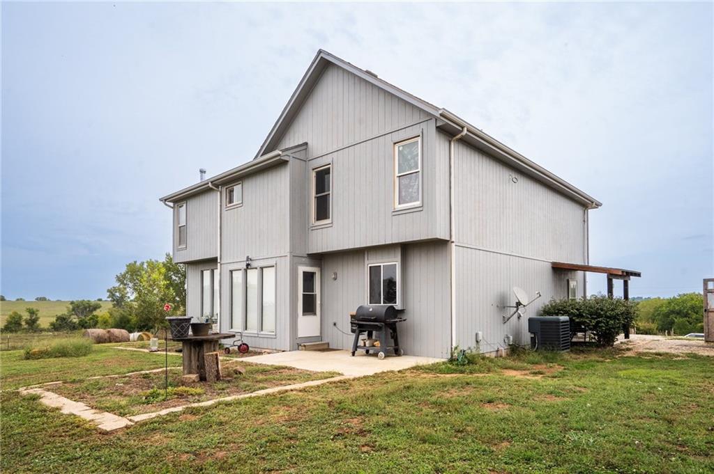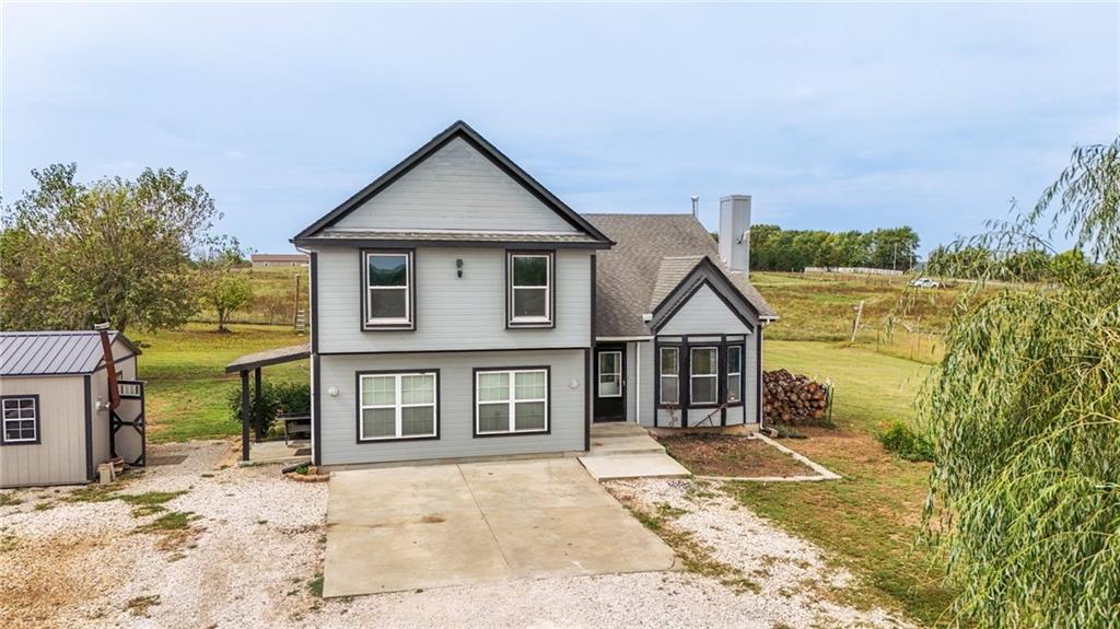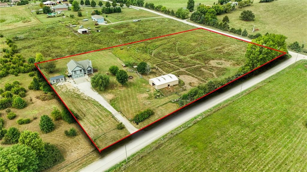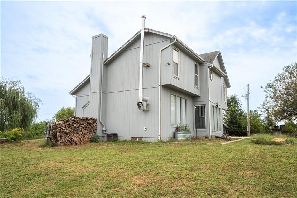 Bring the animals and fishing poles to this awesome mini farm located just 1/2 mile from Leavenworth County State Fishing Lake! This 4 Bedroom, 3.5 bath home features everything you would want for "Farm Life/Self Sustained Living"! Easy to maintain plank laminate flooring, all updated bathrooms, and a huge country kitchen with granite counter tops! A massive "bonus room" on the ground level is currently being used as a primary bedroom...but with its exterior private entrance it could be an in-law apartment, Airbnb rental, farm "prep room" or a home based business.This well laid out farmhouse even features a loft area, that is perfect for a "work from home office". Outside is a large barn with shop area, and enclosed area for calves, goats, horses, etc. The acreage is fenced in smooth wire, and has been used for horses in the past.This modern Homestead includes grapevines, high producing "honey crisp" apple tree, and mulberry tree for great tasting jam! It even comes with a 150 foot zip line for kids and adults that are brave enough! Properties like this don't come along often, come take a look!