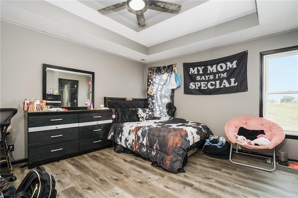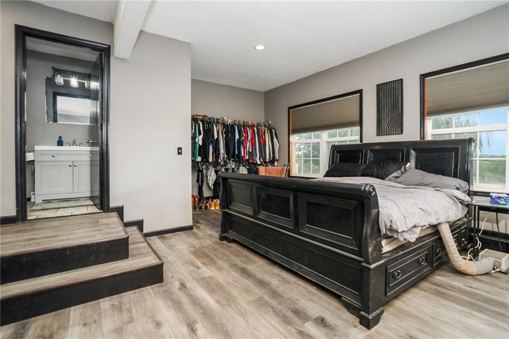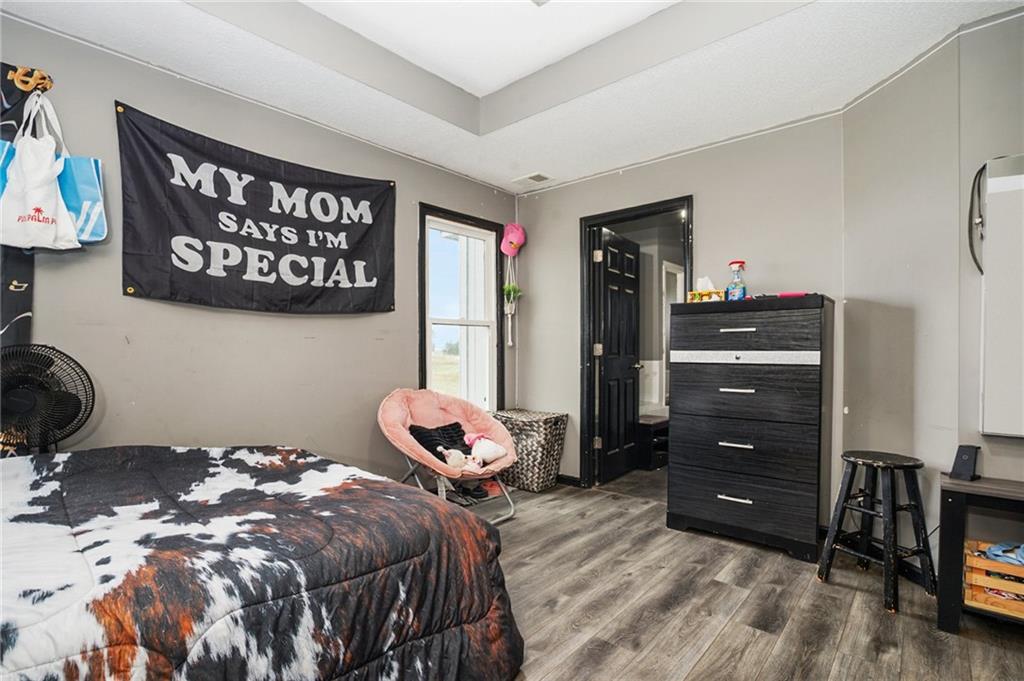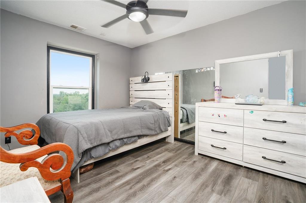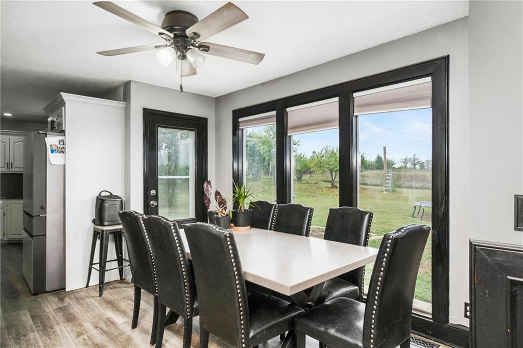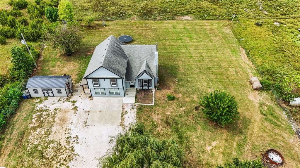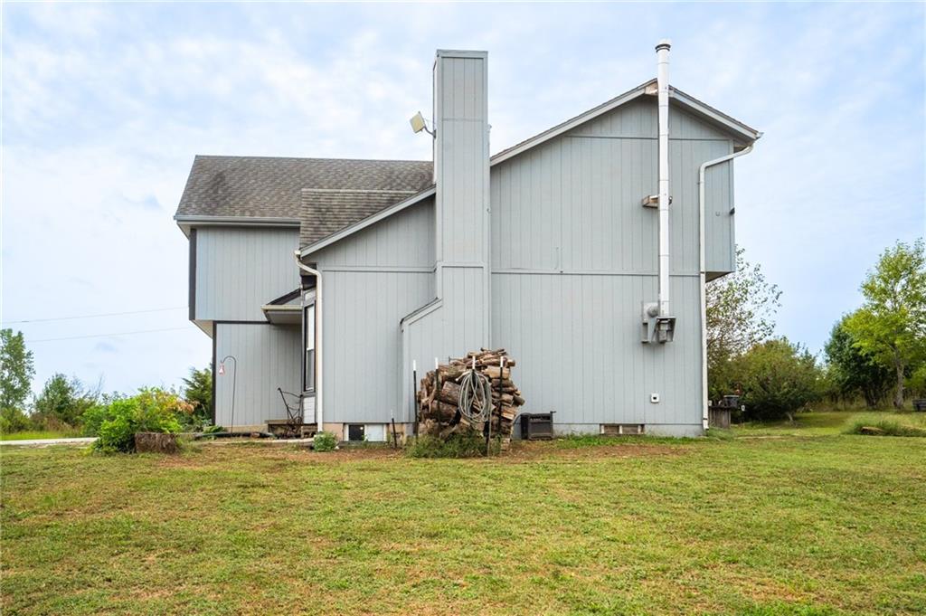 Bring the animals and fishing poles to this awesome mini farm located just 1/2 mile from Leavenworth County State Fishing Lake! This 4 Bedroom, 3.5 bath home features everything you would want for "Farm Life/Self Sustained Living"! Easy to maintain plank laminate flooring, all updated bathrooms, and a huge country kitchen with granite counter tops! A massive "bonus room" on the ground level is currently being used as a primary bedroom...but with its exterior private entrance it could be an in-law apartment, Airbnb rental, farm "prep room" or a home based business.This well laid out farmhouse even features a loft area, that is perfect for a "work from home office". Outside is a large barn with shop area, and enclosed area for calves, goats, horses, etc. The acreage is fenced in smooth wire, and has been used for horses in the past.This modern Homestead includes grapevines, high producing "honey crisp" apple tree, and mulberry tree for great tasting jam! It even comes with a 150 foot zip line for kids and adults that are brave enough! Properties like this don't come along often, come take a look!
