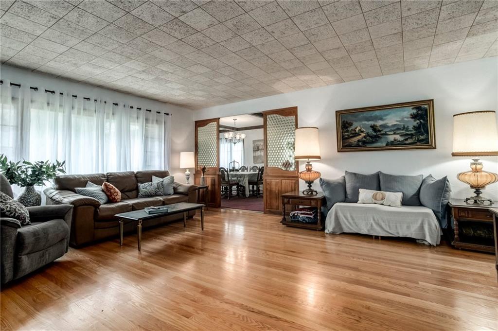 A ONE OF A KIND GEM! Original Family Owned/Constructed on .80 acre with green space behind property. 6 BEDROOMS, 3 FULL BATH. Meticulous care and much bigger than it appears from street view. Every square foot has been thoughtfully designed for optimal living space. Beautifully maintained floors and wood burning fireplace greet you in the spacious Living Room. An abundance of natural light throughout. Two generously sized main level bedrooms featuring wood flooring and a remodeled full bath. Three bedrooms with walk in closets on the upper level. The lower level features a Great Room, the 2nd fireplace, mud/laundry room, full bath, walk-out and numerous storage rooms. The bonus room is perfect to be utilized as a large office or a guest (6th)bedroom. The additional workshop with private entry is accessed from the covered patio. Within minutes to I-70, I-435, and all major conveniences. Roof replaced in 2018