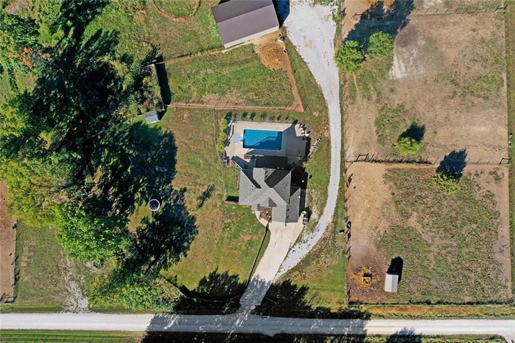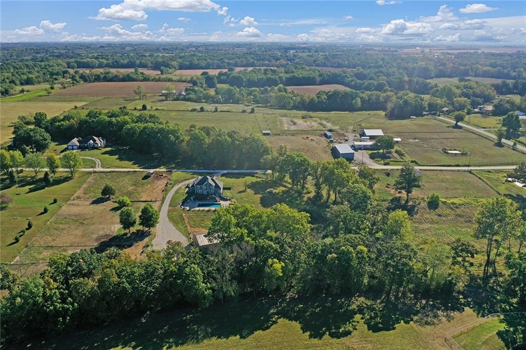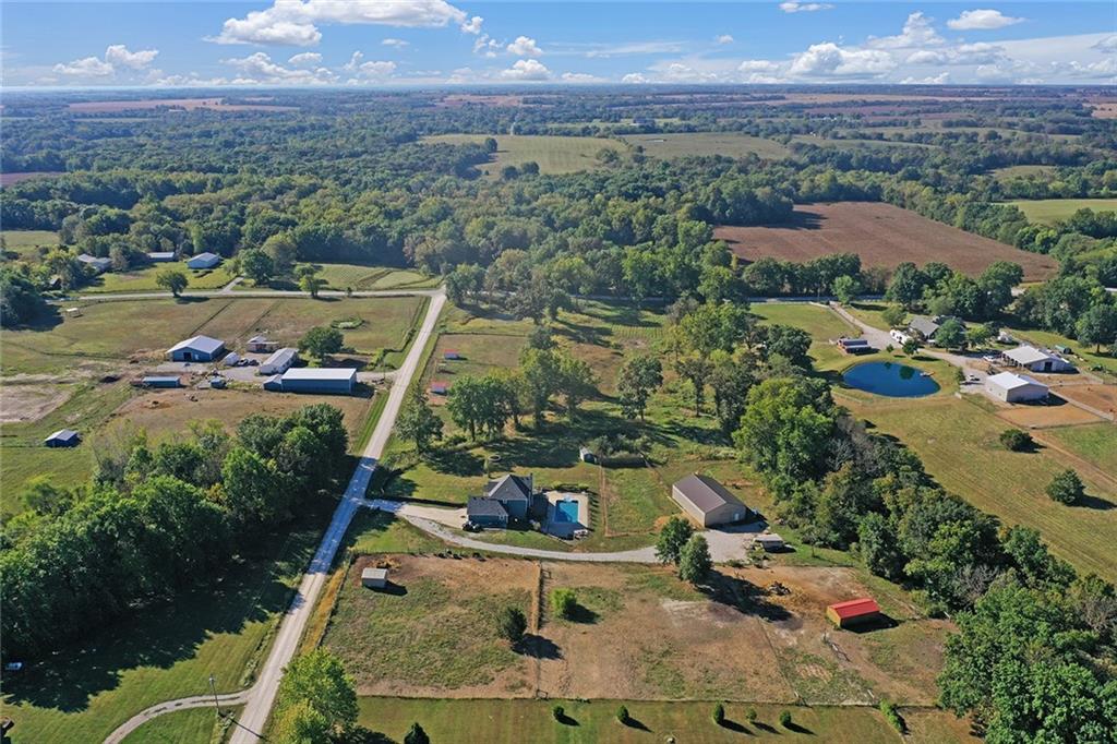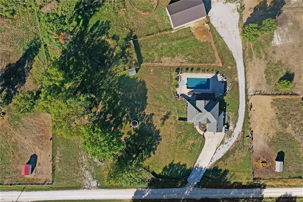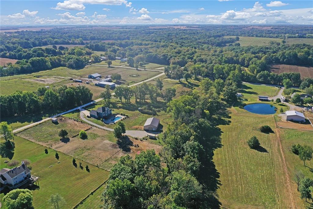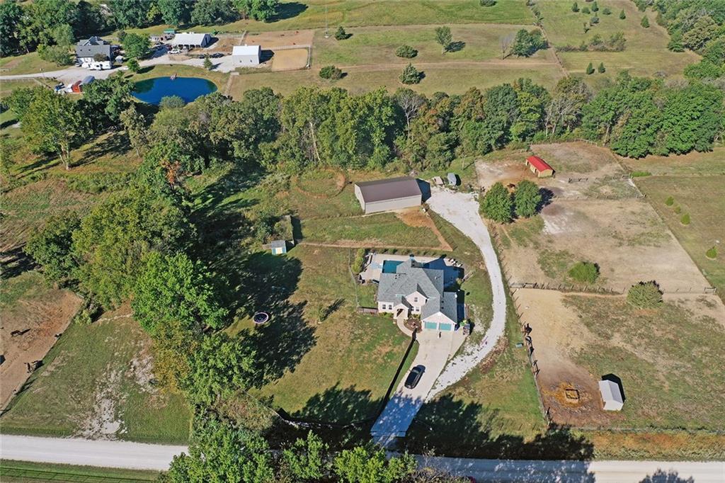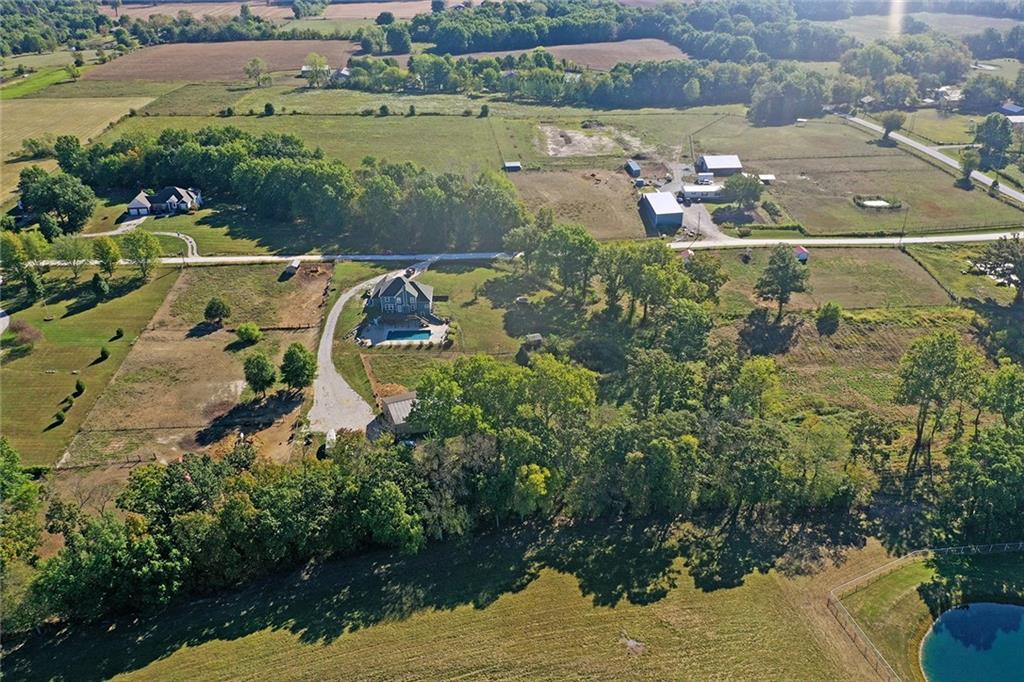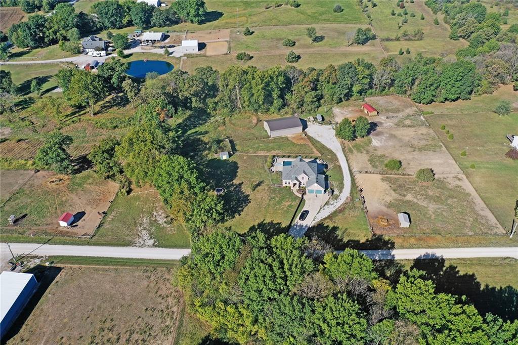AMAZING custom built home on BEAUTIFUL 10 acres has sooo much to offer. Newly remodeled kitchen with tons of granite countertops, a breakfast bar, loads of custom cabinets (some pull outs & a lazy susan), 3 pantries, newer high-end appliances & more. Breathtaking custom built wood staircase made out of the wood cut from trees on the property. You will love the huge walk-in tiled shower with multiple jets in the newly updated master suite. Newer Life Proof luxury vinyl flooring throughout the main level and upstairs. Bedroom 3 has a large closet & additional attic space was finished for a play room or even more closet space! Lots of newer paint throughout. Finished walk-out basement with brand new nicely finished full bath. 7th BR down does not have an egress window. New roof in 2019. Outside paint in 2021. Oversized garage. Gorgeous 40x20 inground salt water pool with extensive concrete perfect for entertaining. New pool pump in 2024 and new sand filter in 2023. 40x60 Barn built in 2022 with electric, horse stalls, automatic waterers, tack/feed room & more perfect for the horse lovers. Shed & additional outbuildings. Newer fencing to the right of the home. New lagoon dug & new septic in 2022. 1/4 of an acre stocked pond. Only 700 feet of gravel road to the home!