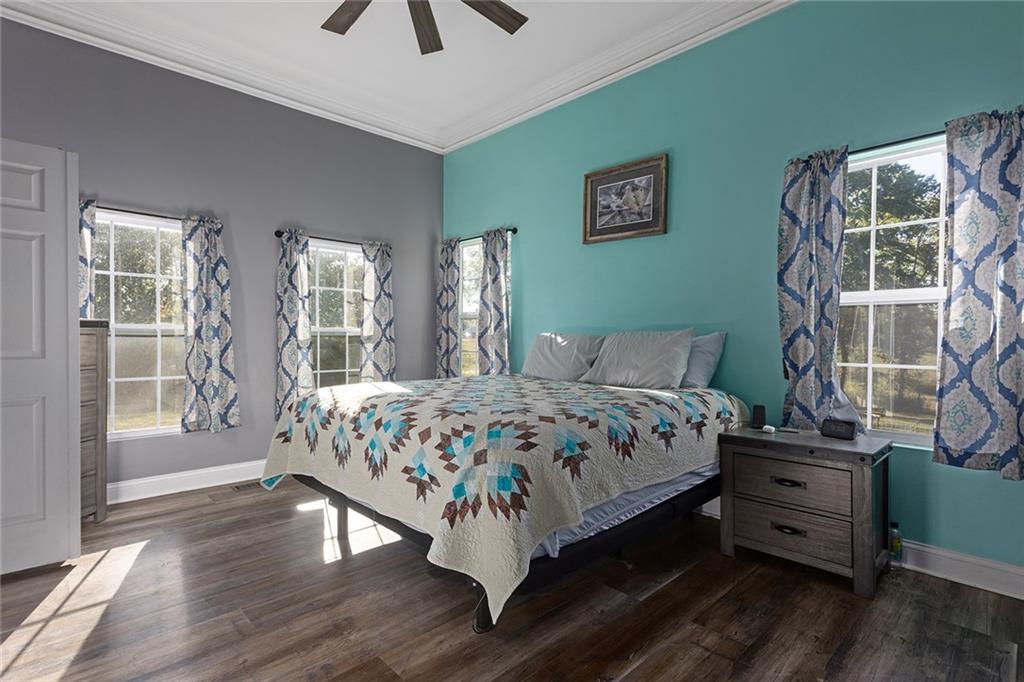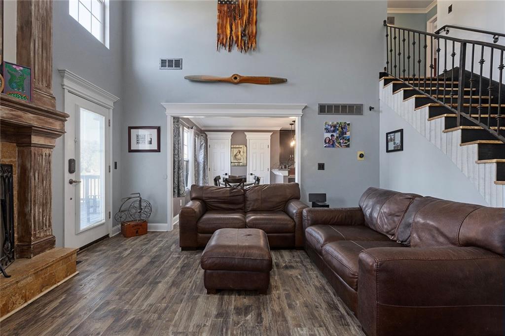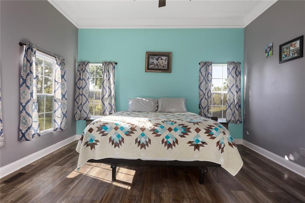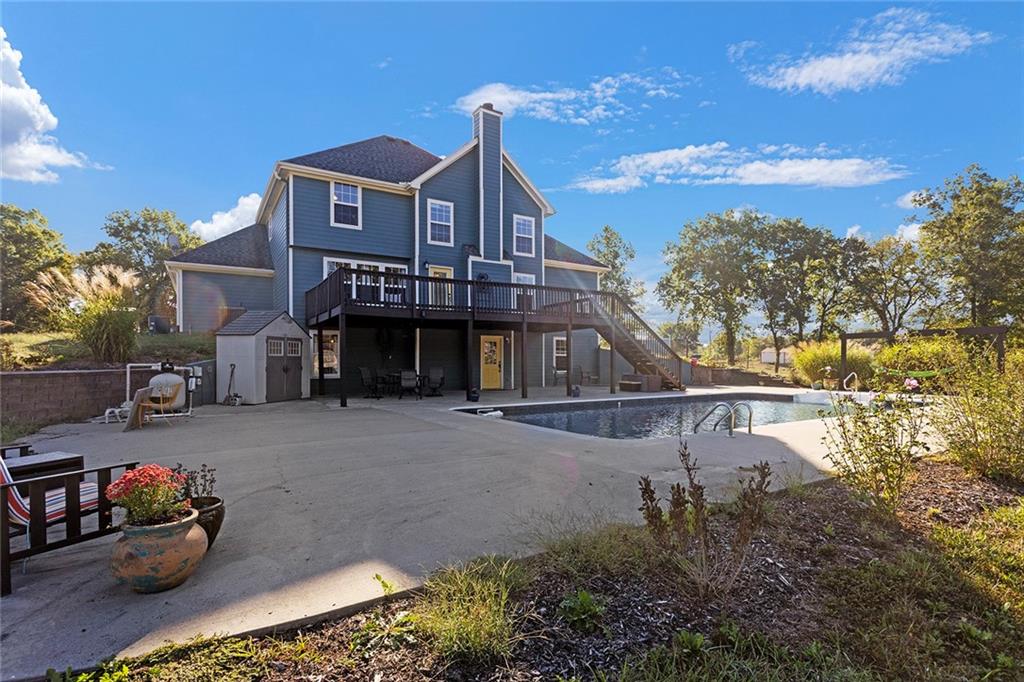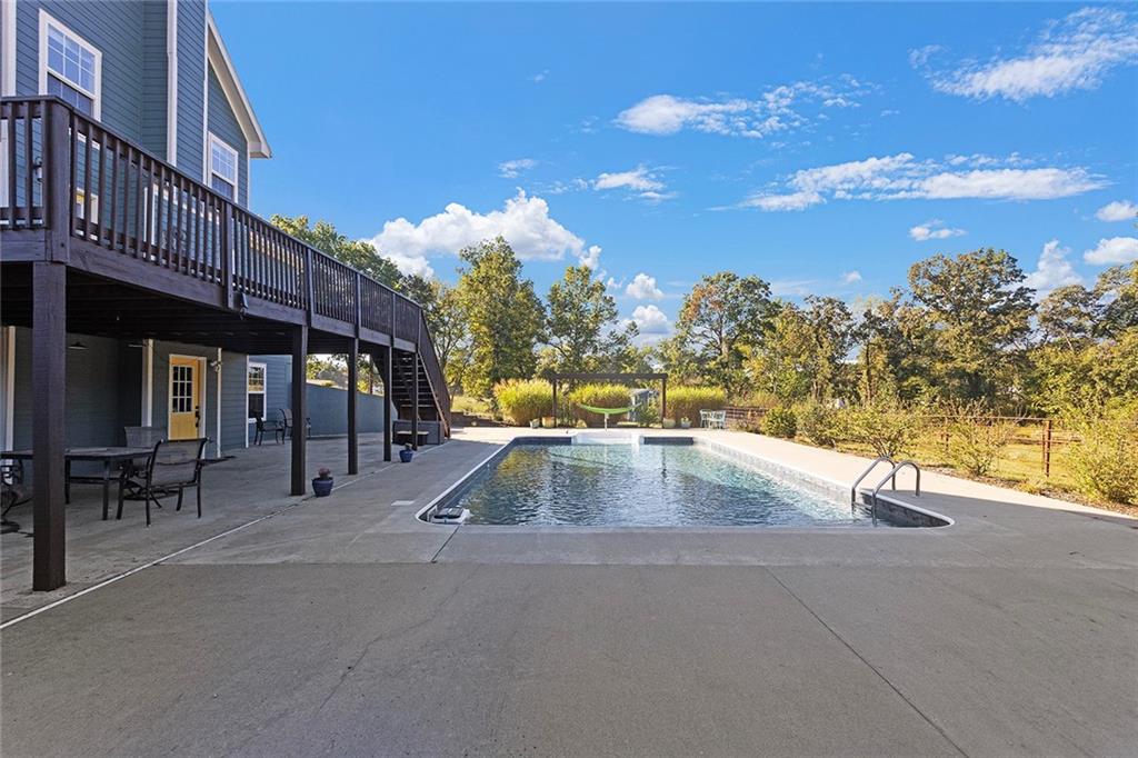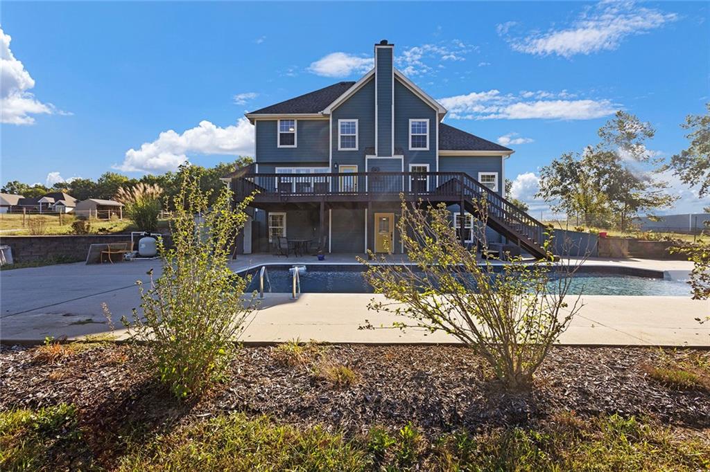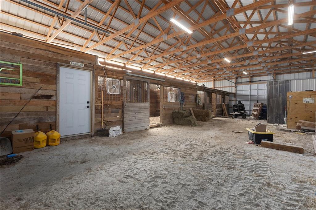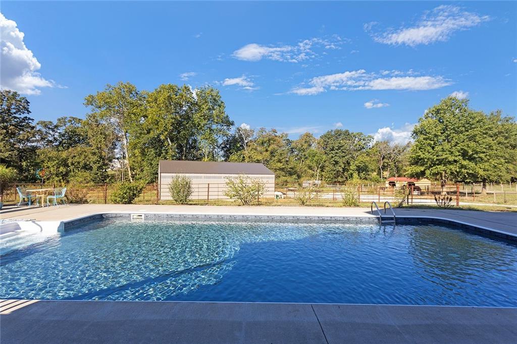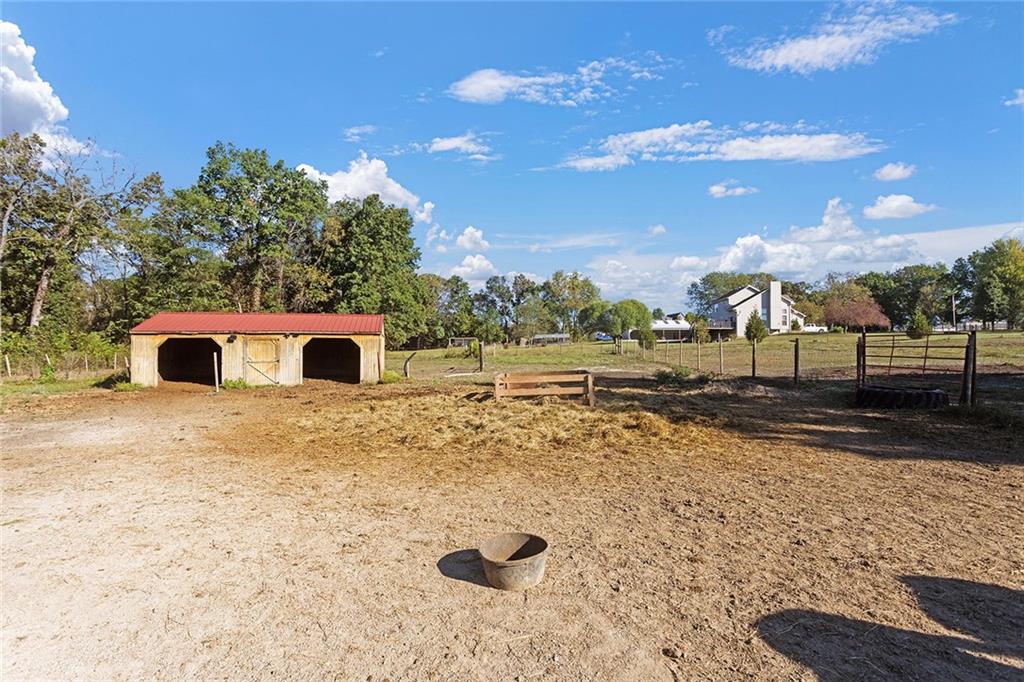 AMAZING custom built home on BEAUTIFUL 10 acres has sooo much to offer. Newly remodeled kitchen with tons of granite countertops, a breakfast bar, loads of custom cabinets (some pull outs & a lazy susan), 3 pantries, newer high-end appliances & more. Breathtaking custom built wood staircase made out of the wood cut from trees on the property. You will love the huge walk-in tiled shower with multiple jets in the newly updated master suite. Newer Life Proof luxury vinyl flooring throughout the main level and upstairs. Bedroom 3 has a large closet & additional attic space was finished for a play room or even more closet space! Lots of newer paint throughout. Finished walk-out basement with brand new nicely finished full bath. 7th BR down does not have an egress window. New roof in 2019. Outside paint in 2021. Oversized garage. Gorgeous 40x20 inground salt water pool with extensive concrete perfect for entertaining. New pool pump in 2024 and new sand filter in 2023. 40x60 Barn built in 2022 with electric, horse stalls, automatic waterers, tack/feed room & more perfect for the horse lovers. Shed & additional outbuildings. Newer fencing to the right of the home. New lagoon dug & new septic in 2022. 1/4 of an acre stocked pond. Only 700 feet of gravel road to the home!
