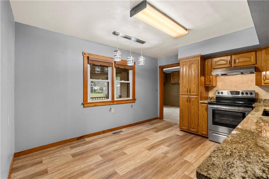 This well-maintained 3-bedroom, 1-bath ranch-style home offers comfort and convenience with 1,160 sq. ft. of living space. Step inside to an inviting eat-in kitchen featuring oak cabinets, granite countertops, stove, dishwasher, and beautiful wooden plantation blinds throughout. The bathroom includes a spacious shower for added ease. Outside, enjoy the fenced yard, carport, detached garage/shop, and a large covered deck—perfect for relaxing or entertaining. Vinyl siding and vinyl windows add to the low-maintenance appeal, while central heat and air keep the home comfortable year-round. Conveniently located near shopping, dining, and business districts, this property is an excellent candidate for FHA, VA, USDA, and conventional financing.
