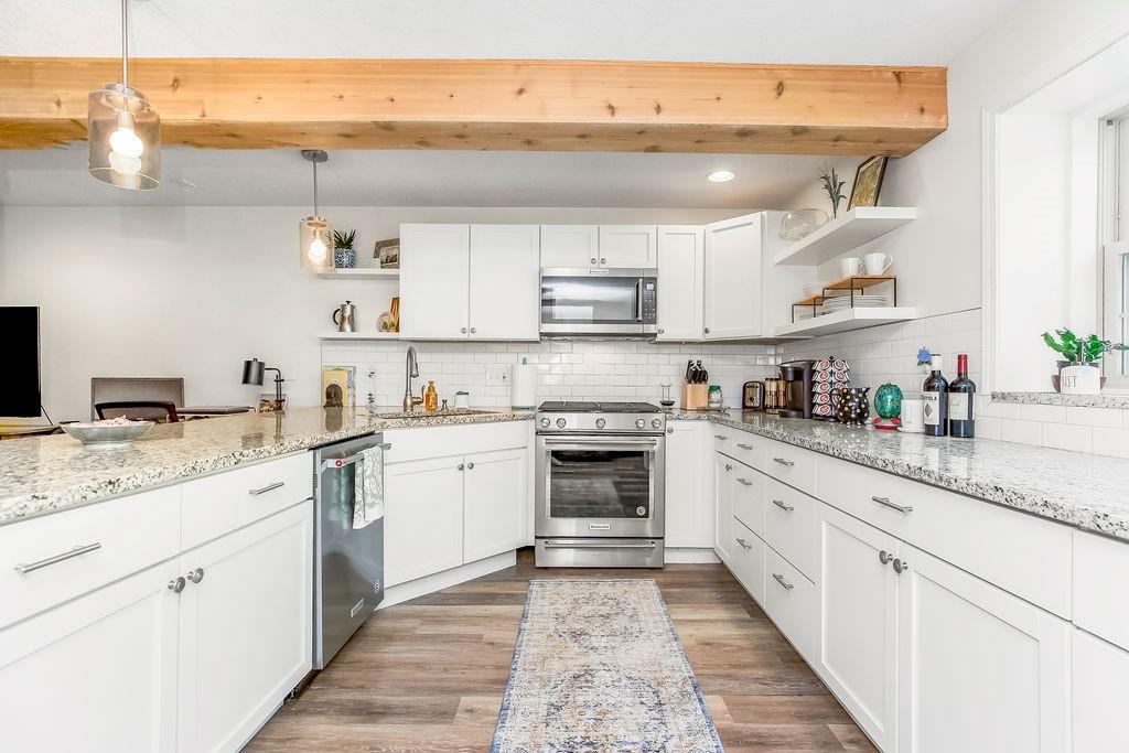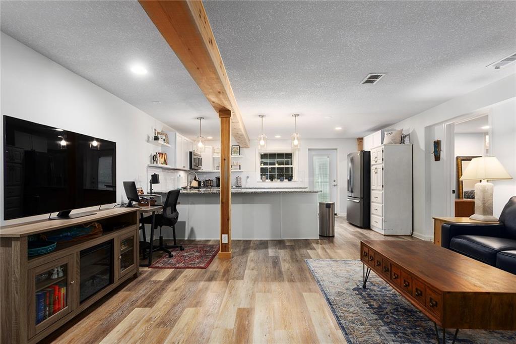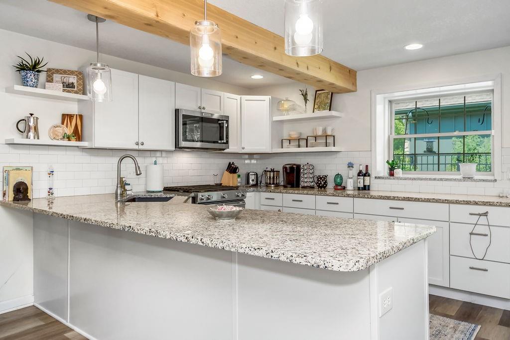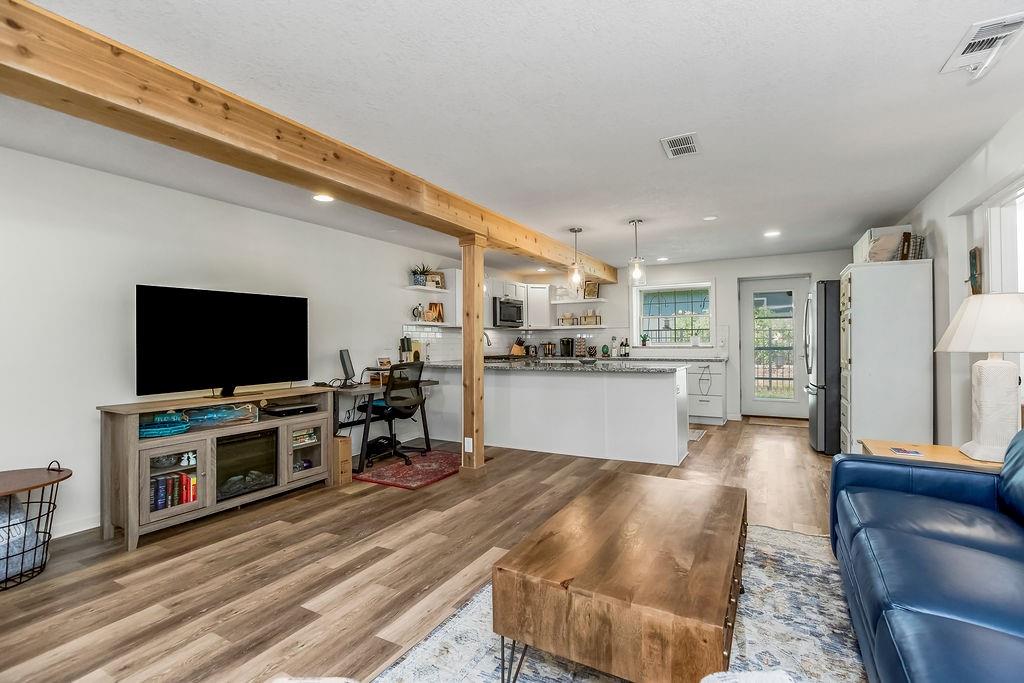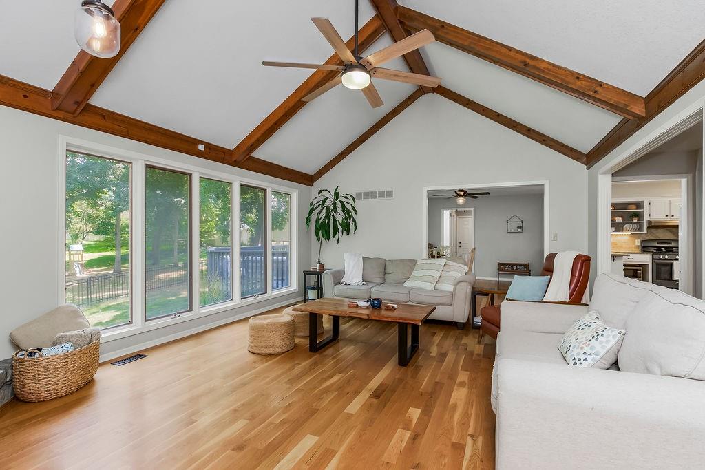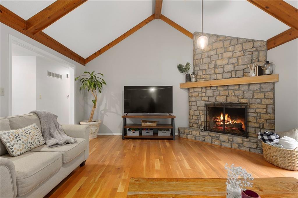 This charming 5-bedroom, 3.5-bathroom home in Lee's Summit offers more than meets the eye—boasting over 4,500 square feet of living space in the highly desirable Blue Springs South school district. Step inside to find beautiful wood floors, vaulted ceilings, granite countertops, and an abundance of natural light throughout. The open-concept main level features a large kitchen, expansive living room with fireplace, and a huge master suite that’s sure to impress. The walk-out lower level is truly like having a second home! Complete with a mother-in-law suite featuring its own full kitchen, living room, bedroom, and bathroom, it also includes a guest bedroom, rec room with wet bar, and a projector-ready movie area—perfect for entertaining family and friends. Outside, this home sits on over a half-acre treed lot with a partially fenced backyard, deck, and a utility shed for extra storage. The circle drive offers plenty of parking, while the thoughtful touches—like a custom dog door leading to a ramped dog house off the laundry room—make it unique and functional for every lifestyle. This home truly has it all: space, updates, character, and a one-of-a-kind layout ready to fit your family’s needs. Don’t miss your chance to make it yours!