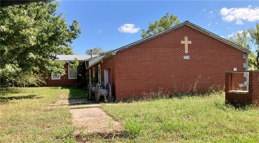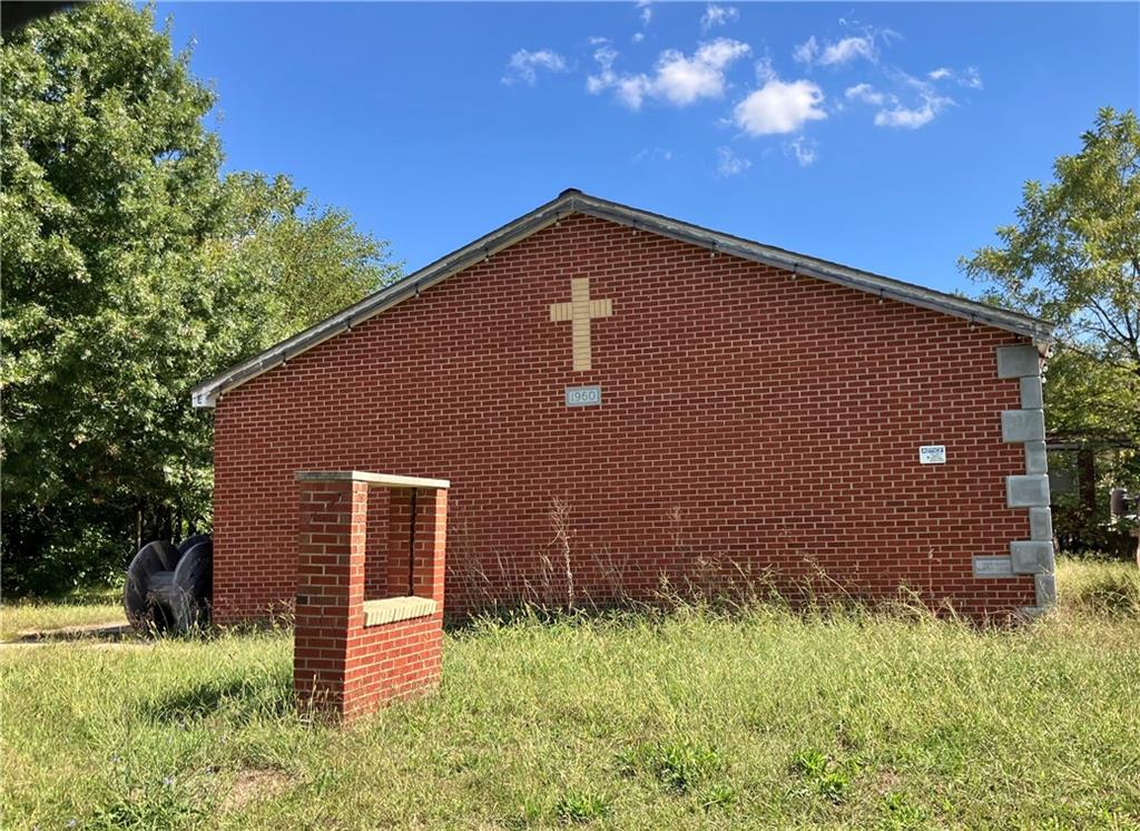 1 ACRE with a Brick Building & Metal Outbuilding, previously was a church & event center, now it's a Storage Facility. Everything church related has been removed except for several stained glass windows. There are THREE levels & two have Garage Doors so you can drive in, park or store large items. Concrete Floors throughout. There are TWO half baths. Do not walk property without permission.