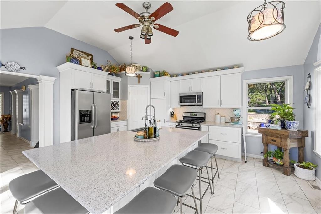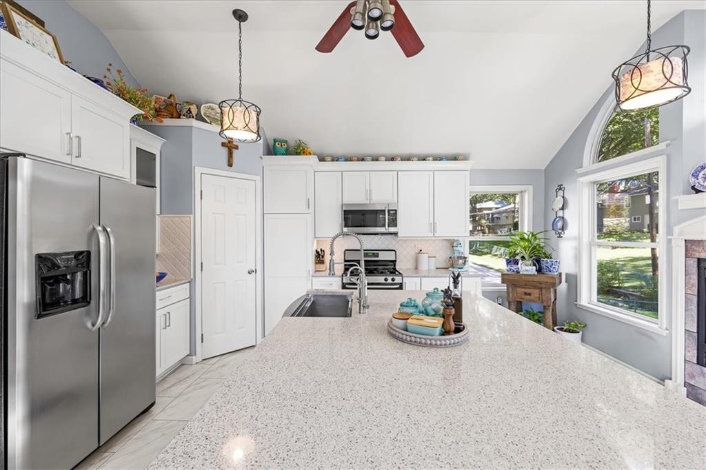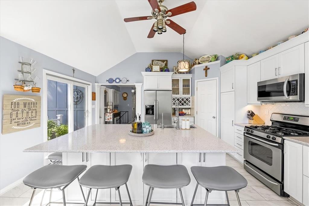 Welcome to Briarford Place! This beautifully updated side-by-side split is truly turnkey with space and features every buyer will love. With 4 bedrooms and 3.5 baths, including two primary suites, everyone can spread out with comfort and privacy. The light-filled kitchen is the heart of the home, complete with a pantry, fireplace, expansive island with storage on both sides, and seating for six. All appliances stay, making move-in a breeze. Hardwood floors flow through the formal living and dining rooms, while the cozy family room features a lined chimney ready for wood-burning fires. The 4th level offers an unexpected primary suite retreat with a separate shower and soaking tub, double vanity, generous closet space, and thoughtful updates throughout, the perfect retreat for busy buyers. Step outside to enjoy the extensive concrete work that expands your living outdoors, from the extended stamped patio to the serene backyard with a playset and surprising bonus storage under the kitchen addition. Three full baths have been thoughtfully updated, and the home’s newer windows, meticulous care, and move-in condition offer peace of mind. All of this in a premier location near schools, parks, shopping, and highway access, making everyday life easy and connected.