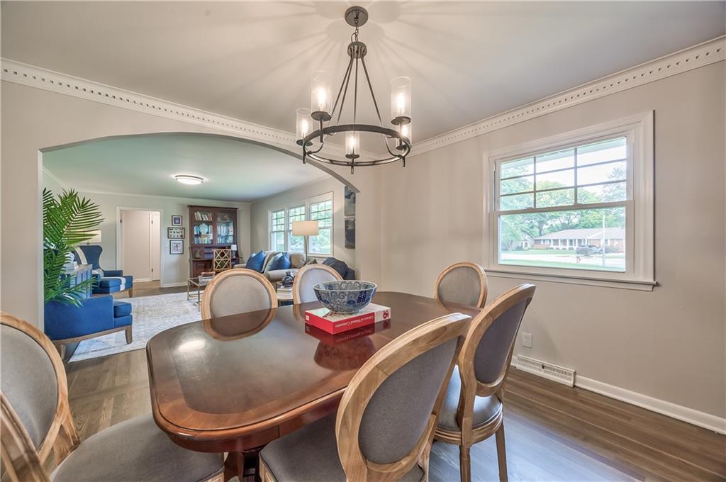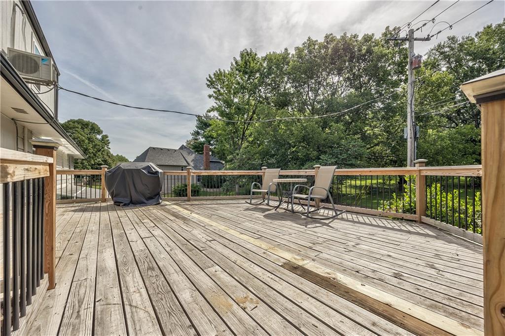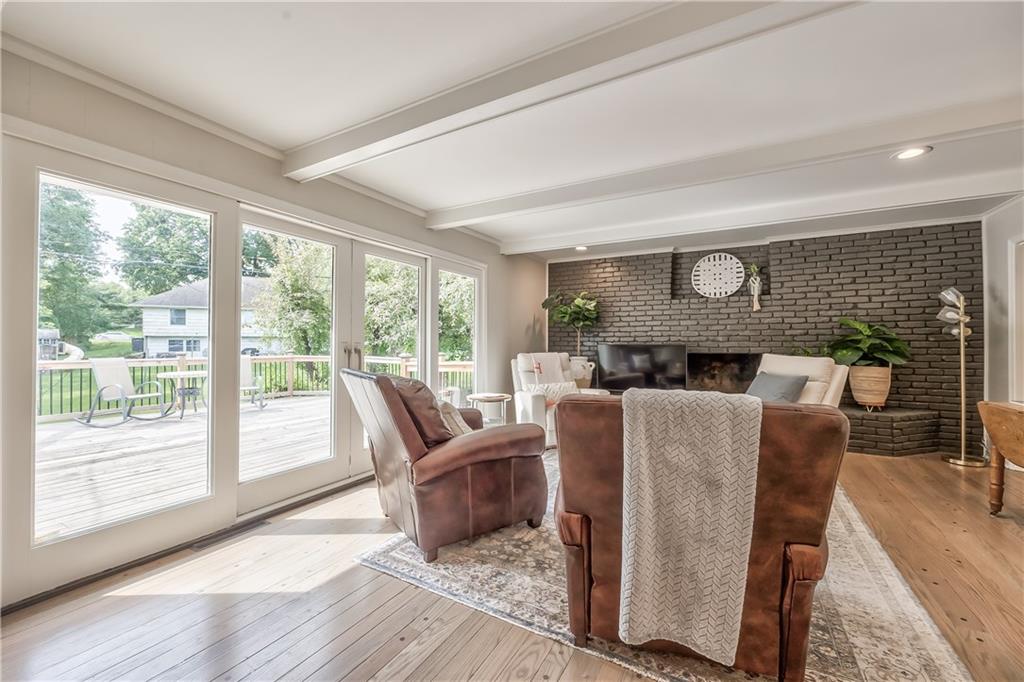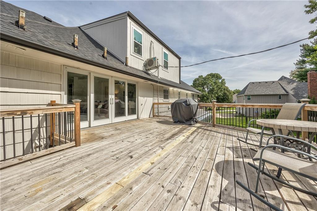 Stunning remodeled 1.5 story home featuring 4 bedrooms, 4 full bathrooms and a finished, walkout lower level. This charming home is situated on a half acre corner lot, near the Blue Hills Country Club and close to all of the best Leawood shopping and restaurants. Bright & open completely remodeled kitchen featuring quartz countertops, composite under mount sink, an abundance of new cabinetry - including pantry cabinets, soft close drawers/doors, stainless steel appliances and tiled floor. The gorgeous kitchen is adjacent to the cozy family room featuring a fireplace and steps out to the large deck and fantastic backyard...perfect for entertaining. Beautiful, refinished hardwood floors in the spacious formal living room, formal dining room, family room & main level bedrooms. This home features 2 primary suites - one on the main level and one on the second level. Both feature private, en-suite bathrooms with double vanities and showers. The second level primary bedroom features double walk-in closets. Huge, finished, walk-out lower level rec room with so many possibilities + additional full bathroom. All bathrooms completely updated with newer cabinetry, quartz countertops and modern tile. The bonus, attached greenhouse and adjacent garden area are waiting for your creativity and ideas. This space would be perfect for keeping plants green all year around. Newer roof and HWH's. This home is the perfect blend of modern living, finishes and comfort!