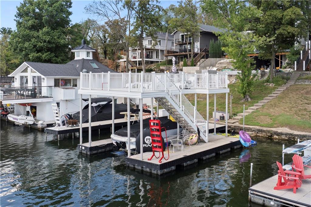 Lovely and welcoming lake home with main body views! This beautifully updated property offers ample living space and stunning lake views. Recent upgrades include new exterior and interior paint, a new dishwasher, new windows, a new roof, new flooring throughout, a new deck, a new double-tier dock with a sunning platform above. The large, open kitchen and dining area overlook the inviting living room with fireplace, perfect for entertaining or endless gazing at the scenic views. The main-level bedroom features an on-suite bath and private deck, while the primary loft bedroom provides additional breathtaking lake views. The generously sized second-level bedrooms are ideal for bunk rooms, perfect for family and friends to visit. The third bedroom has its own private stairway and bath, offering additional privacy for guests. Outside spaces include a spacious upper deck and a large lower-level patio, with easy access to the dock in deep water depth. An outside walkway ensures convenient lake access for guests. Home also features two car attached garage with spacious driveway for overflow and visitor parking. This home is ideal for a primary residence or second home and is move-in ready for lakeside enjoyment all year around!