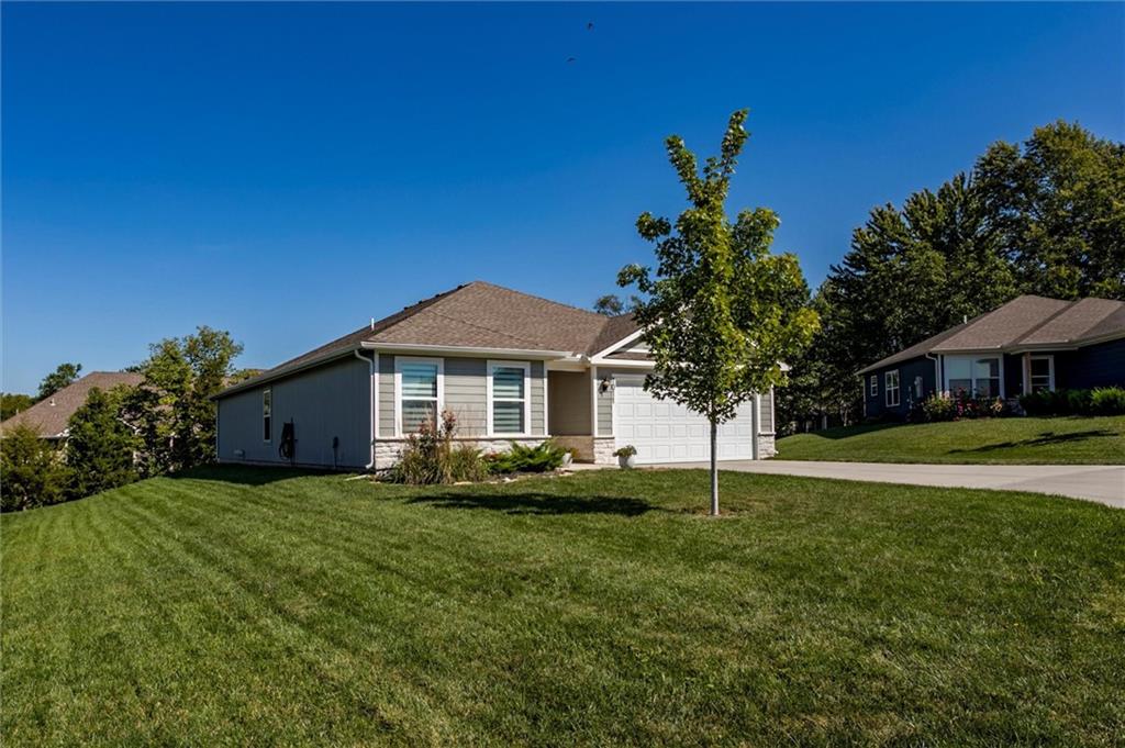 Discover effortless one-level living in this beautifully designed 3-bedroom, 2-bath ranch nestled in a prime Paola location—just minutes from downtown, schools, and shopping. Nearly new and barely lived in, this two-year-old home features an open, light-filled layout that’s both welcoming and functional. The kitchen offers a large island, generous counter space, and a walk-in pantry—ideal for both daily meals and weekend gatherings. The spacious owner’s suite includes a walk-in closet and a bath with room to add a future vanity or tub. Step outside to the covered porch or extended patio and enjoy peaceful views of the green space, often visited by local wildlife.