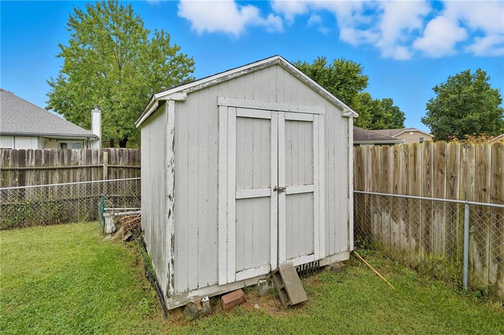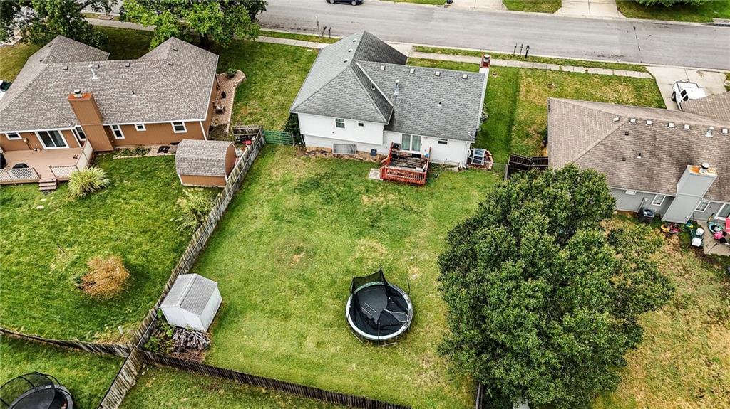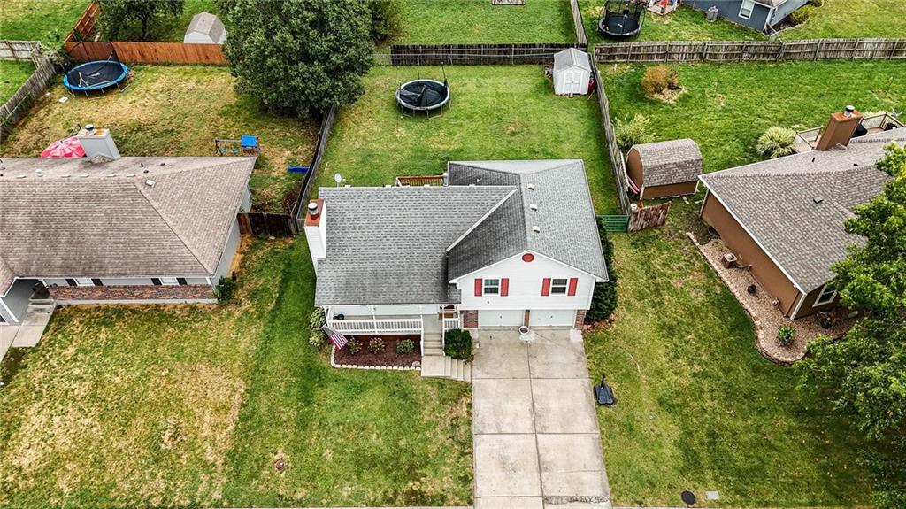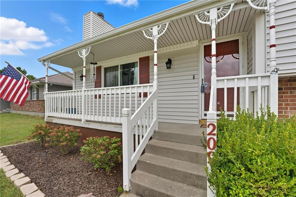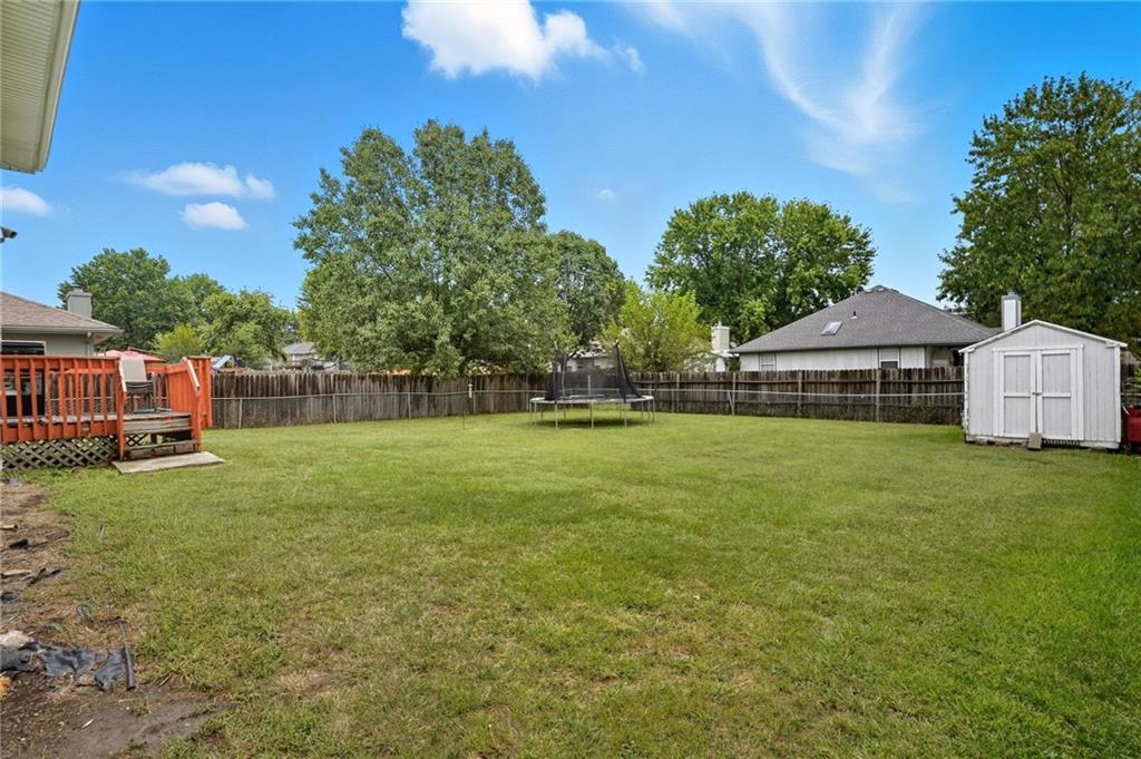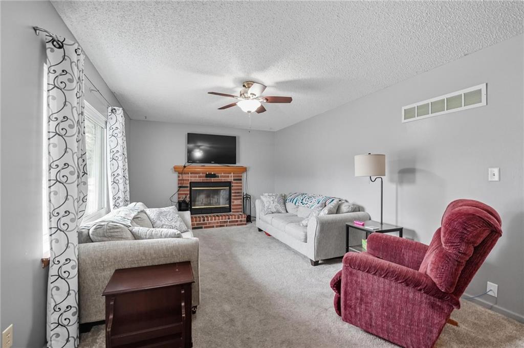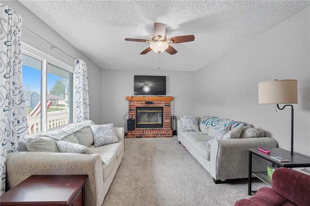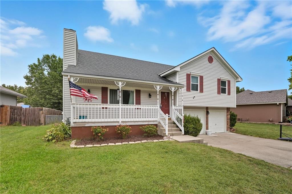 True 4-bedroom home that’s completely move-in ready! Step inside to an open kitchen with updated countertops and a spacious living room centered around a cozy masonry fireplace. Large master suite with full bath, new carpet and interior paint throughout. Finished basement with private office and 3/4 bath along with added security of a storm shelter. Outside, enjoy a large backyard with a storage shed, low-maintenance siding, and covered front porch. Conveniently located within walking distance to both the elementary and high school, plus direct neighborhood access to the updated Blue Branch Trail—perfect for evening walks without the drive