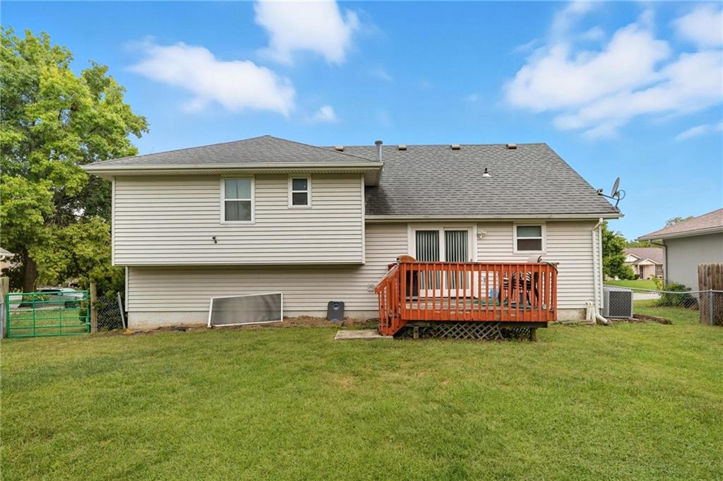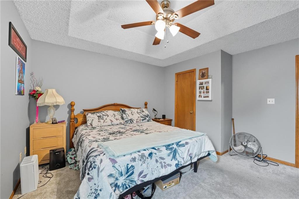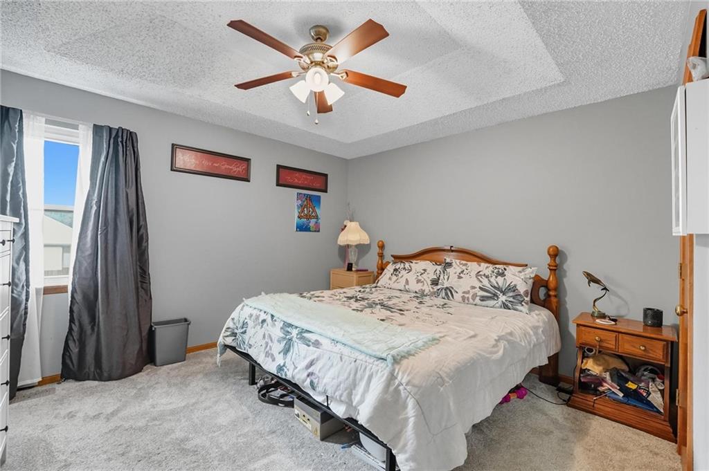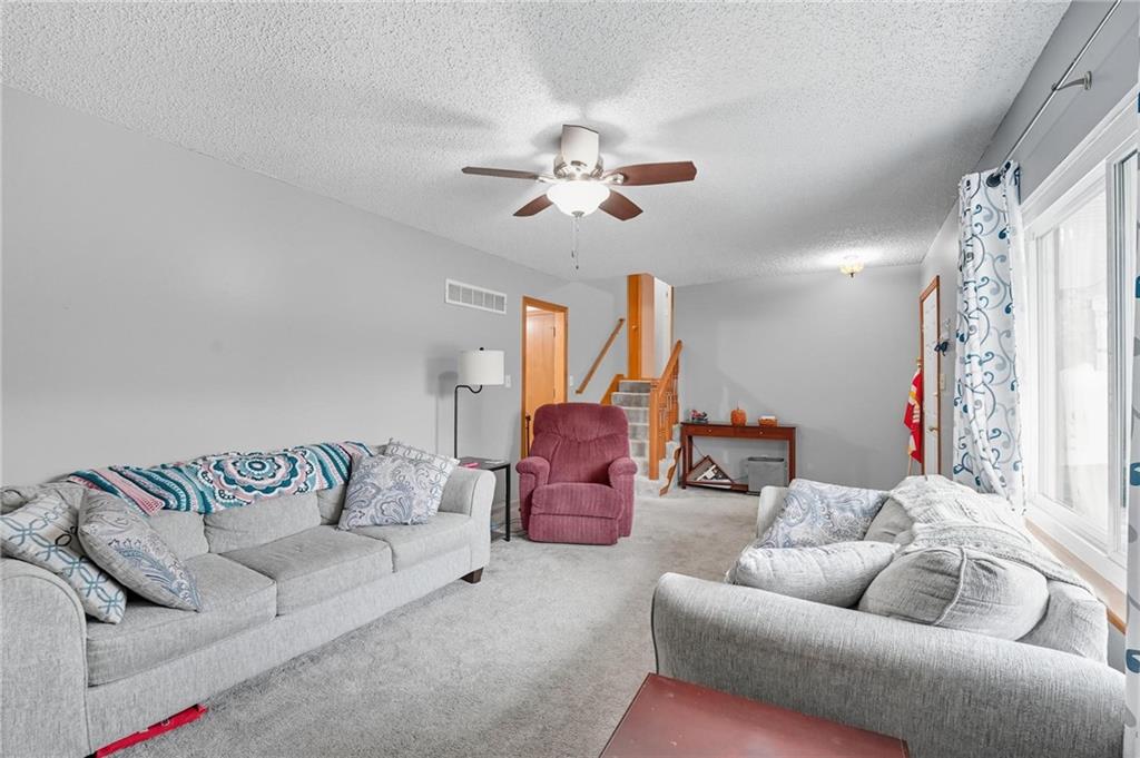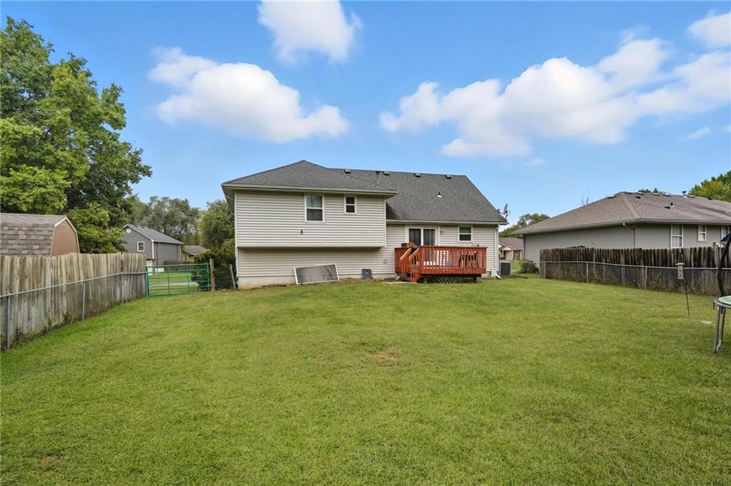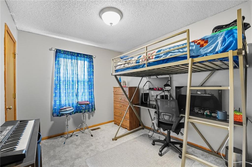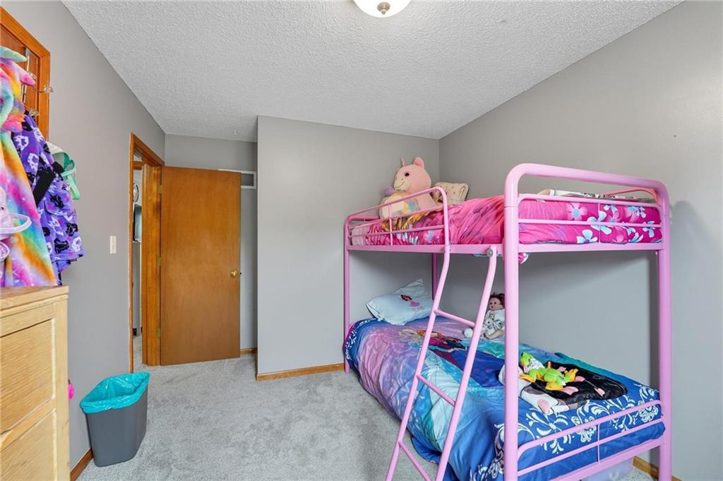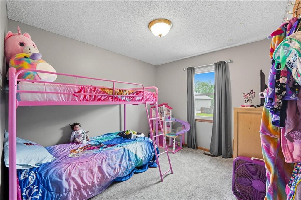 True 4-bedroom home that’s completely move-in ready! Step inside to an open kitchen with updated countertops and a spacious living room centered around a cozy masonry fireplace. Large master suite with full bath, new carpet and interior paint throughout. Finished basement with private office and 3/4 bath along with added security of a storm shelter. Outside, enjoy a large backyard with a storage shed, low-maintenance siding, and covered front porch. Conveniently located within walking distance to both the elementary and high school, plus direct neighborhood access to the updated Blue Branch Trail—perfect for evening walks without the drive