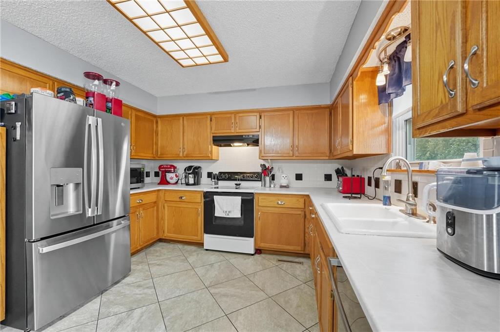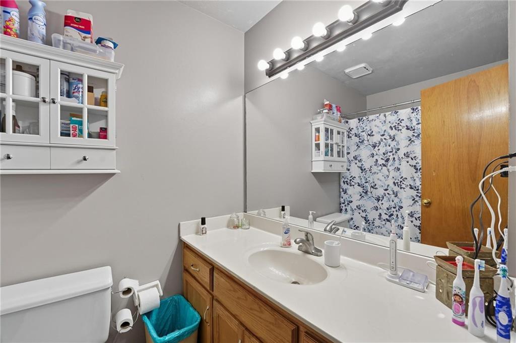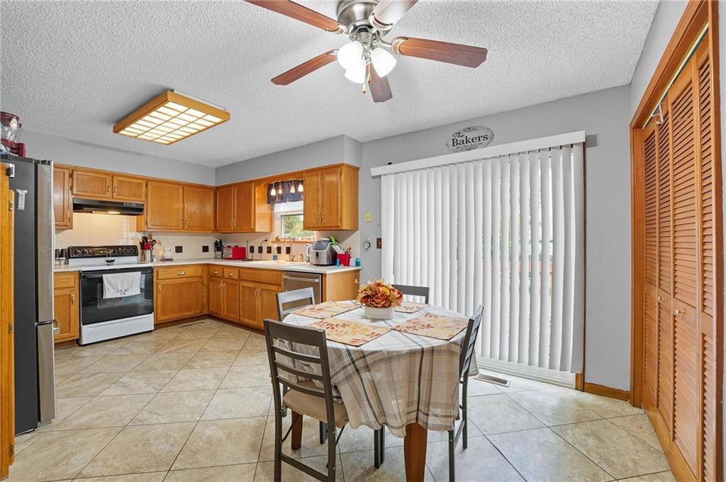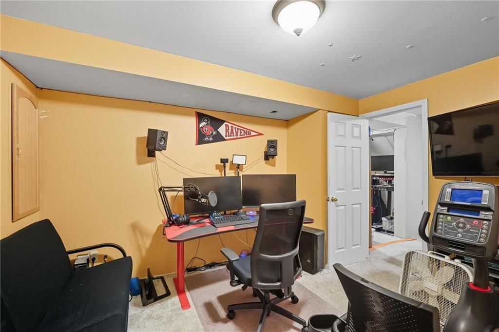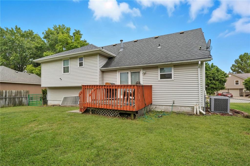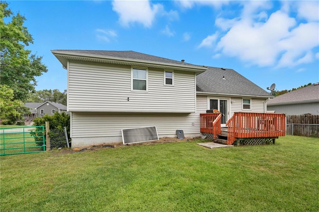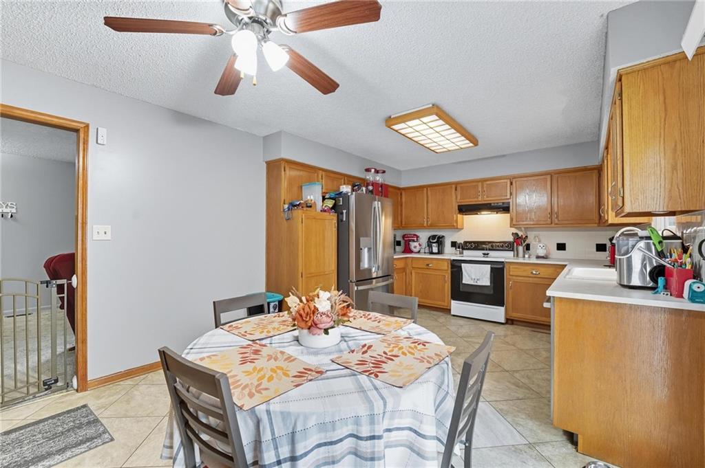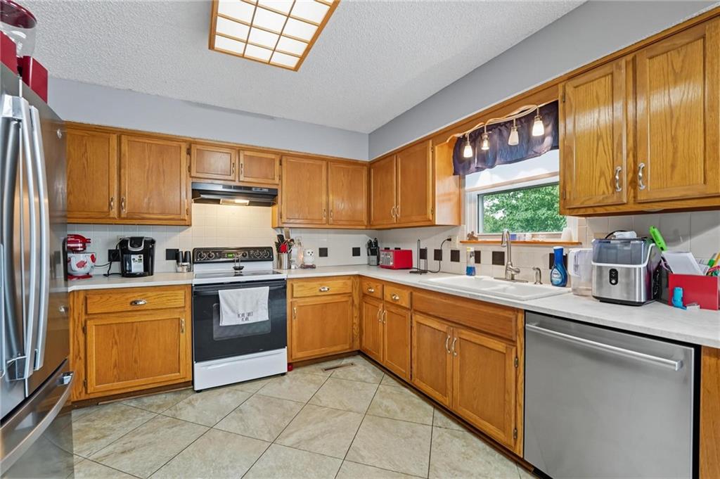 True 4-bedroom home that’s completely move-in ready! Step inside to an open kitchen with updated countertops and a spacious living room centered around a cozy masonry fireplace. Large master suite with full bath, new carpet and interior paint throughout. Finished basement with private office and 3/4 bath along with added security of a storm shelter. Outside, enjoy a large backyard with a storage shed, low-maintenance siding, and covered front porch. Conveniently located within walking distance to both the elementary and high school, plus direct neighborhood access to the updated Blue Branch Trail—perfect for evening walks without the drive