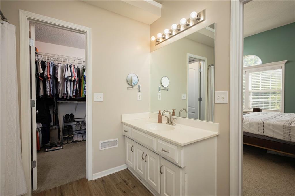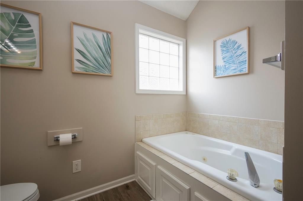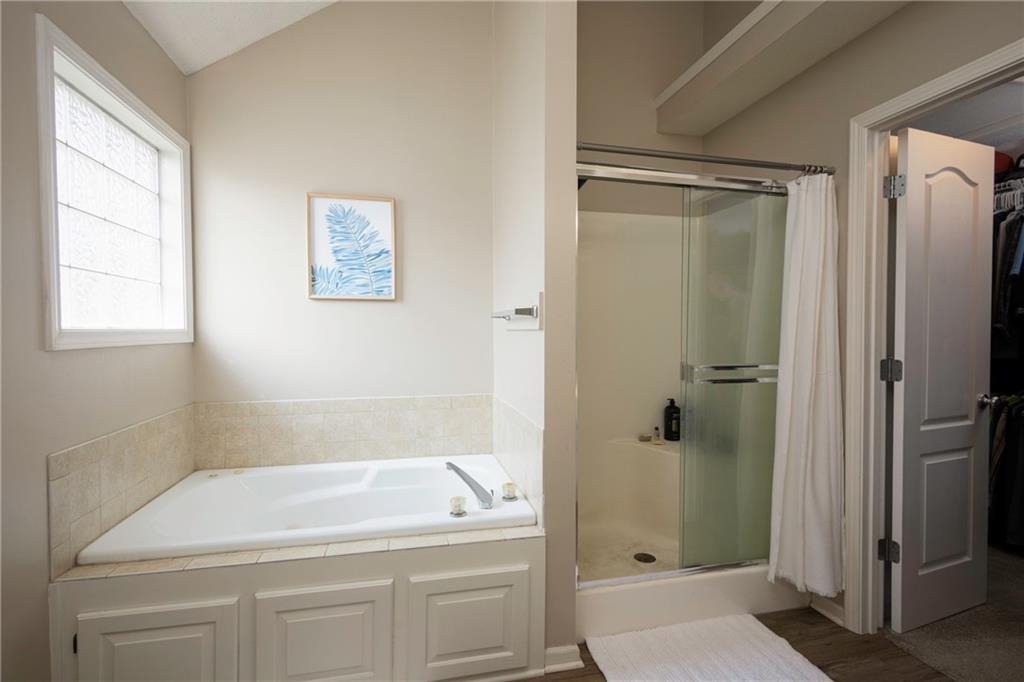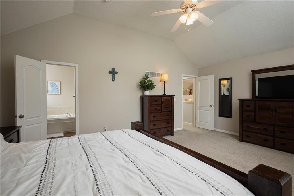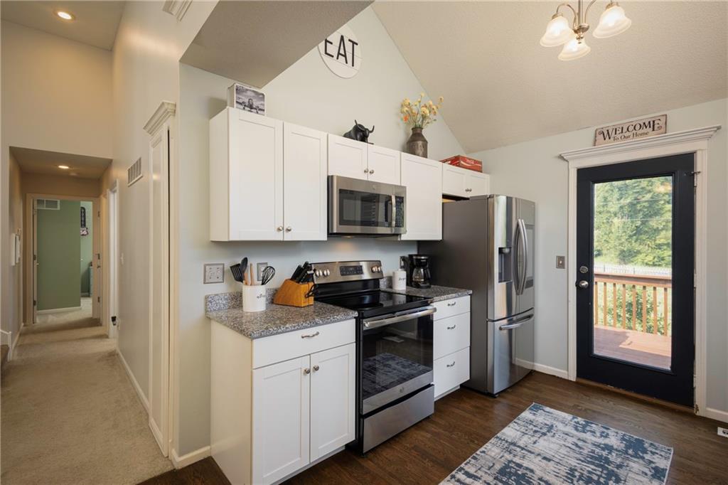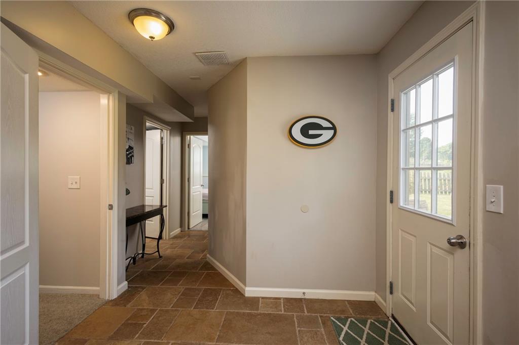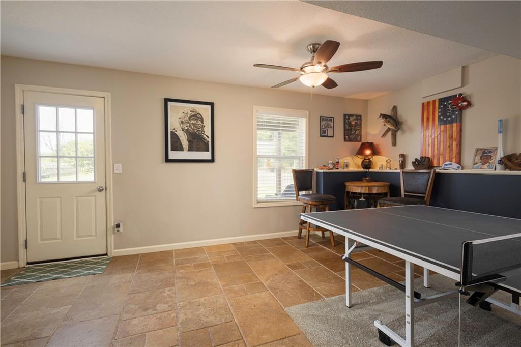 Spacious 4-Bedroom, 3 full bathroom home in the Staley High School Area. Outdoor Oasis & Green Space Views await with this well-maintained Cali-Split. This home is perfectly situated on a generous lot that backs up to peaceful green space. With an additional non-conforming 5th bedroom, this home offers flexible space ideal for a home office, guest room, or hobby area. Step inside to an inviting open-concept living room featuring modern updates that blend comfort and style. The kitchen and dining area showcase elegant hardwood floors, creating a warm and welcoming space for meals and gatherings. The spacious primary suite offers a true retreat, complete with a walk-in closet and a luxurious en-suite bathroom featuring a jetted tub. Outside, enjoy the expansive fenced backyard. Your private haven for entertaining or relaxing. Highlights include a large deck, a generous patio area, an outdoor fireplace, and a horseshoe pit. Perfect for gatherings or quiet evenings under the stars. The attached two-car garage includes additional space ideal for a workshop or extra storage. With a prime location on a quiet lot backing up to green space, you will love the peaceful views and privacy this home provides. Don't miss the opportunity to make this beautifully maintained property your next home!