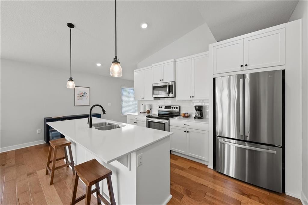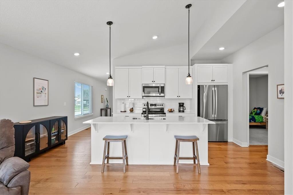 This quintessential and charming reverse 1.5-story home in Southpointe feels practically brand new at only 2 years old! The main floor features an open-concept kitchen, dining area, and living room. The kitchen includes stainless steel appliances, while modern fixtures throughout the home add a fresh, contemporary touch. Two bedrooms and the laundry room are on the main level. A spacious finished basement offers another bedroom plus a versatile non-conforming room (with closet) ideal for an office, guest room, or hobby space. The open area provides plenty of room for movie nights, game days, or relaxing with family and friends. Upgraded thermal windows throughout the home, valued at $12,000, come with a transferrable lifetime warranty for energy efficiency and peace of mind. The sellers also have a 2-10 Home Buyers Warranty in place, which provides coverage for qualified structural defects through 2033 (see attachment in supplements). Outside, a patio and fenced backyard offer great space for pets, grilling, or unwinding outdoors. Lovingly cared for and still like new, this home delivers modern comfort and style. Southpointe residents also enjoy a clubhouse, a beautiful pool, and a play area — fun and relaxation for year round!