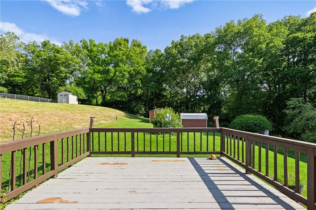 Beautiful split level home in Misty Woods nestled on RARE 1/3 Acre lot! Located in unincorporated Platte County so great for taxes and feeds into the coveted Park Hill School District! Lovingly cared for, this home feels warm and welcoming from the moment you walk in. Beautiful hardwoods throughout with new vinyl windows and freshly painted interior! Stainless steel kitchen appliances and washer/dryer to stay for Buyer's ease. Lower level offers basement recreation room, ample unfinished storage, and deep 2 car garage with new garage doors. Enjoy the great outdoors from your deck overlooking the 1/3 acre backyard which features 2 spacious exterior sheds. Welcome Home!