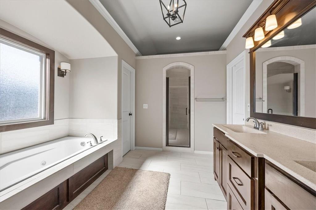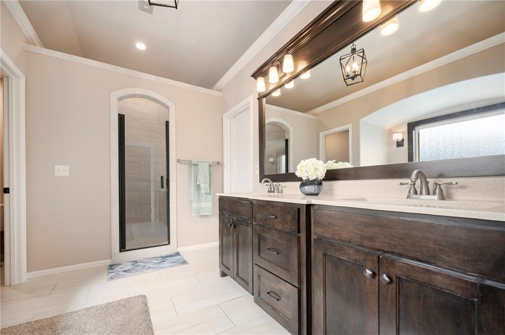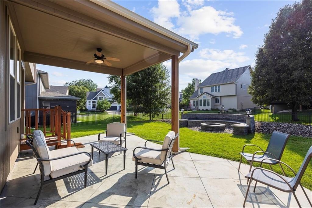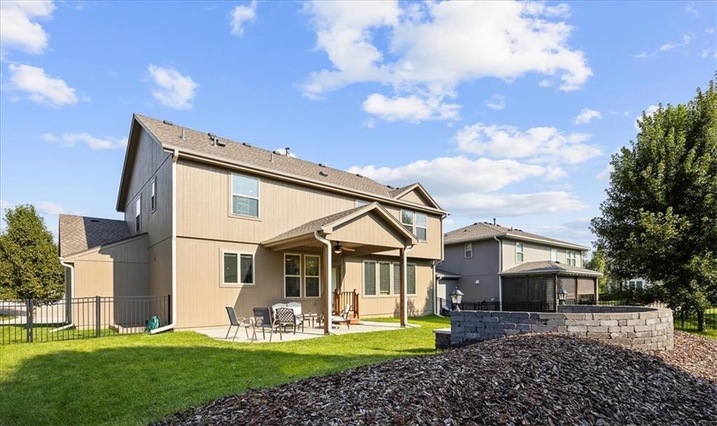 Discover this beautiful home nestled on a picturesque lot in a sought-after neighborhood in West Shawnee! This beautiful, move-in ready home has been meticulously maintained! The covered patio and cozy fire pit is perfect for year-round entertaining. Inside, the home shines with all-new flooring throughout, including hardwood floors in every upper level bedroom, fresh tile in the lower-level living areas, and new carpet in key spaces. The stunning primary suite features a vaulted ceiling, double vanities, spacious walk-in closet and a spa-inspired tiled shower. Freshly updated, the home boasts new interior and exterior paint, a brand-new roof, new air conditioner, and modern touches throughout. This beautiful home is located close to top schools and has neighborhood access to The Clear Creek Trail. Whether you're gathering around the fire pit, relaxing in the luxurious primary suite, or enjoying the spacious layout, this home offers the perfect blend of comfort, style, and function.