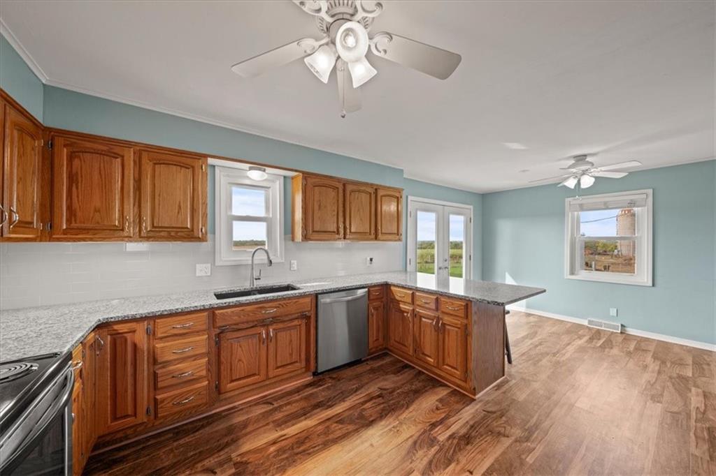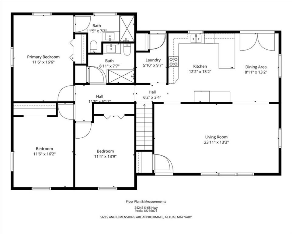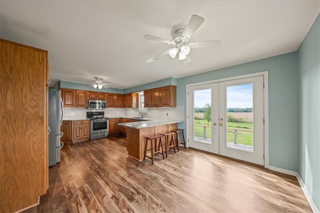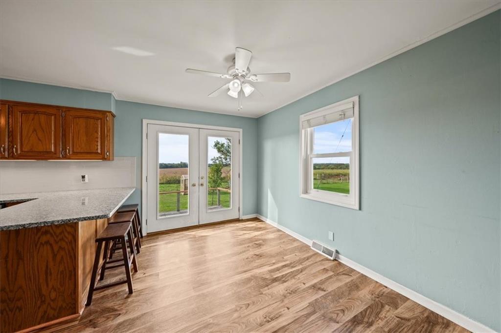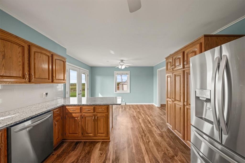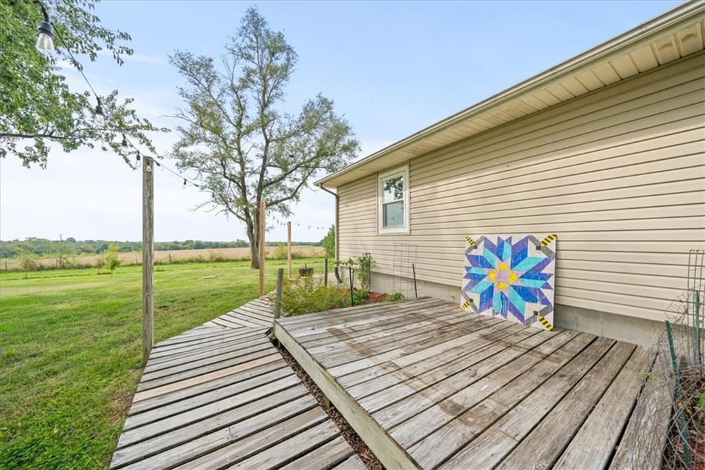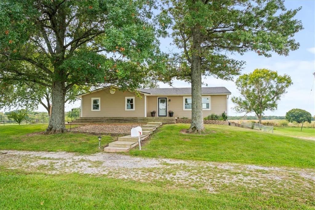Peaceful Country Living Just Minutes from Town – Updated Ranch on 3.3 Acres north of Paola, KS. Paola School District with Free Busing. This property qualifies for the ZERO Down USDA Loan. SELLER OFFERING TO PAY BUYER'S CLOSING COST UP TO $5,000. Get into this home for little out of pocket $. If you've been dreaming of relaxed country living with the convenience of nearby town access, this beautifully updated ranch on 3.3+/- acres is the one! Ideally located north of Paola, close to Hillsdale Lake, this move-in ready home offers the perfect blend of modern comfort and rural charm. Outdoor Living at its best w/chicken coop, fenced animal area, garden space, and a small greenhouse shed—ready for your mini-farm or hobby homestead. A spacious wooden front porch and back deck is perfect for morning coffee or evening sunsets. Partially fenced backyard—ideal for kids and pets to roam safely. Circle driveway and side-entry two-car garage offer ample parking. Interior Features & Upgrades: Fresh interior paint throughout, new doors including a fire-rated garage access door and new front doors. Durable LVP flooring, updated kitchen with granite countertops, refinished cabinets, new hardware, and stainless steel appliances (all included). Main-level laundry room with access to the back deck for added convenience. Beautifully renovated bathrooms w/modern vanities, new showers, and updated tile. Full unfinished basement with future potential. Professional foundation repairs have been completed and warranties are transferable. Additional transferable warranties on the new roof installed in 2024, siding and windows. This all-electric home has been lovingly maintained and is truly move-in ready. Whether you're looking for a place to spread out, start a garden, raise a few animals, or just enjoy peaceful surroundings, this property checks all the boxes. Previous inspection report with completed seller repairs is available. 2 Car Garage measures 23x26 with garage door openers.