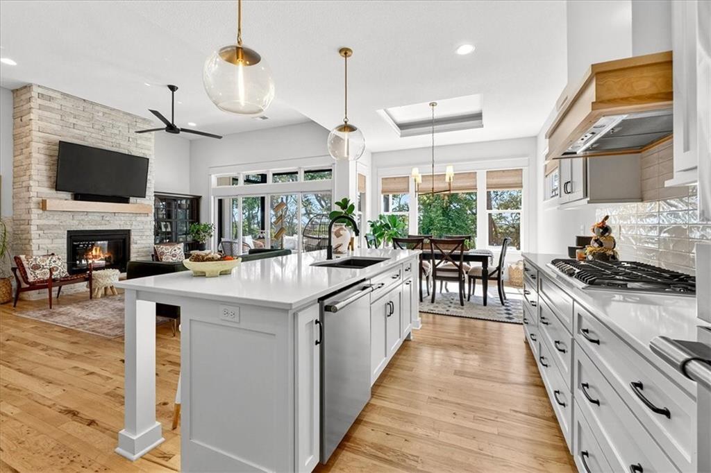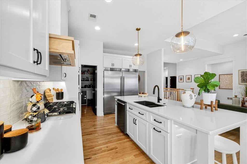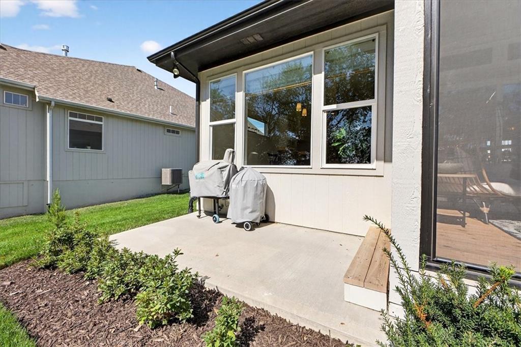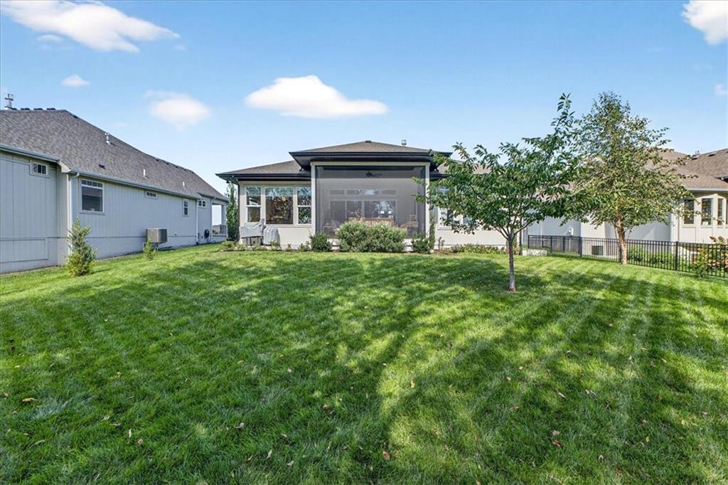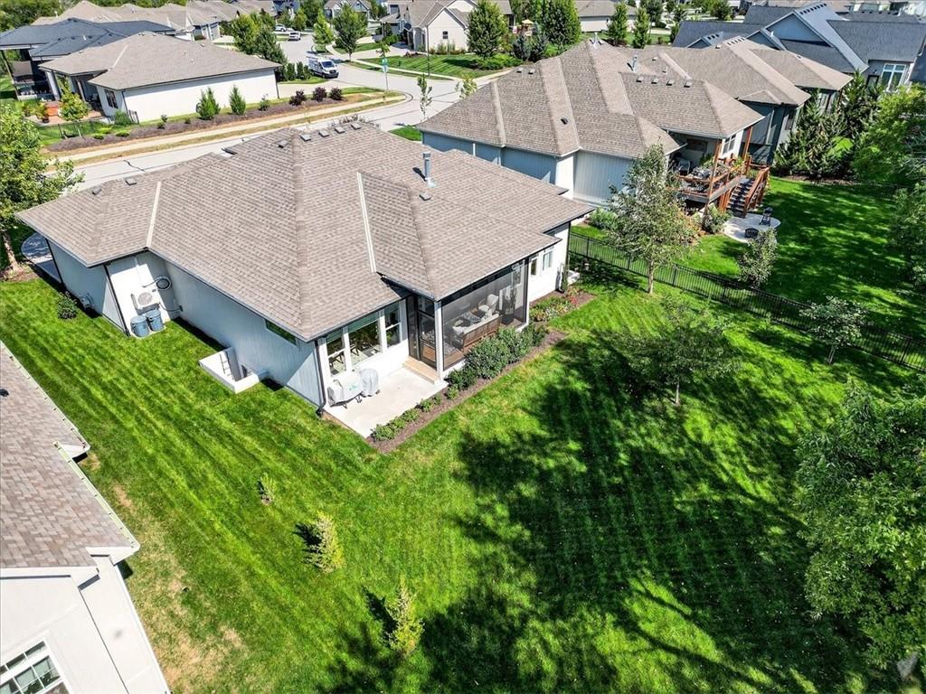 Step into this pristine, move-in-ready home where every detail has been meticulously cared for. This property boasts a spacious and flat wooded backyard that offers the perfect blend of privacy and natural beauty. Enjoy the serenity of the outdoors from the comfort of the screened deck, ideal for year-round entertaining or relaxation. The adjoining patio creates additional outdoor living space, perfect for grilling. Inside, the home is equally impressive, showcasing a thoughtful layout, high-quality finishes, and an abundance of natural light throughout. Gourmet kitchen with stainless appliances, gas cooktop, under counter & island lighting. Built in fridge & freezer. Oversized pantry has door to garage making unloading groceries a breeze. The pantry has plenty of storage, a coffee station and closet. Main level master suite with access to screened in porch. Upgraded bath with large shower including 2 shower heads and a free standing tub. Main level 2nd bedroom with 2 closets can also be used as an office. Convenient laundry room has access to master closet. Basement is a perfect area to entertain and relax with plenty of space and a fireplace. Home has lots of storage! Garage is fully insulated, heated & cooled plus has a shop sink. Christmas light timer. Timer on exterior fountain. Split A/C with damper. Upgrades galore! Easy access to local amenities, including Lake Lenexa and Black Hoof Park, this home is the perfect retreat from the hustle and bustle. Don't miss out on this rare gem—schedule a showing today! *Optional maintenance provided lawn care & snow removal for $165 a month. HOA will let the homeowner decide between maintenance provided or the homeowner takes care of the lawn & snow.