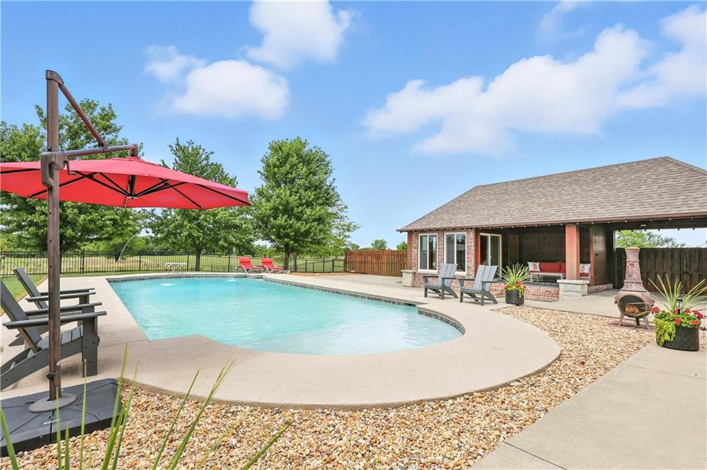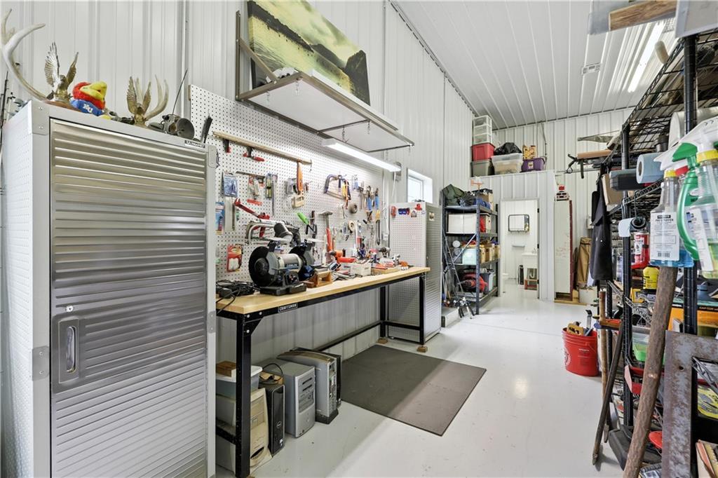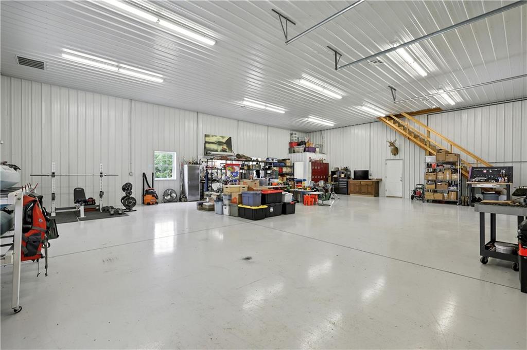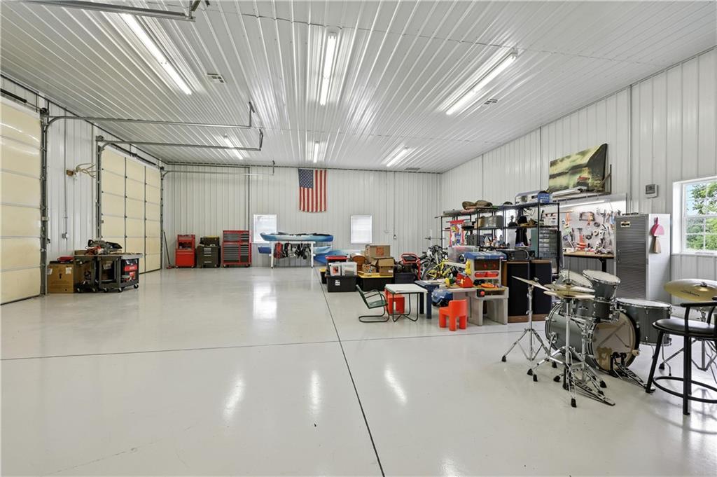 Rare Find! This property offers the perfect blend of convenience and space — located in town yet set on approximately 12.49 lush, green acres with a pool, pool house, and workshop. Inside is just as impressive as the outside, featuring three main-floor bedrooms, plank hardwood floors, a stunning stone wood-burning fireplace, solid wood panel doors, and a spacious kitchen with a granite island and an abundance of cabinetry. The incredible primary suite retreat boasts large windows that overlook your backyard oasis, complete with an in-ground gunite pool and cool decking. Step out onto the covered patio with an automatic awning for easy outdoor relaxation. The pool house includes its own half bath and a cabana area, making it ideal for an outdoor kitchen and entertaining friends. The finished partial basement is the perfect hangout space, offering two additional rooms (no windows), a full bath, and a bonus room. Outdoors, you'll find a fenced lawn area with plenty of room to roam and enjoy the wildlife. The 40' x 80' workshop is a standout, equipped with 12-foot overhead doors, two open bay covers, HVAC, concrete floors, and a half bath.