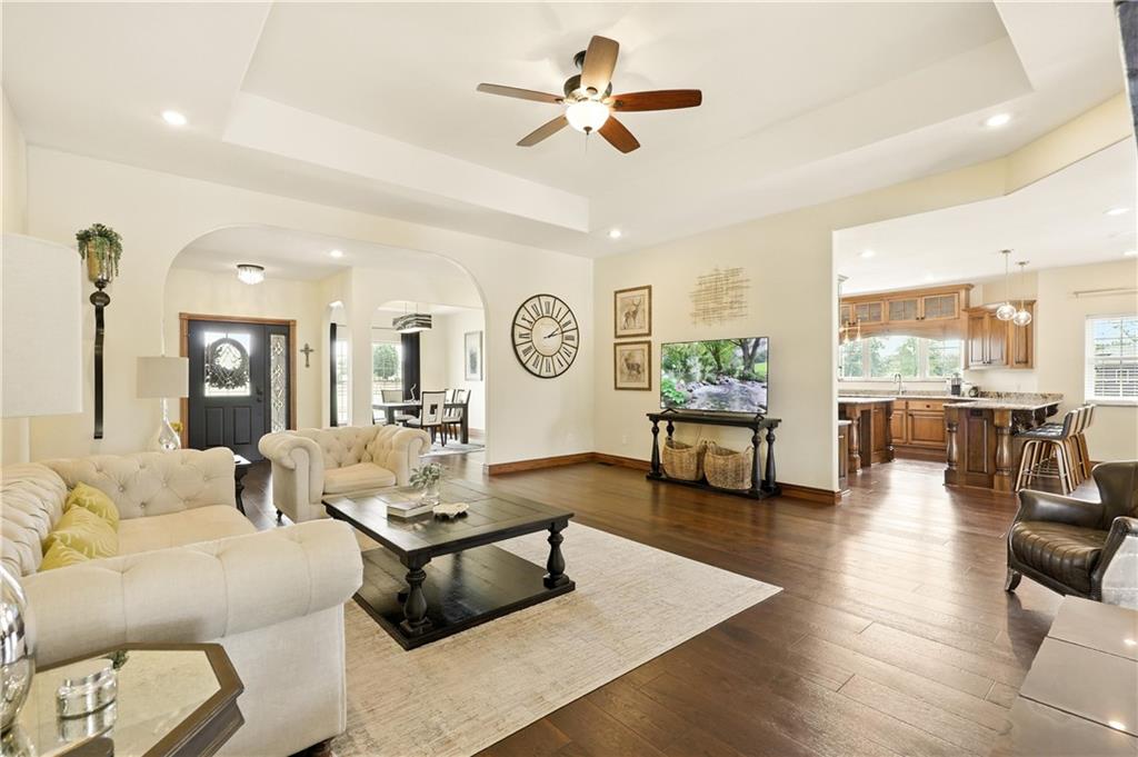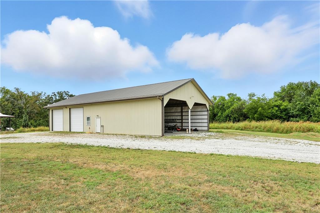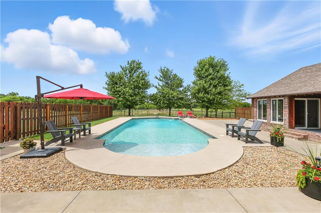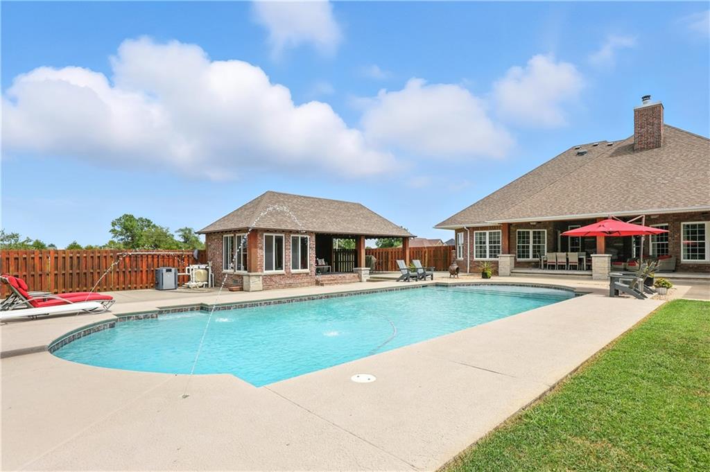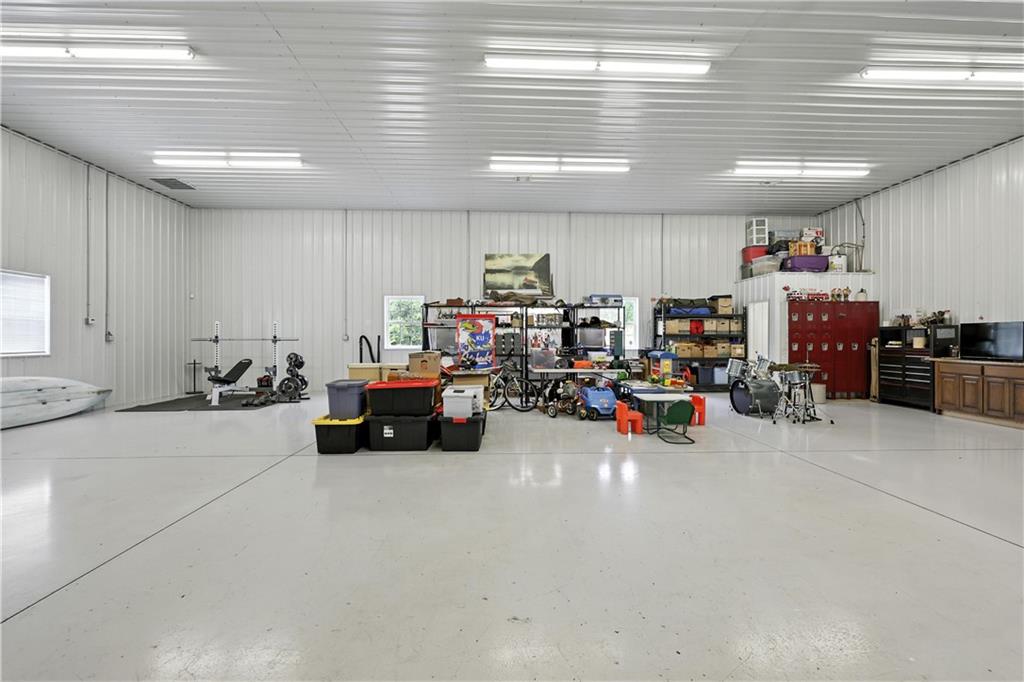 Rare Find! This property offers the perfect blend of convenience and space — located in town yet set on approximately 12.49 lush, green acres with a pool, pool house, and workshop. Inside is just as impressive as the outside, featuring three main-floor bedrooms, plank hardwood floors, a stunning stone wood-burning fireplace, solid wood panel doors, and a spacious kitchen with a granite island and an abundance of cabinetry. The incredible primary suite retreat boasts large windows that overlook your backyard oasis, complete with an in-ground gunite pool and cool decking. Step out onto the covered patio with an automatic awning for easy outdoor relaxation. The pool house includes its own half bath and a cabana area, making it ideal for an outdoor kitchen and entertaining friends. The finished partial basement is the perfect hangout space, offering two additional rooms (no windows), a full bath, and a bonus room. Outdoors, you'll find a fenced lawn area with plenty of room to roam and enjoy the wildlife. The 40' x 80' workshop is a standout, equipped with 12-foot overhead doors, two open bay covers, HVAC, concrete floors, and a half bath.