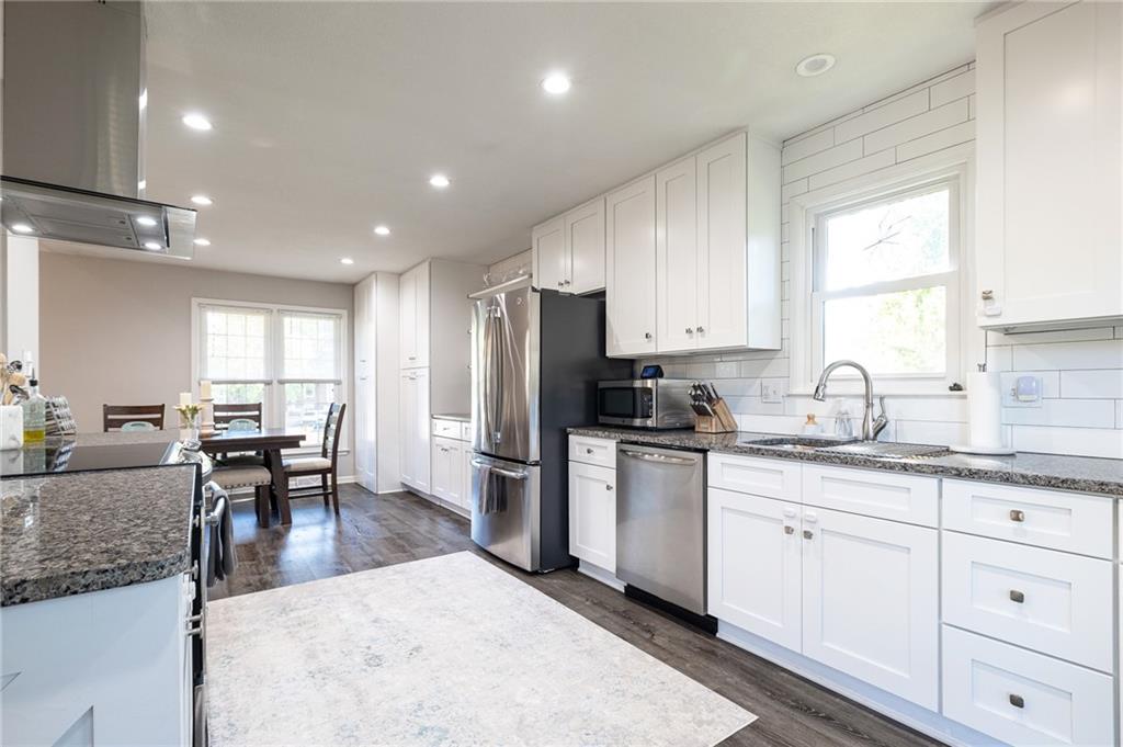 Step inside this beautifully updated raised ranch and fall in love with its open, airy feel! The kitchen is a showstopper with white ceiling height cabinets, a roomy pantry, stainless steel appliances, granite counter tops and a large island ready for family meals or entertaining friends. Cozy up by the fireplace in the family room, complete with fresh carpet. You’ll find 3 comfortable bedrooms and 3 full baths, plus a finished lower level that includes a non-conforming 4th bedroom — perfect for an office, gym, or guest space. The large fenced backyard offers plenty of room to relax or play, all just minutes from highways and shopping.