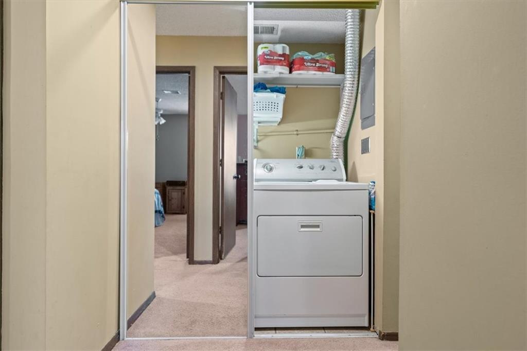 Back on market, no fault of seller, buyer financing fell through. Well maintained two bedroom, one bath townhome featuring a cozy fireplace and inviting family room. The kitchen offers stylish cabinets with a trendy faux brick accent. Generous bedroom sizes, plus a new balcony (2025) and updated siding (2018). Enjoy your morning coffee on the charming deck or take advantage of the spacious garage with extra storage depth. All appliances stay including washer, dryer and refrigerator, for a true move in ready feel. The HOA covers trash pickup, mowing, trees, gutter cleaning, snow removal, building and street maintenance, property insurance, and more-covering everything from the studs out. Prime location with quick highway access, just minutes to shopping and dining. A stylish, low maintenance home with excellent functionality. Property is being sold in its present condition, inspections are welcome.