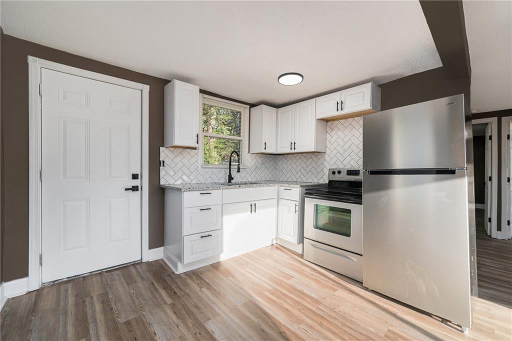 Make this fully renovated, Turn-key home yours! This 2 Bed 1 Bath is all NEW. Includes a HUGE Detached garage for additional storage/parking. Seller will have the garage door replaced prior to closing. Updates include; New Exterior Siding, Fresh exterior painting, All Windows have been replaced, New Trim & Doors throughout, Kitchen Cabinets, Tile backsplash & granite countertops, new bathroom, LVP throughout, New Electrical Panel, new Air Conditioner and much more! Basement offers extra room to add to your square footage, Partially framed & drywalled.