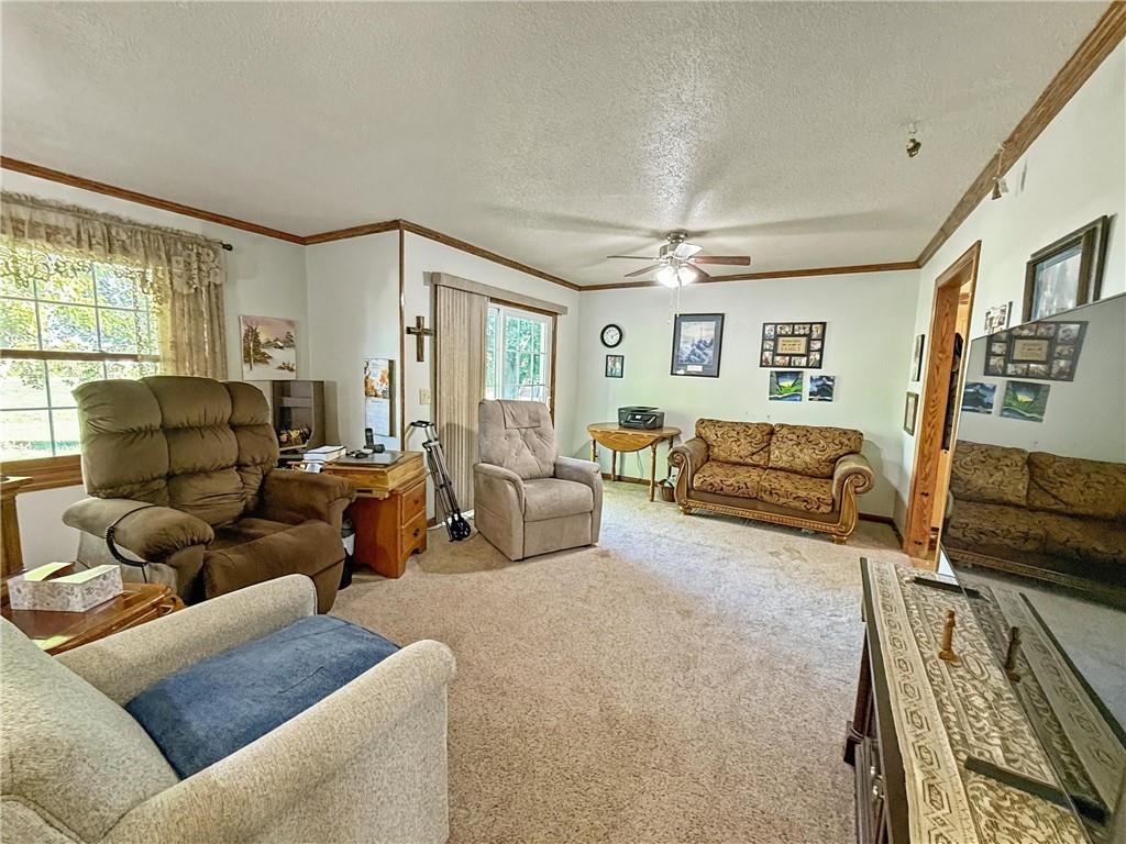Level ranch offering 3 bedrooms, 2.5 baths, and both main floor and basement laundry. Home is equipped with accessibility grab bars. Recent updates include new furnace, A/C, and water heater in 2024, roof in 2023, plus some new floor coverings and windows. Features a walk-out basement, newer back deck, storage shed, and gas fireplace (currently disconnected). Located in the popular Crestview subdivision with a lovely country view out back, close to the high school, shopping, and amenities