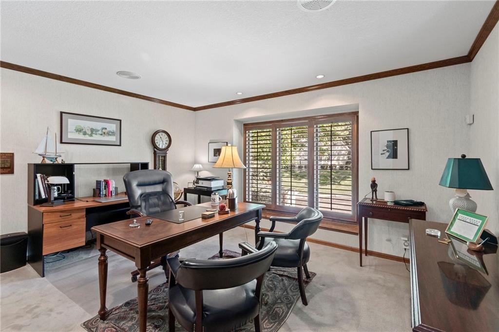 WOW---these don't come along often!! This lovely villa is in the highly sought-after BERKSHIRE subdivision. One of it's most unique features is where its situated on the quiet cule-de-sac--backing up to a private, serene vista of mature trees and lush landscaping. The main level offers the convenience of a luxurious primary suite, complete with a spacious walk-in closet and an elegant en-suite bathroom. Even more—this suite includes a large sitting room filled with windows and direct access to the deck and those tranquil backyard views! This makes it the perfect retreat for a quiet morning start to your day. The main floor has an additional bedroom which is currently configured as a home office but could be easily reimagined as a guestroom. The formal dining room and expansive living room are ideal for gathering family and guests and even includes a rare enclosed bar area for entertaining. The heart of the home is a large, open kitchen that flows seamlessly into a warm and inviting hearth room. From here, step out onto a beautiful, private deck—an ideal setting for outdoor dining or to enjoy birdwatching and nature. The walkout lower level features a large family room, two generously sized bedrooms with their own en-suite bathrooms, and access to a covered patio overlooking manicured gardens, green space, and wooded views. Best of all, this home offers a low-maintenance lifestyle with landscaping, lawn care, and snow removal all included. Luxury, privacy, and ease—welcome to your next chapter.