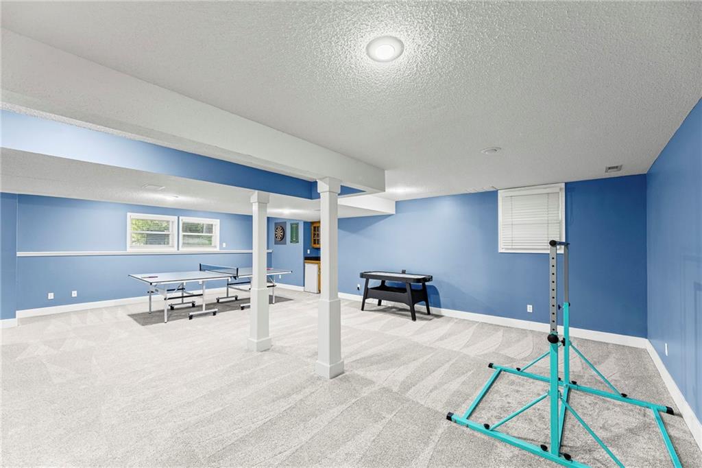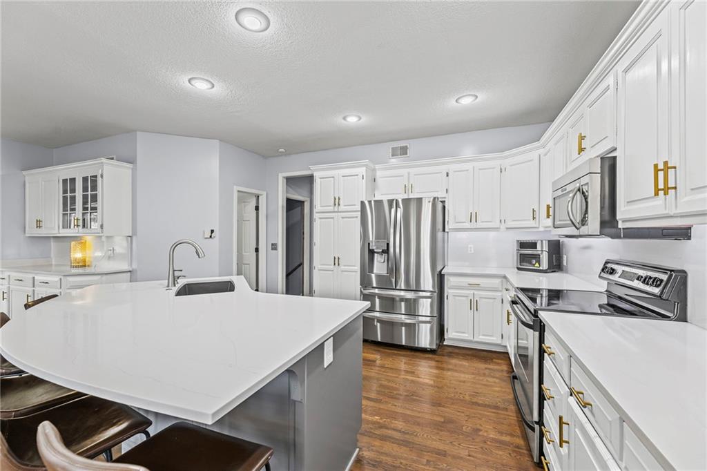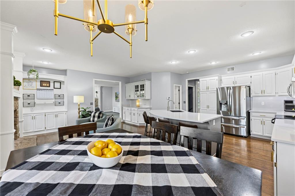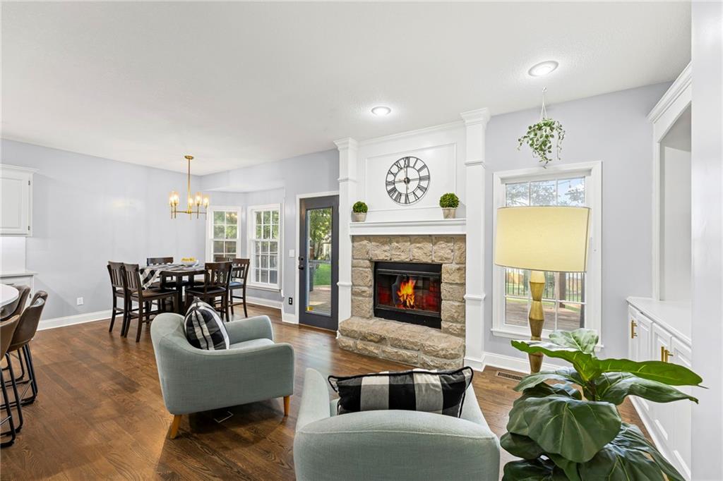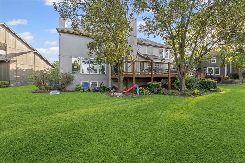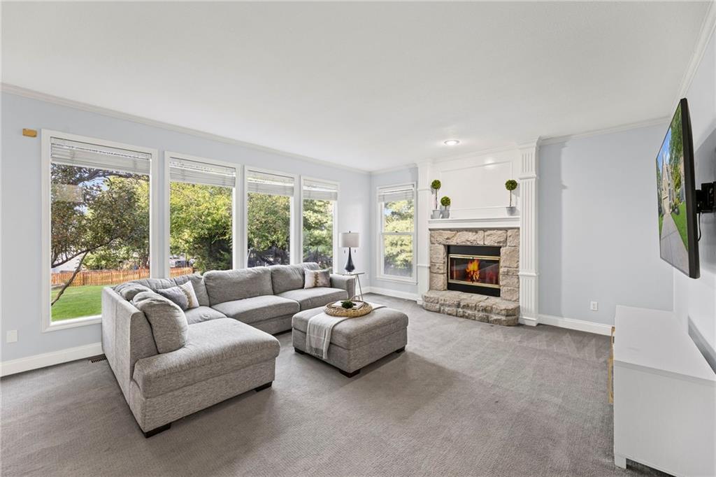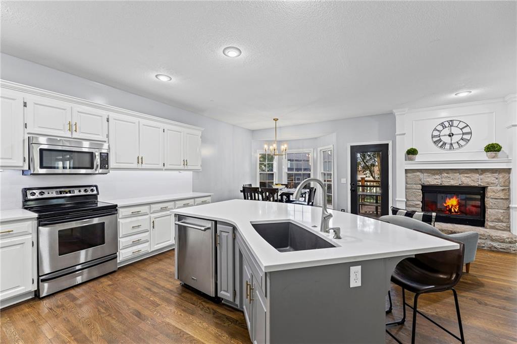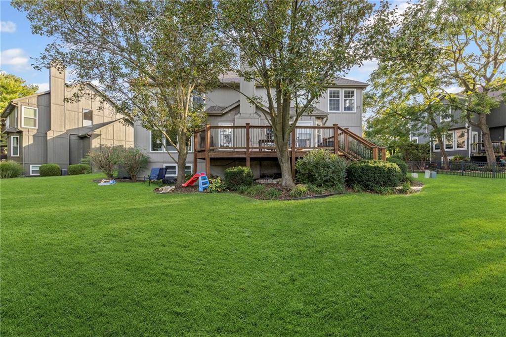 With over 4,200 sq. ft. of living space and numerous recent updates, this home has it all! Located on a quiet cul-de-sac, you’ll enjoy a tandem 3-car garage, new roof, new HVAC, and a huge backyard. Inside, the main floor offers a large private office, a bright and welcoming kitchen with quartz countertops, freshly painted cabinets, and stainless-steel appliances. The kitchen, hearth room, and dining room have all been freshly painted, creating a crisp, modern feel. Gather in the cozy hearth room or the spacious living room, perfect for entertaining or relaxing. Upstairs, the primary suite features a generous sitting area and a beautifully updated bathroom with quartz countertops, newer tile, and a walk-in shower. You’ll also find a convenient second-floor laundry room and three spacious secondary bedrooms, one with an en suite bath and the others connected by a dual-access bathroom. All bathrooms include quartz countertops and freshly painted cabinetry. The finished daylight lower level provides even more room to spread out, featuring a large recreation area, a 5th room ideal as an office or home gym, and a 6th non-conforming bedroom. Step outside to your private backyard oasis with a deck for grilling, dining, and relaxing. Wellington Park is a vibrant community offering a clubhouse, swimming pool, walking trails, and highly rated Blue Valley schools nearby.