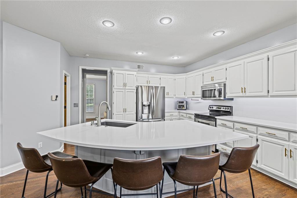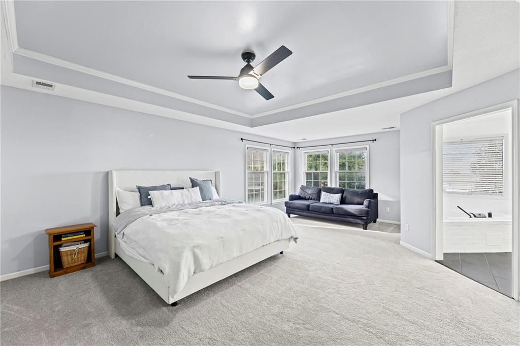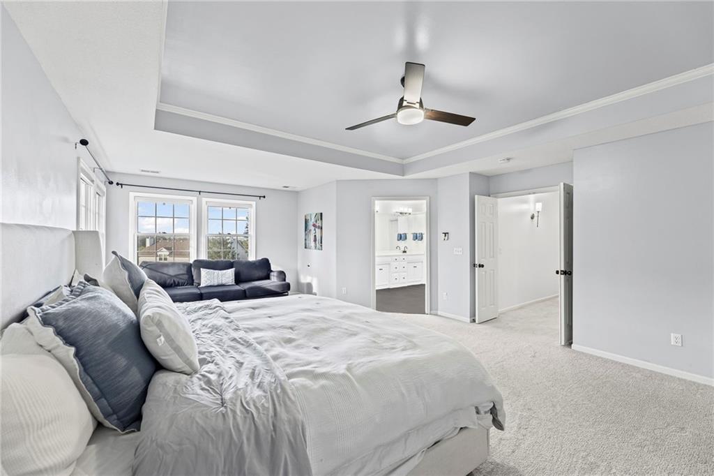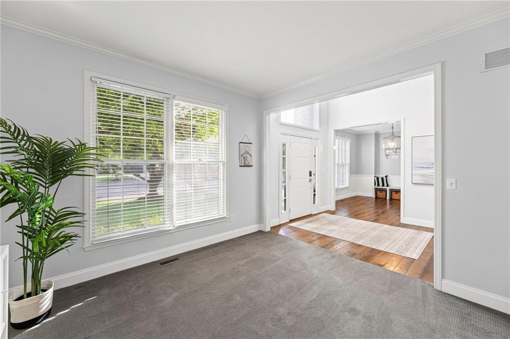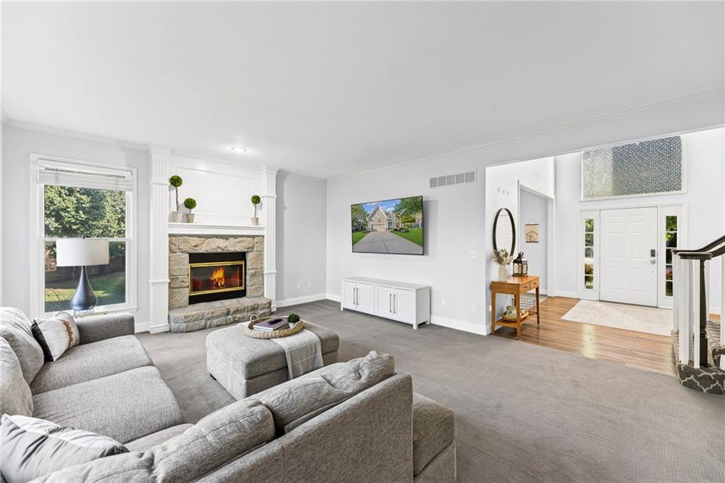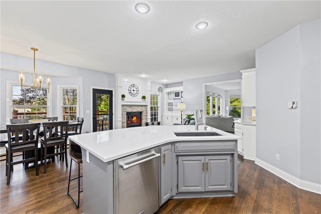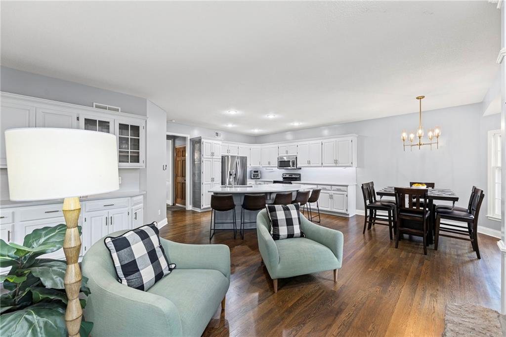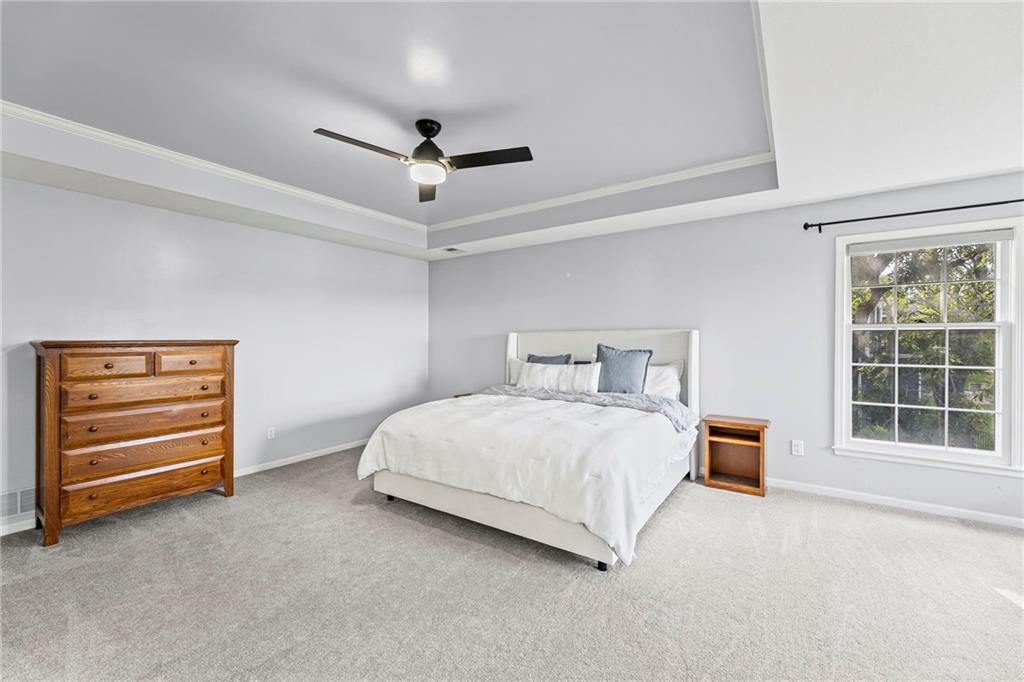 With over 4,200 sq. ft. of living space and numerous recent updates, this home has it all! Located on a quiet cul-de-sac, you’ll enjoy a tandem 3-car garage, new roof, new HVAC, and a huge backyard. Inside, the main floor offers a large private office, a bright and welcoming kitchen with quartz countertops, freshly painted cabinets, and stainless-steel appliances. The kitchen, hearth room, and dining room have all been freshly painted, creating a crisp, modern feel. Gather in the cozy hearth room or the spacious living room, perfect for entertaining or relaxing. Upstairs, the primary suite features a generous sitting area and a beautifully updated bathroom with quartz countertops, newer tile, and a walk-in shower. You’ll also find a convenient second-floor laundry room and three spacious secondary bedrooms, one with an en suite bath and the others connected by a dual-access bathroom. All bathrooms include quartz countertops and freshly painted cabinetry. The finished daylight lower level provides even more room to spread out, featuring a large recreation area, a 5th room ideal as an office or home gym, and a 6th non-conforming bedroom. Step outside to your private backyard oasis with a deck for grilling, dining, and relaxing. Wellington Park is a vibrant community offering a clubhouse, swimming pool, walking trails, and highly rated Blue Valley schools nearby.
