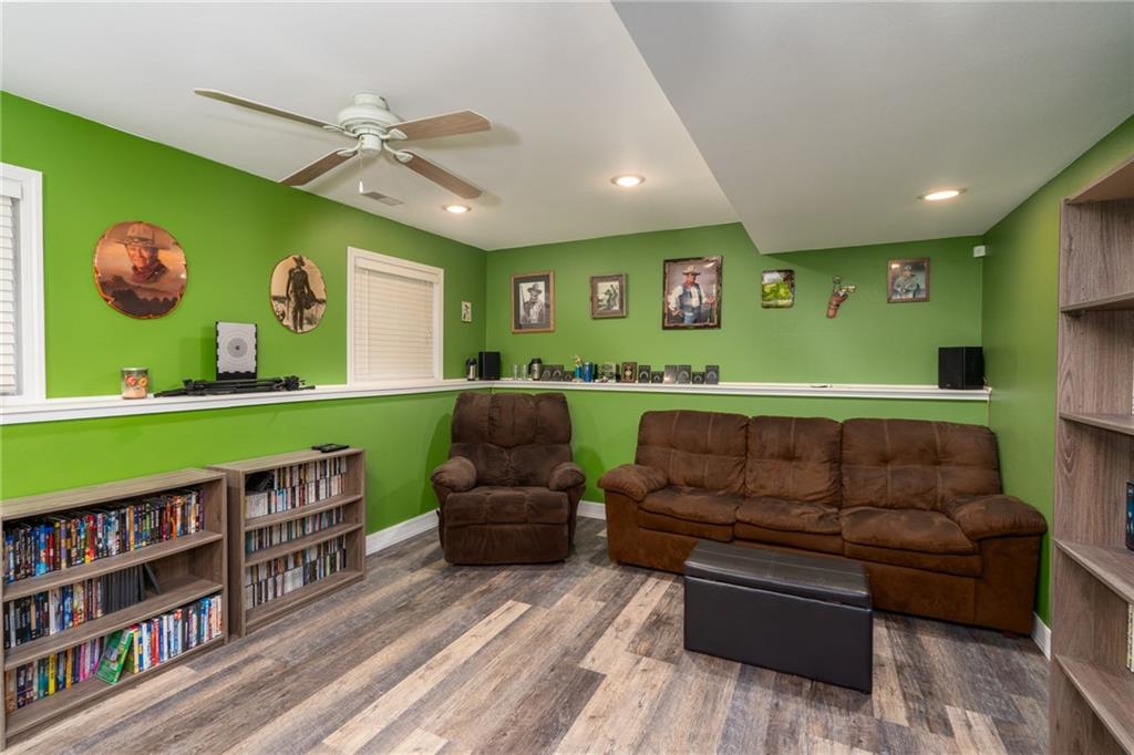 This Baldwin City location offers wide sidewalks, tree-lined streets, and quick access to Baker University's athletic fields. Step inside and you'll find a home with space to spread out. Upstairs, the living room centers around a wood-burning fireplace, while the lower level offers a second gathering space for games, movies, or hobbies. The oversized garage has room for both parking and storage, and one side is extra deep to handle larger items. Downstairs, an unfinished workspace adds flexibility for projects or storage. Mature trees frame the property, adding shade and privacy. The home is being sold as-is, and with a $5,000 credit at closing, it's a great opportunity to make the updates you'd like and enjoy a well-loved Baldwin City neighborhood.