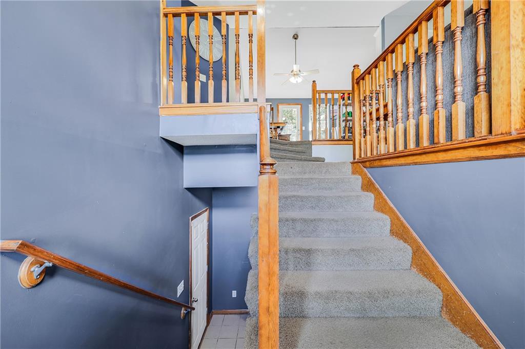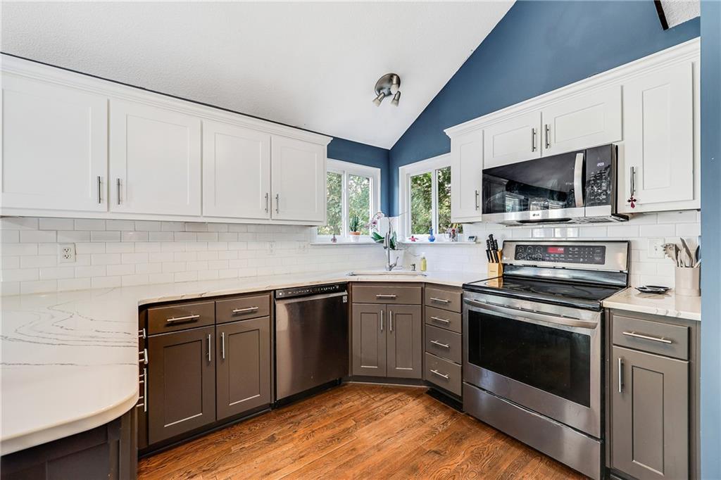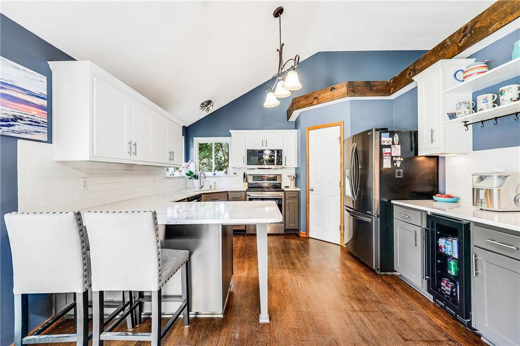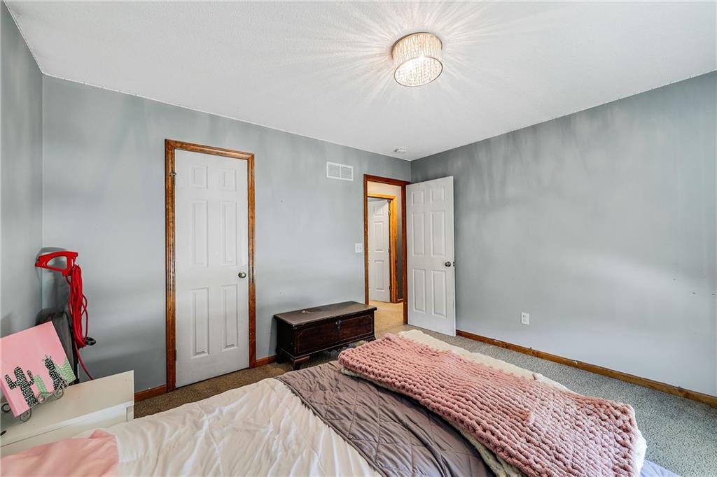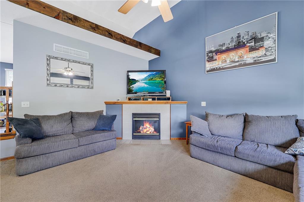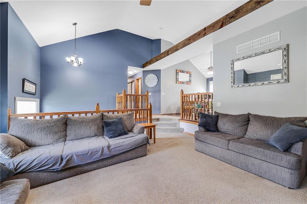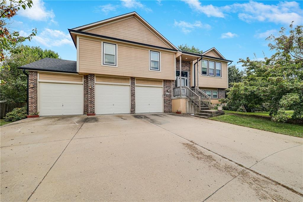 ** Seller is having the back deck removed and replaced prior to closing as well as replacing ALL carpet** Welcome home to this spacious split-level beauty offering 4 bedrooms, 2 full baths and a half bath in the basement, a rare 3-car garage—all set on a quiet cul-de-sac street with mature trees. From the inviting brick trim façade to the oversized driveway and welcoming front porch, this property blends curb appeal with everyday convenience. Step inside to an airy living room with vaulted ceilings and a cozy corner fireplace. Natural light pours in, creating a perfect gathering spot for relaxing evenings. The open layout flows seamlessly to the fully updated kitchen, featuring striking two-tone cabinetry, quartz countertops, subway tile backsplash, stainless appliances, and a generous center island with breakfast bar seating. The private primary suite is a true retreat, boasting a tray ceiling, abundant natural light, and a spa-like ensuite bath with dual sinks, granite countertops, and a custom-tiled walk-in shower. Two additional main-level bedrooms share a full bath with cheerful finishes. On the lower level, a fourth bedroom and another half bath provide flexible space for guests, teens, or a home office.
