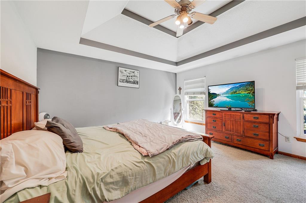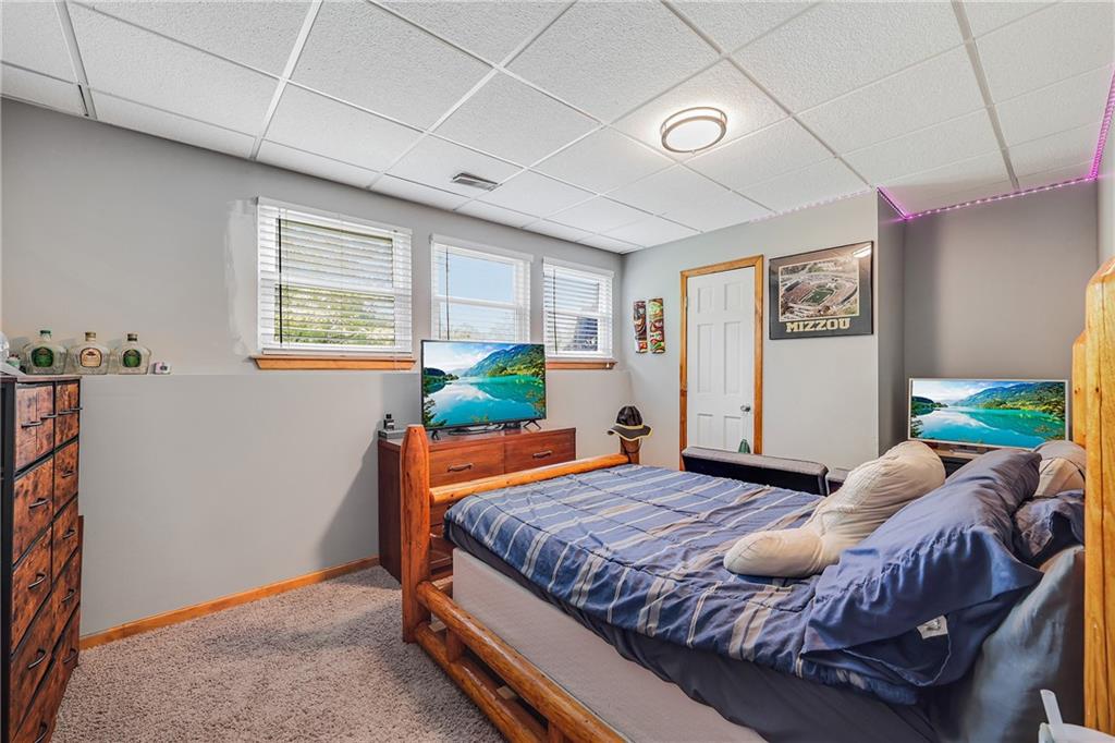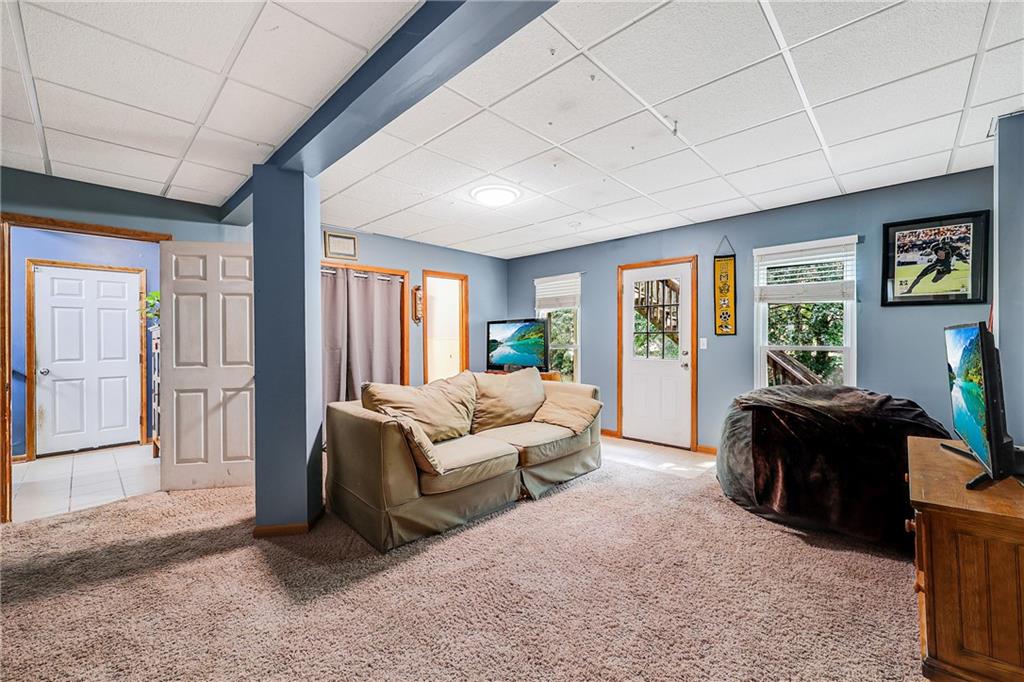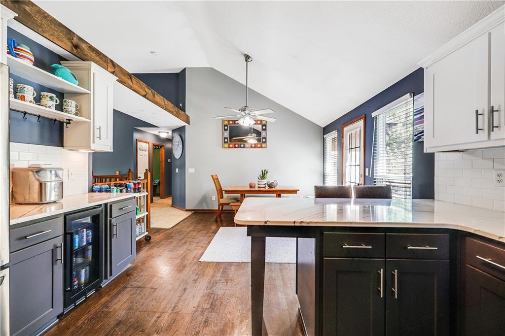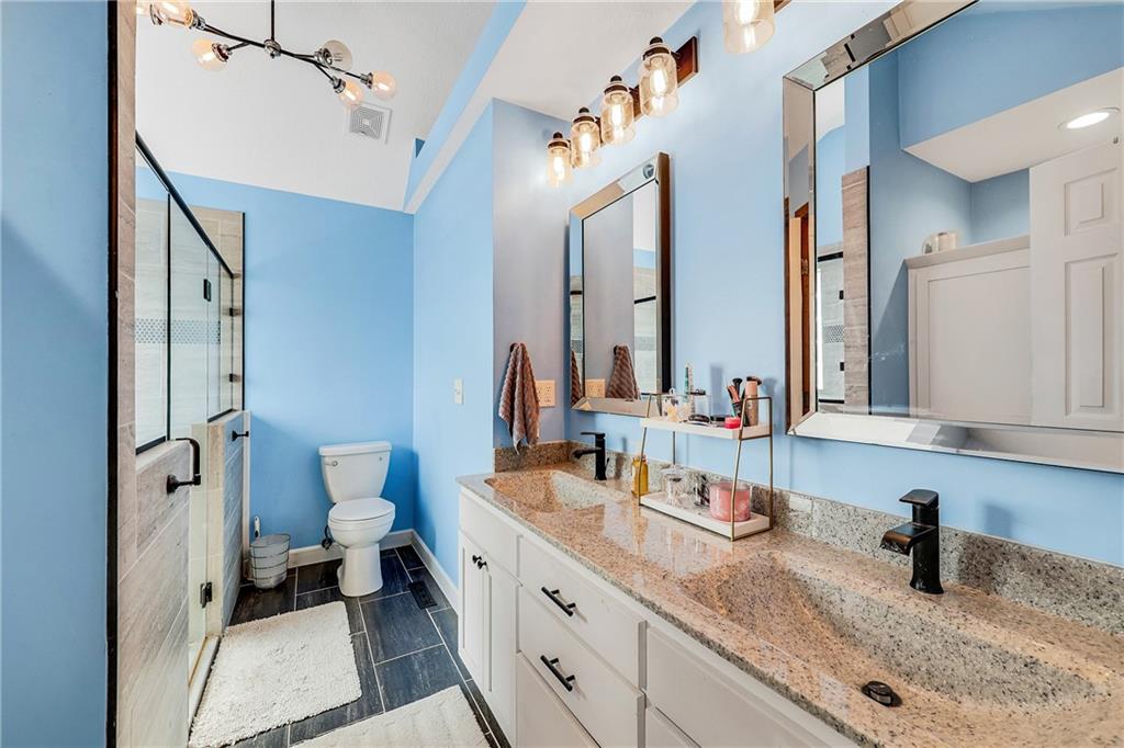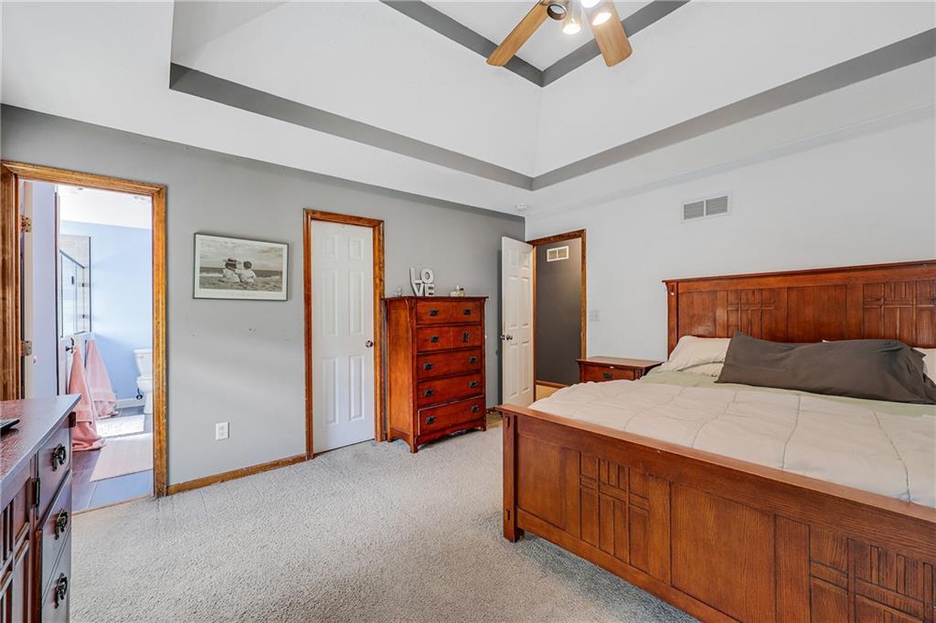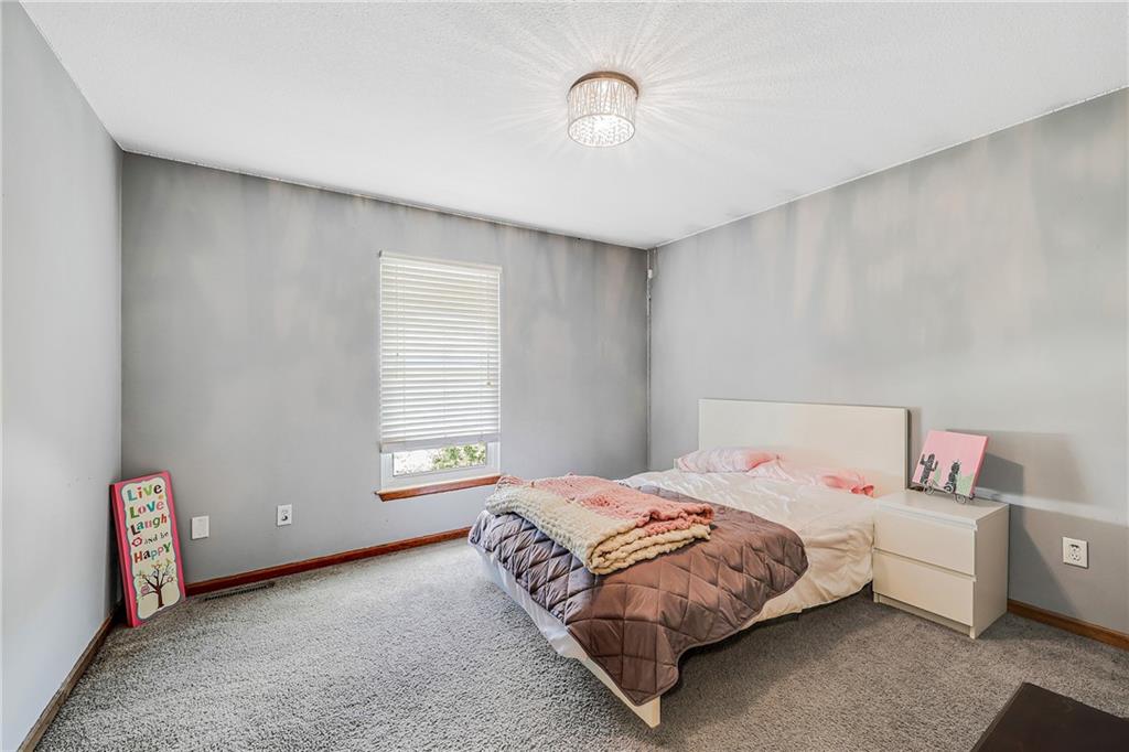 ** Seller is having the back deck removed and replaced prior to closing as well as replacing ALL carpet** Welcome home to this spacious split-level beauty offering 4 bedrooms, 2 full baths and a half bath in the basement, a rare 3-car garage—all set on a quiet cul-de-sac street with mature trees. From the inviting brick trim façade to the oversized driveway and welcoming front porch, this property blends curb appeal with everyday convenience. Step inside to an airy living room with vaulted ceilings and a cozy corner fireplace. Natural light pours in, creating a perfect gathering spot for relaxing evenings. The open layout flows seamlessly to the fully updated kitchen, featuring striking two-tone cabinetry, quartz countertops, subway tile backsplash, stainless appliances, and a generous center island with breakfast bar seating. The private primary suite is a true retreat, boasting a tray ceiling, abundant natural light, and a spa-like ensuite bath with dual sinks, granite countertops, and a custom-tiled walk-in shower. Two additional main-level bedrooms share a full bath with cheerful finishes. On the lower level, a fourth bedroom and another half bath provide flexible space for guests, teens, or a home office.
